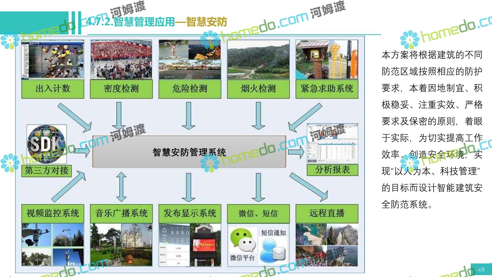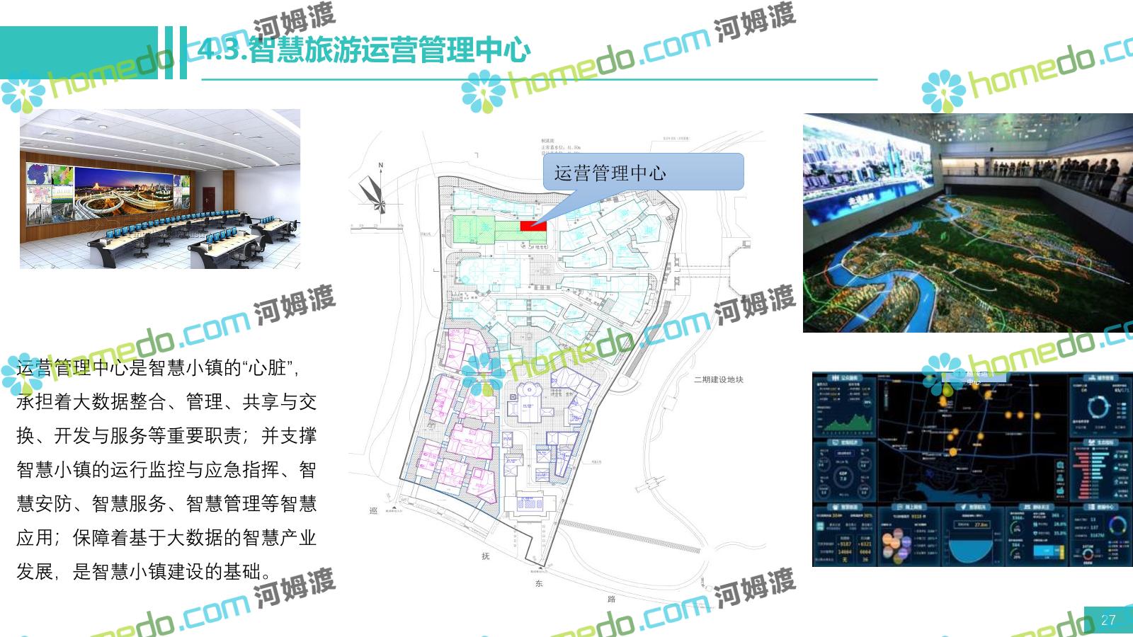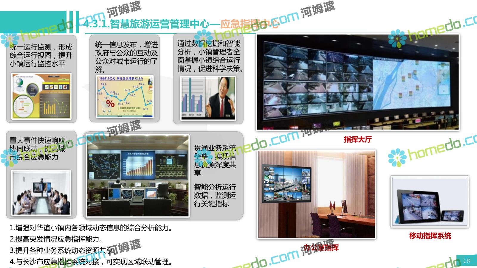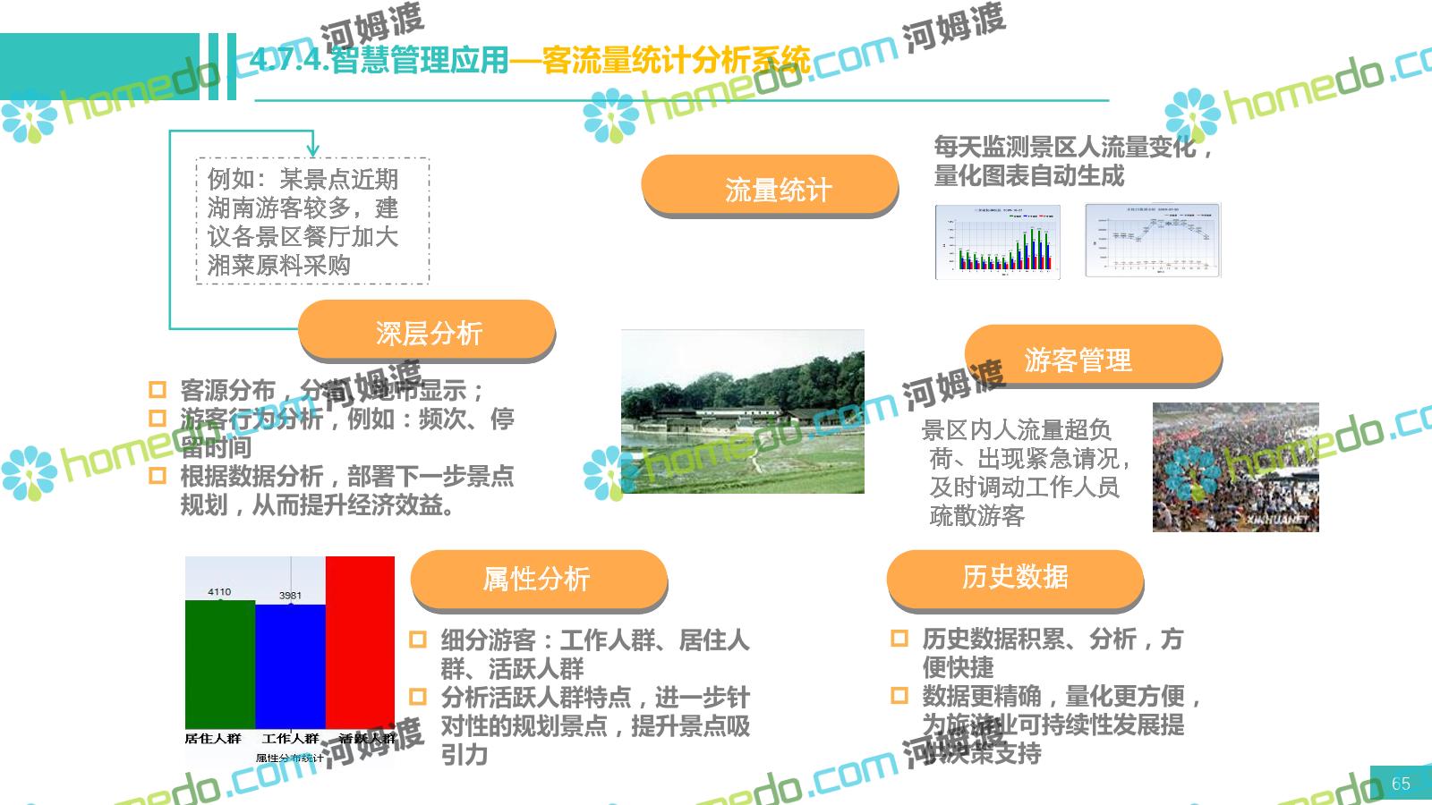 方案简介 电影小镇以“智慧、安全、绿色、人文、活力”为规划目标,结合国内外智慧文旅产业的前沿理念,采用物联网、互联网/移动互联网、虚拟现实等新技术,通过智能化基础设施、智能化设施管控、智能化集成运营管理、智慧应用服务、智慧化营销管理等模块组合,将智能化与信息化进行完美融合,打造一个全方位的智慧旅游平台。 设计通过信息通信、安全防范、设施管理、运营管理一键控、客流引导、旅游管理、智慧旅游服务、手机游园、大数据分析等系统之间的交互和融合,进行旅游商业模式创新。