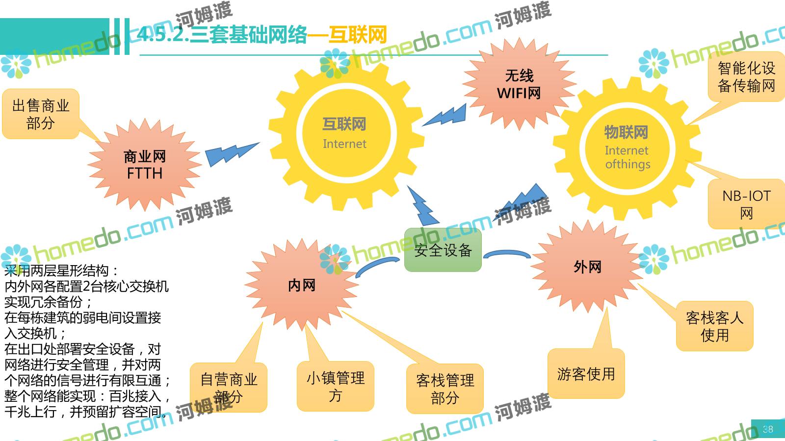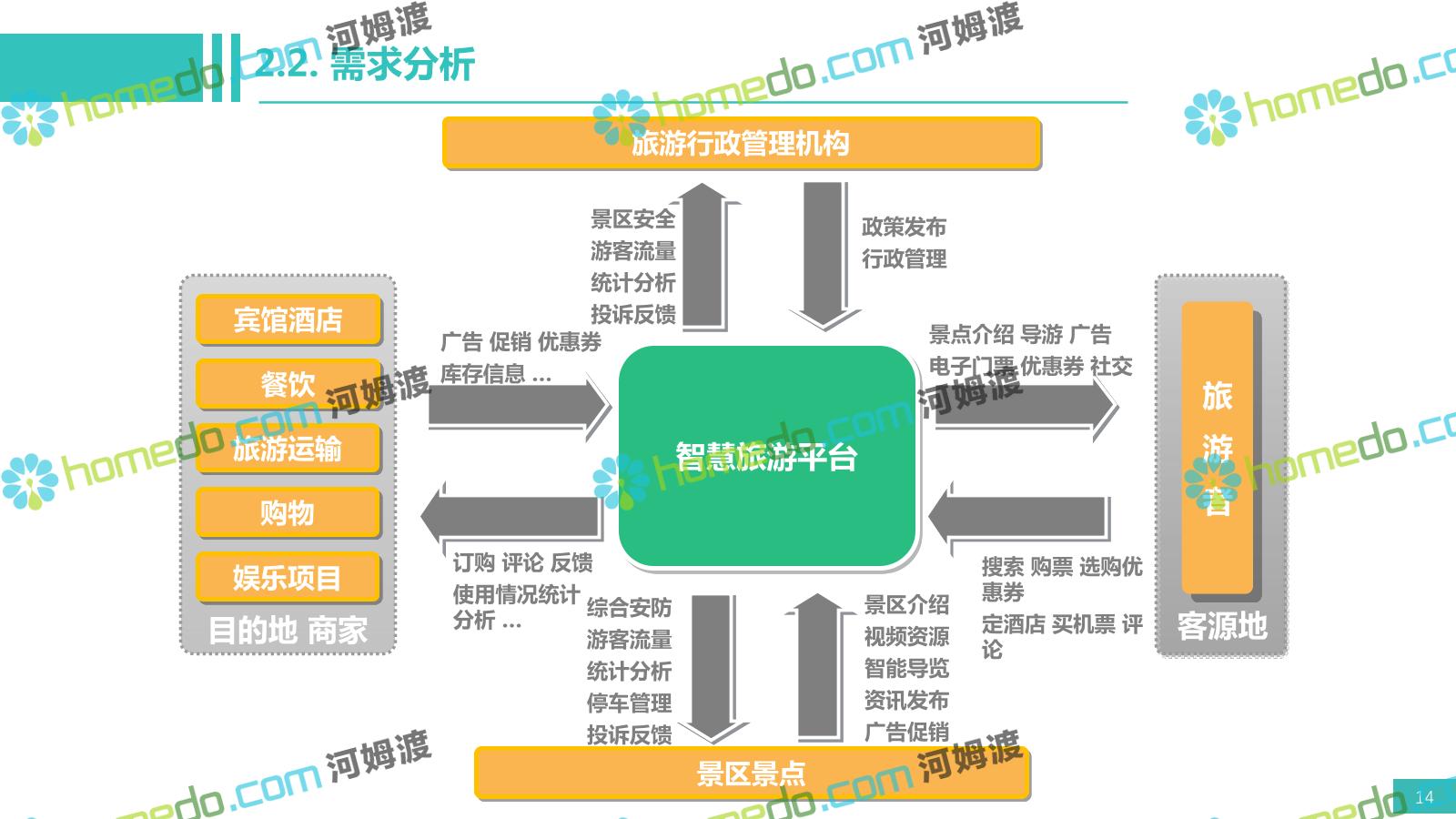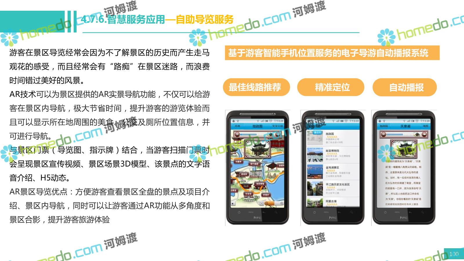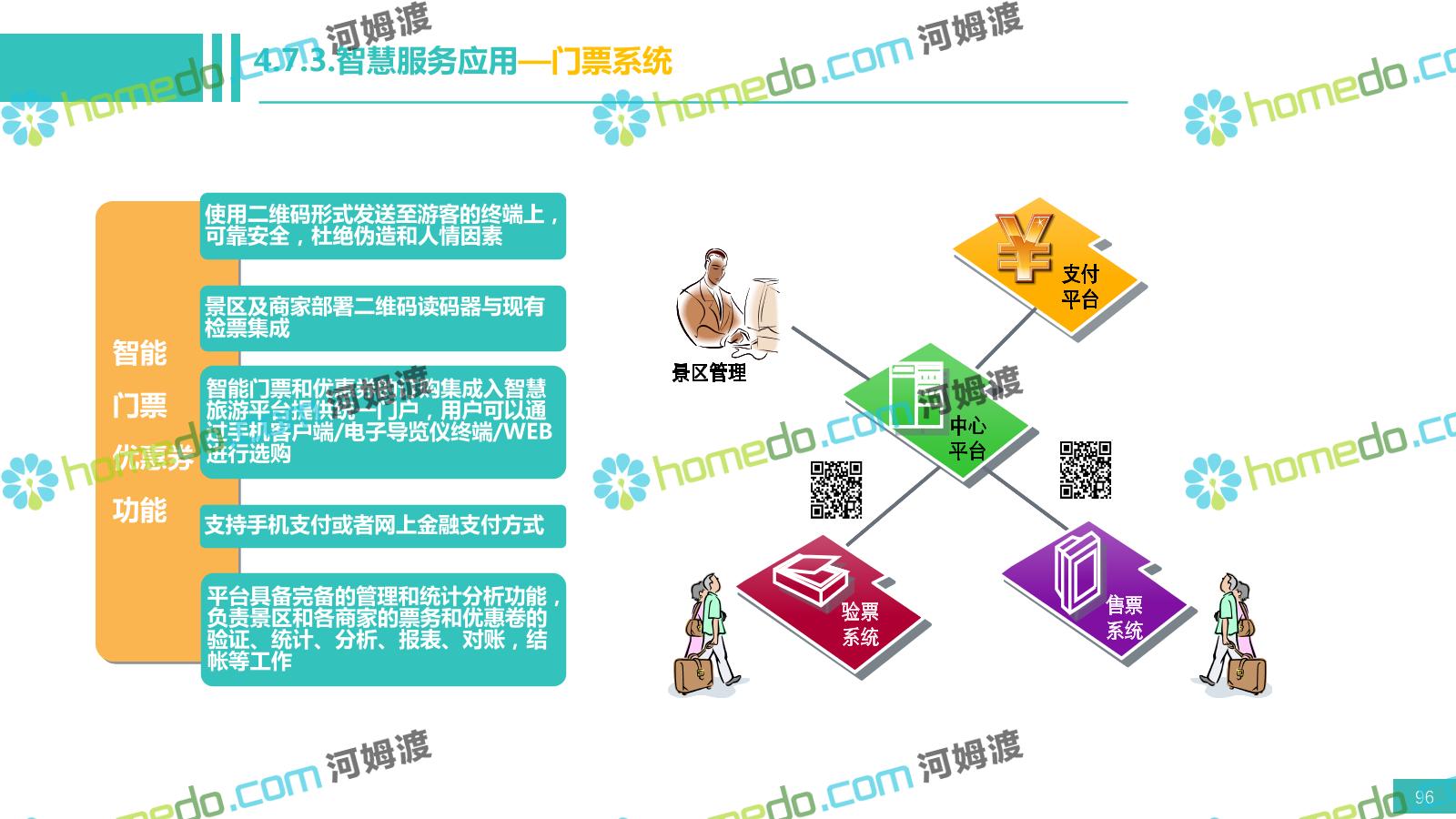 方案简介 电影小镇以“智慧、安全、绿色、人文、活力”为规划目标,结合国内外智慧文旅产业的前沿理念,采用物联网、互联网/移动互联网、虚拟现实等新技术,通过智能化基础设施、智能化设施管控、智能化集成运营管理、智慧应用服务、智慧化营销管理等模块组合,将智能化与信息化进行完美融合,打造一个全方位的智慧旅游平台。 设计通过信息通信、安全防范、设施管理、运营管理一键控、客流引导、旅游管理、智慧旅游服务、手机游园、大数据分析等系统之间的交互和融合,进行旅游商业模式创新。