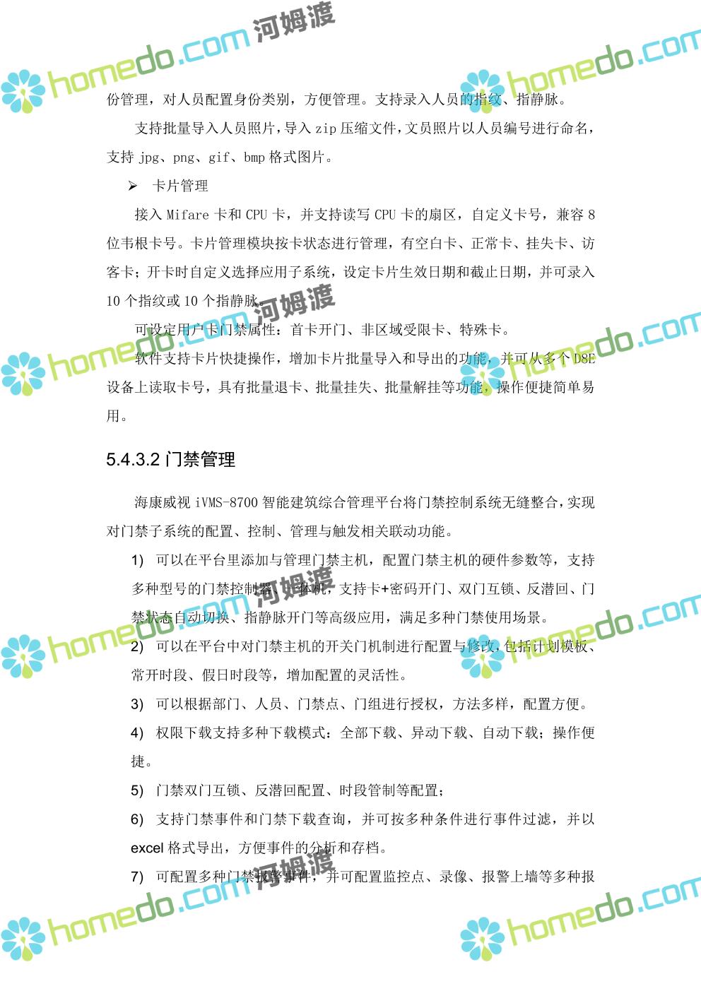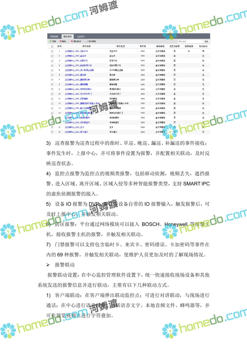 方案简介 对于智能社区系统的建设,绝不应该是对各个子系统进行简单堆砌,而是在满足各子系统功能的基础上,寻求内部各子系统之间、与外部其它智能化系统之间的完美结合。系统主要依托于智能建筑综合管理平台,来实现对视频监控系统、入侵报警系统、门禁系统及停车场管理等各子系统的综合管理和控制。 大型应用系统前端接入多个子系统设备,可包括高清视频监控系统、入侵报警系统、车辆管理系统、可视对讲系统、人员通道系统、门禁管理系统、在线巡查系统等,其中若干子系统组成智能社区系统应用。