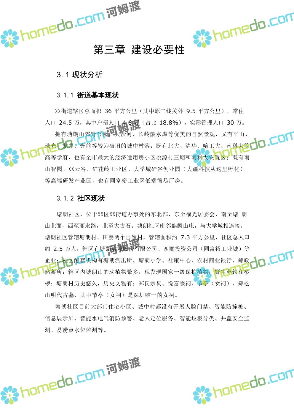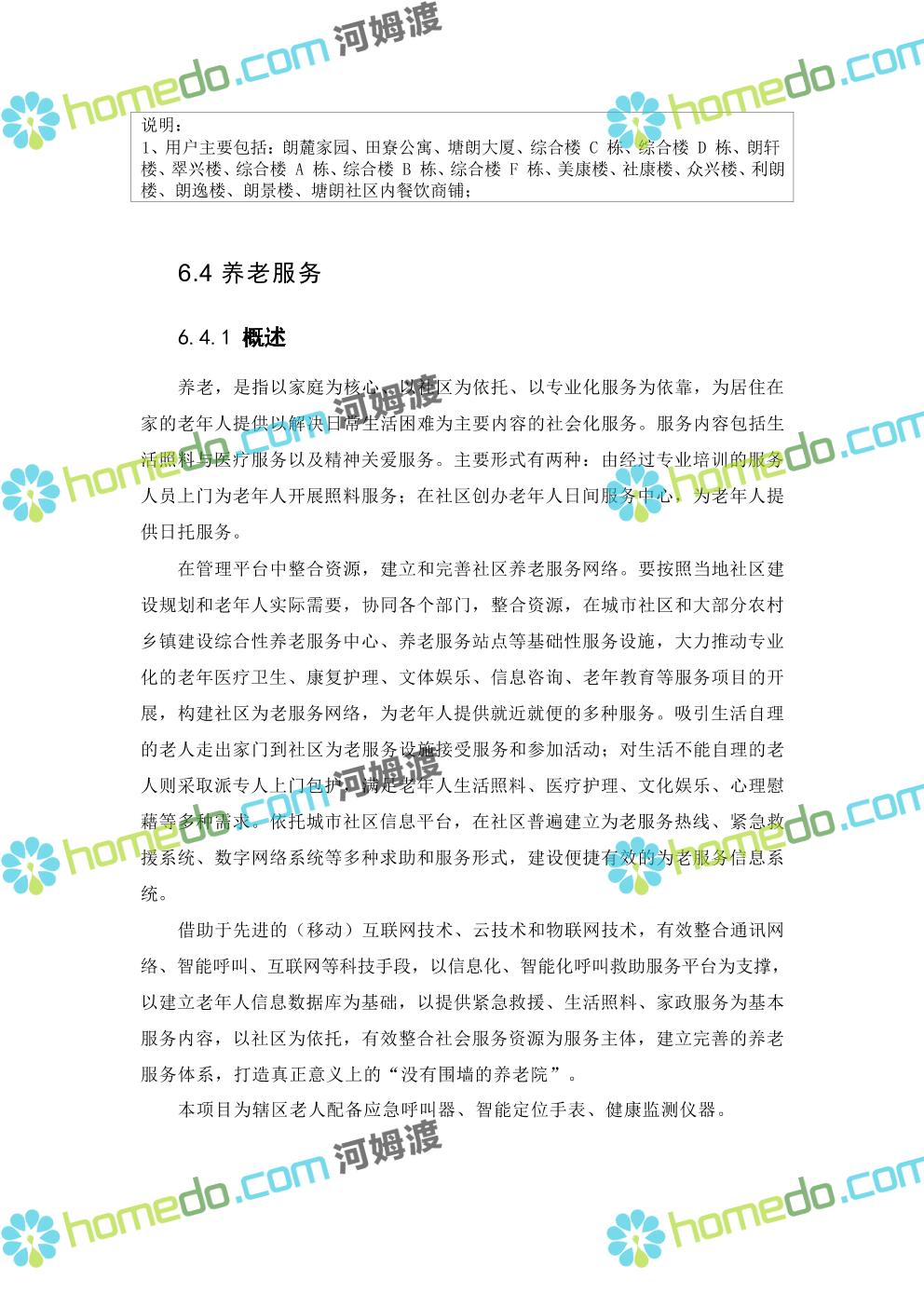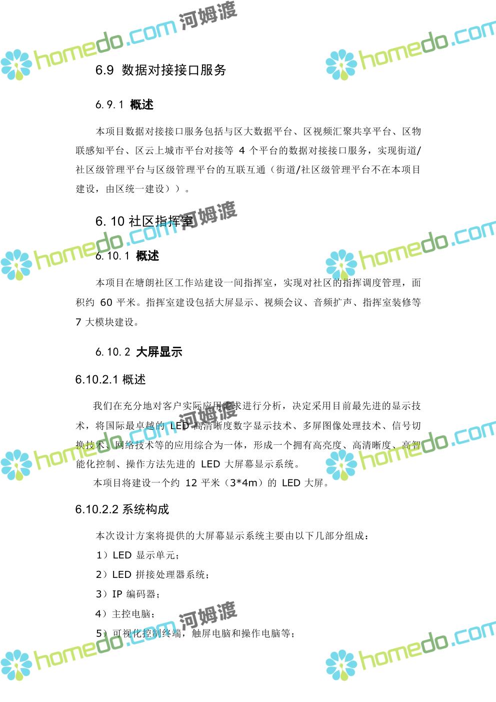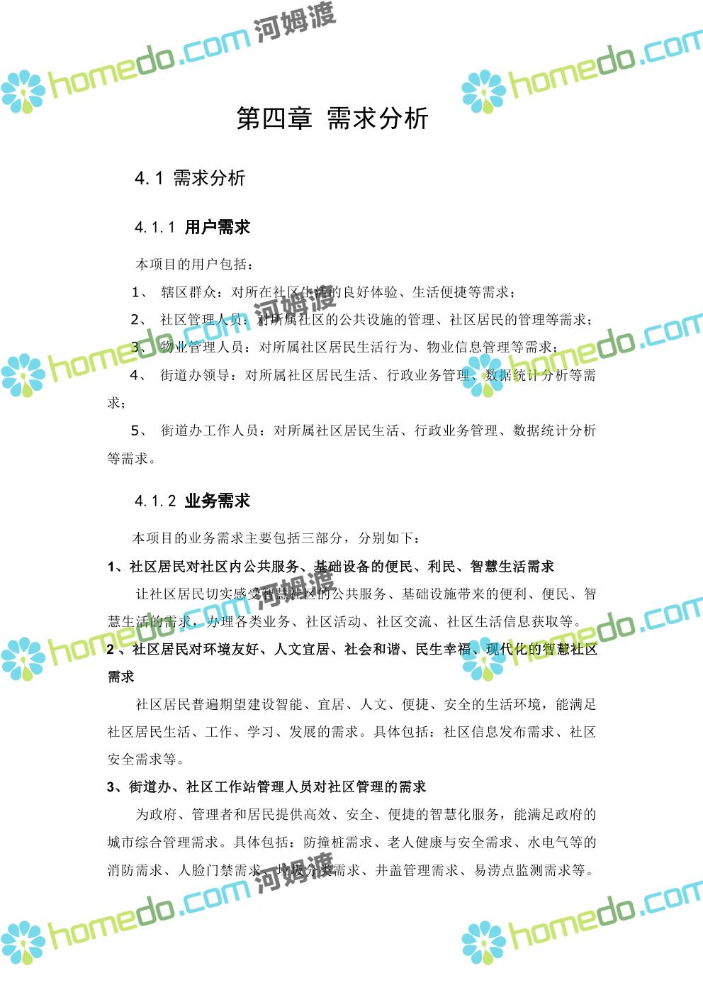 方案简介 本项目智慧社区架构包括四层:基础层、平台层、应用层、用户层;本项目 建设主要在应用层,以硬件设备为主,街道级和区级综合管理平台由XX区统一 建设。