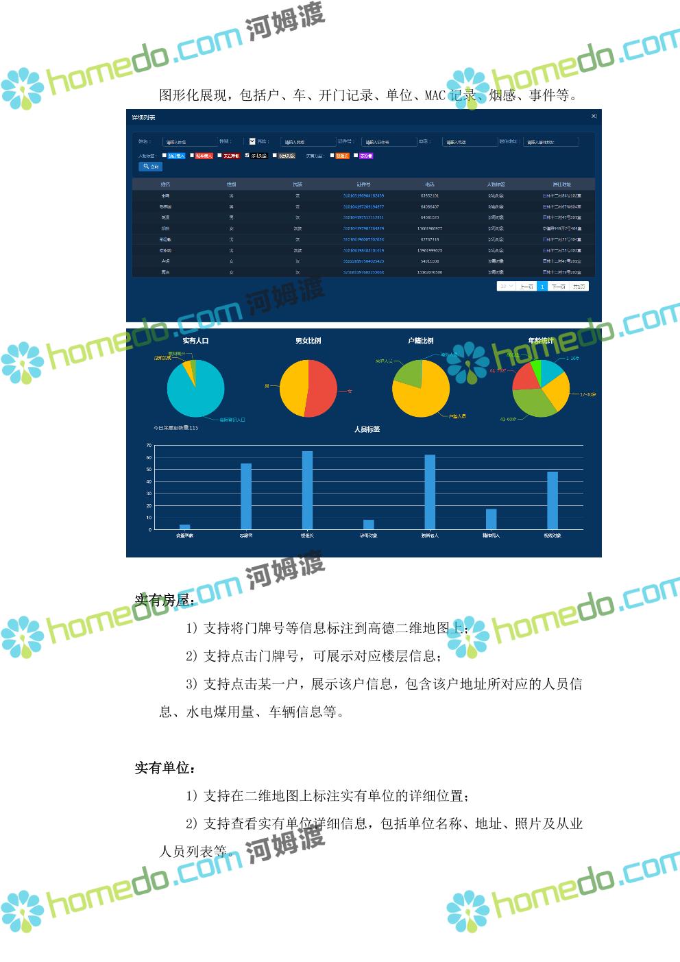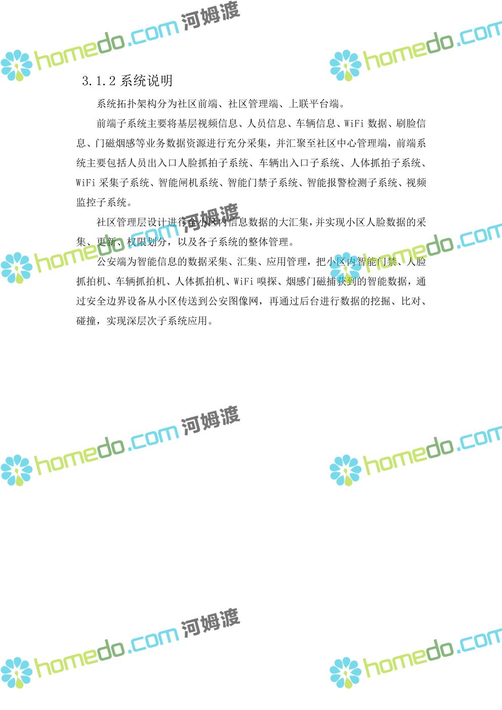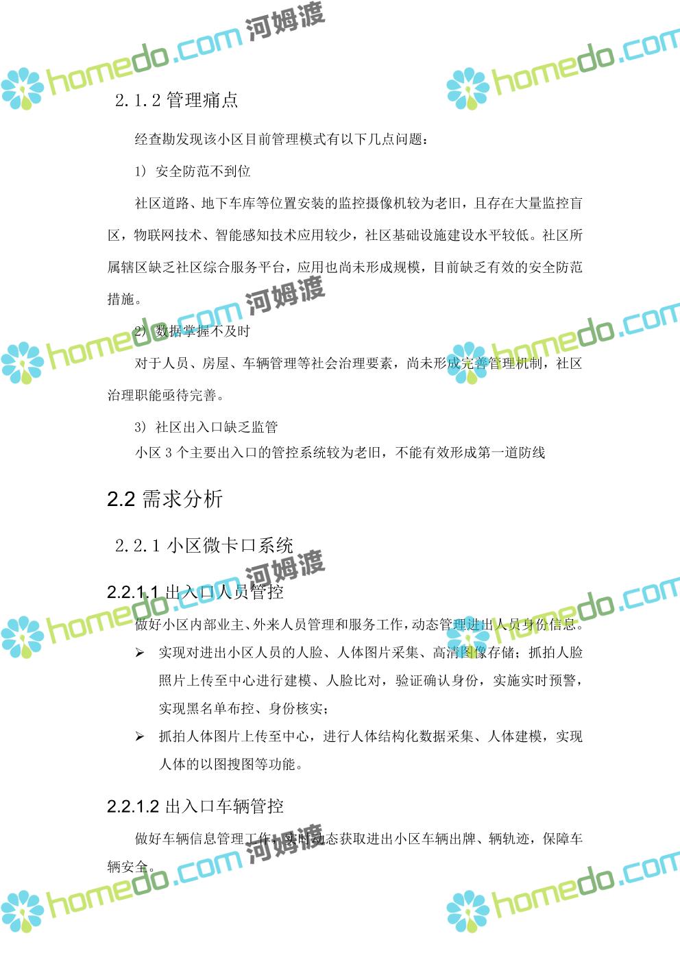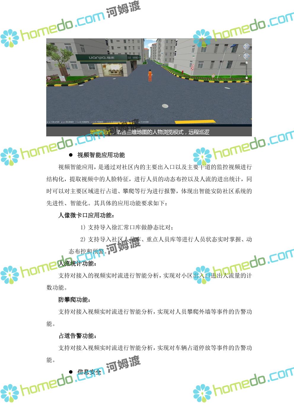 方案简介 针对社区环境复杂,人流、车流密集情况,以“高起点、高效率”为原则,以“可视、高效、动态”为目标,做到信息掌握到位、矛盾化解到位、治安防控到位、便民服务到位。通过视频监控系统、门禁系统、车辆卡口系统、社区出入口系统、等,建立起“人防部署到位、物防设施完善、技术手段先进、应急处置高效”的集管理、防范、控制于一体的社区安防保障体系,对各类事件做到预知、预判、预防、预警和有效处置,切实加强社区的安全保障能力和应急响应能力。同时可按公安或综治办等部门要求进行数据对接,解决社区信息采集单一、无法实时与上级部门共享数据等问题,将视频监控系统与报警系统有机结合起来,实现对人员、房屋、车辆信息实时管理和报警联动
