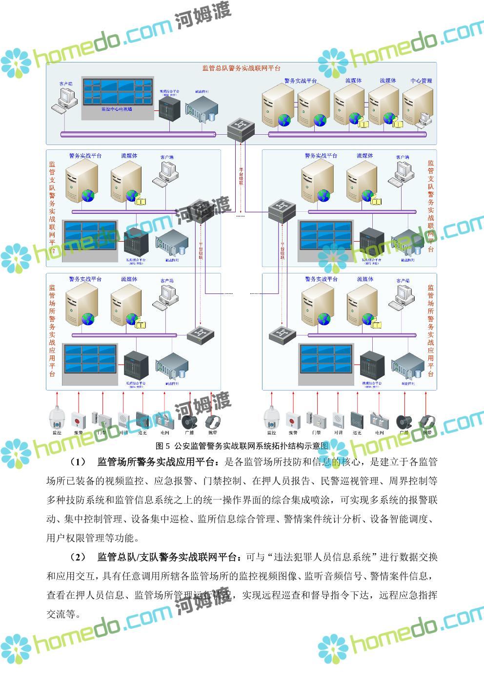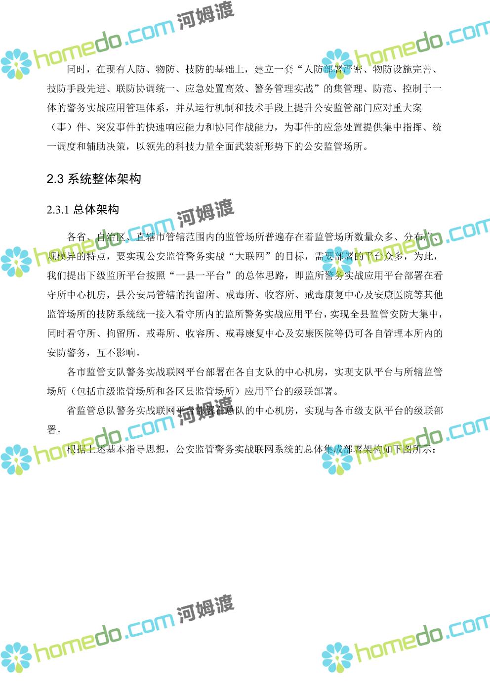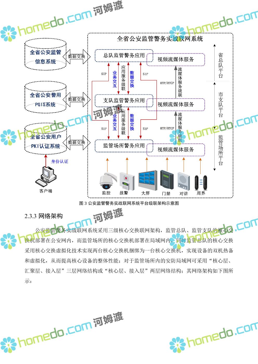 方案简介 在公安监管场所“大联网、大平台”的背景下,旨在建立一套覆盖公安监管场所的集安全防范和监管警务管理于一体的性公安监管警务实战联网系统,以信息化建设为先导,开创“警务规范化、监管信息化、安防智能化、研判数字化”这一全新的公安监管场所管理模式,最终达到“向科技要效率、向科技要警力、向科技要安全”的目的。 公安监管警务实战联网系统,是各级公安监管部门(监管场所、监管支队、监管总队)信息化体系的主体工程。系统的建设还包括监管部门其他信息化系统(如“违法犯罪人员(嫌疑人)数据库”、“公安信息安全保障系统(省公安厅PKI/PMI认证等系统)”)、宣教系统等的集成,以及公安监管警务实战联网系统的设计和建设