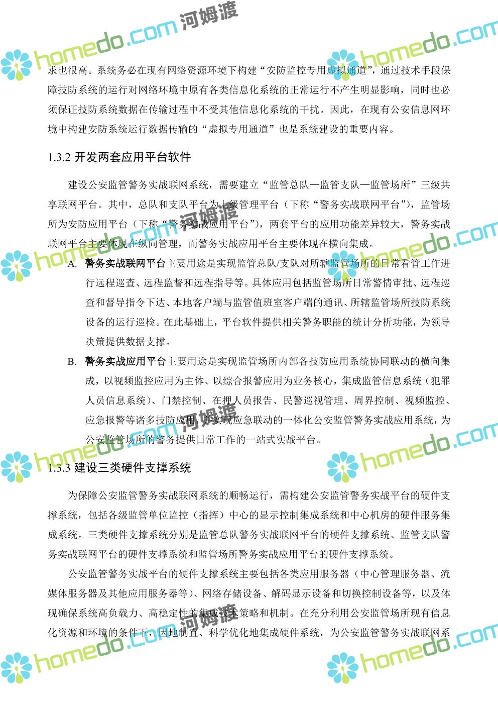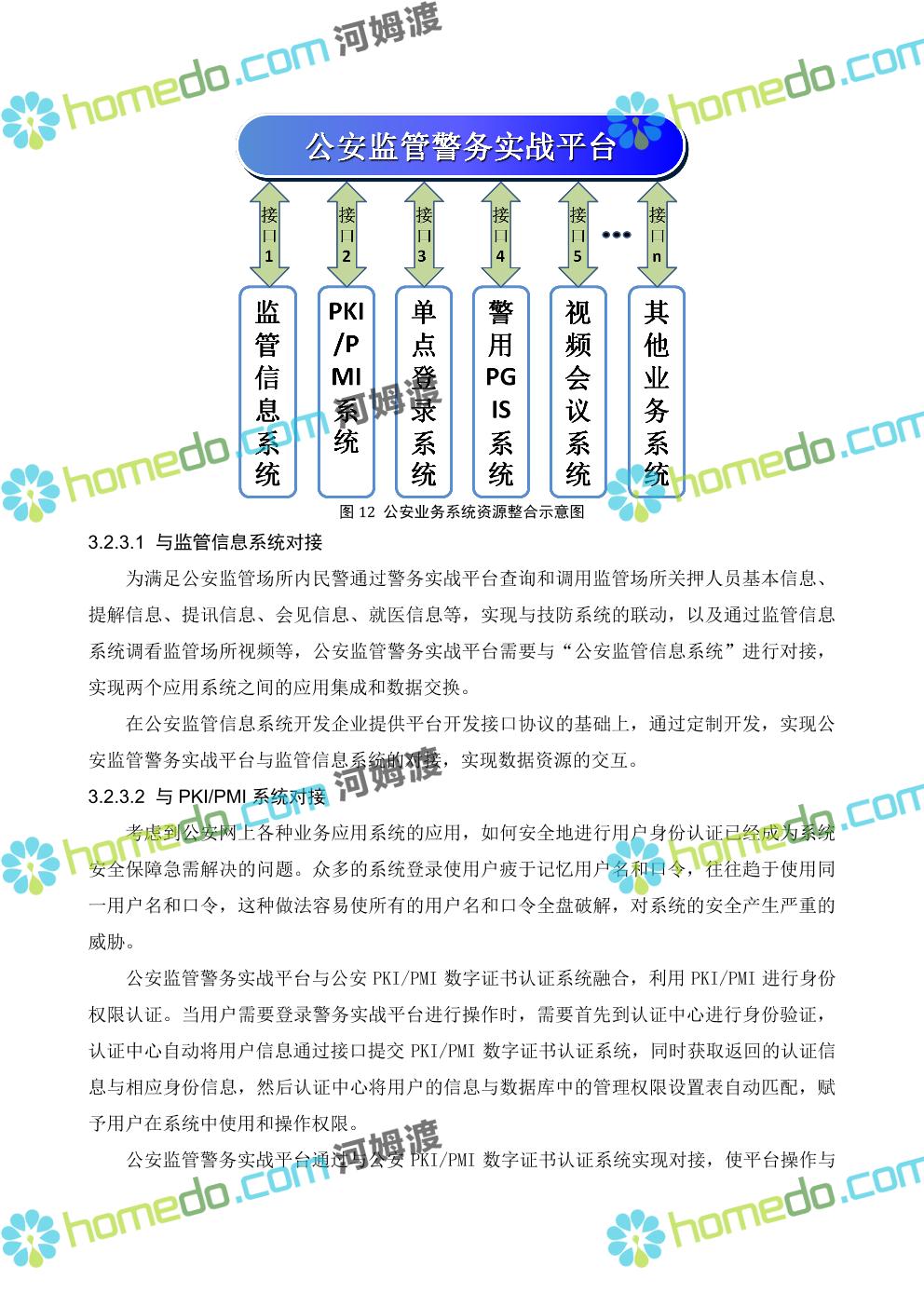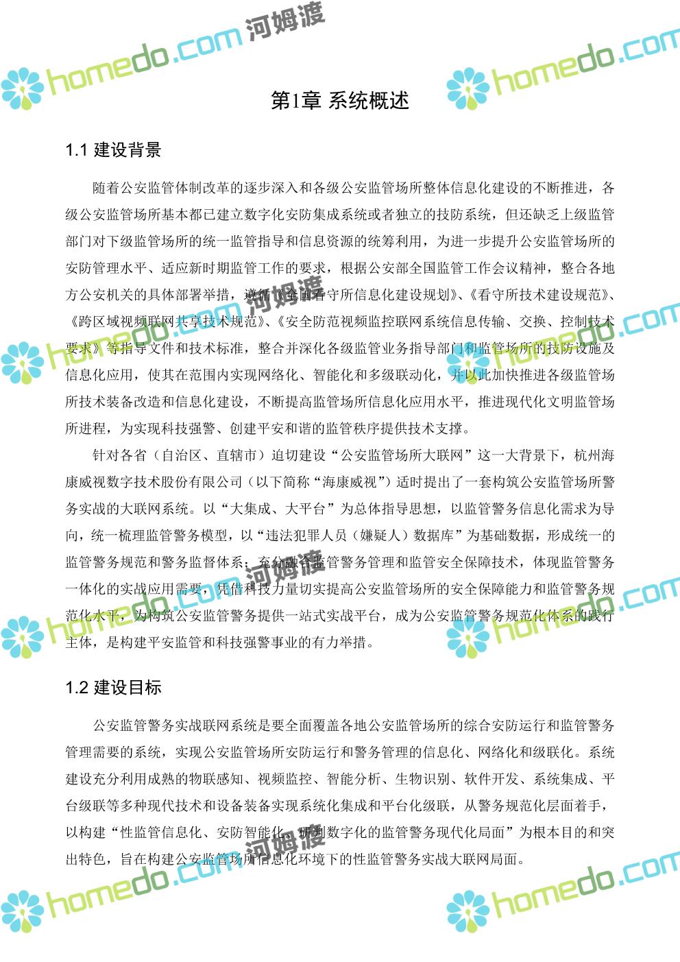 方案简介 在公安监管场所“大联网、大平台”的背景下,旨在建立一套覆盖公安监管场所的集安全防范和监管警务管理于一体的性公安监管警务实战联网系统,以信息化建设为先导,开创“警务规范化、监管信息化、安防智能化、研判数字化”这一全新的公安监管场所管理模式,最终达到“向科技要效率、向科技要警力、向科技要安全”的目的。 公安监管警务实战联网系统,是各级公安监管部门(监管场所、监管支队、监管总队)信息化体系的主体工程。系统的建设还包括监管部门其他信息化系统(如“违法犯罪人员(嫌疑人)数据库”、“公安信息安全保障系统(省公安厅PKI/PMI认证等系统)”)、宣教系统等的集成,以及公安监管警务实战联网系统的设计和建设