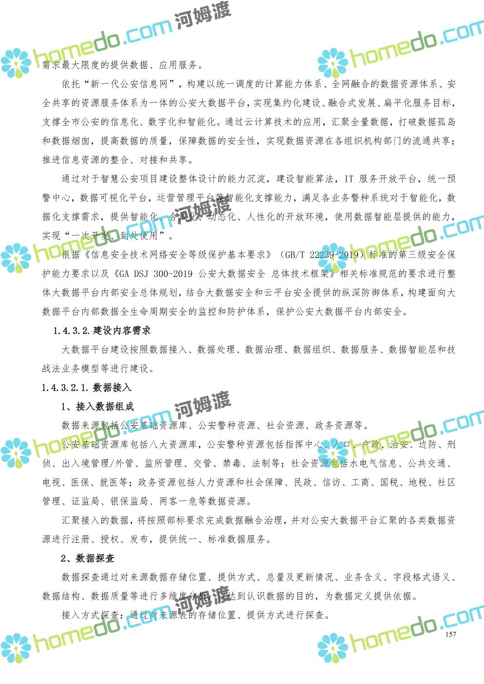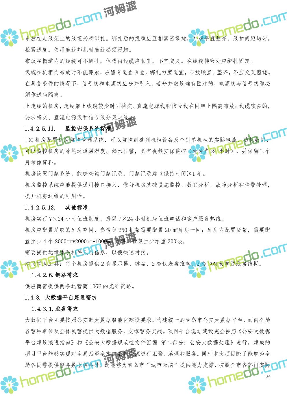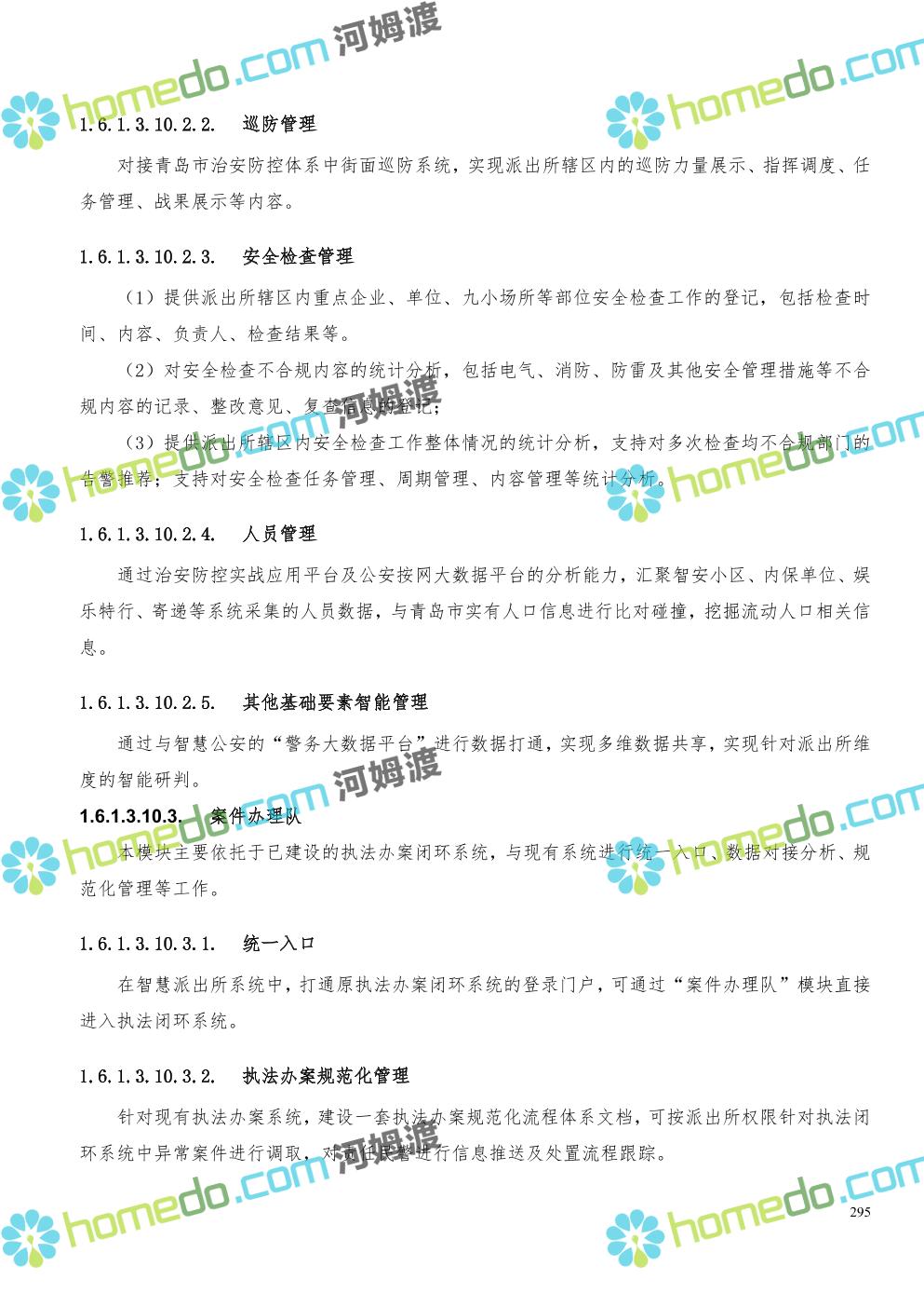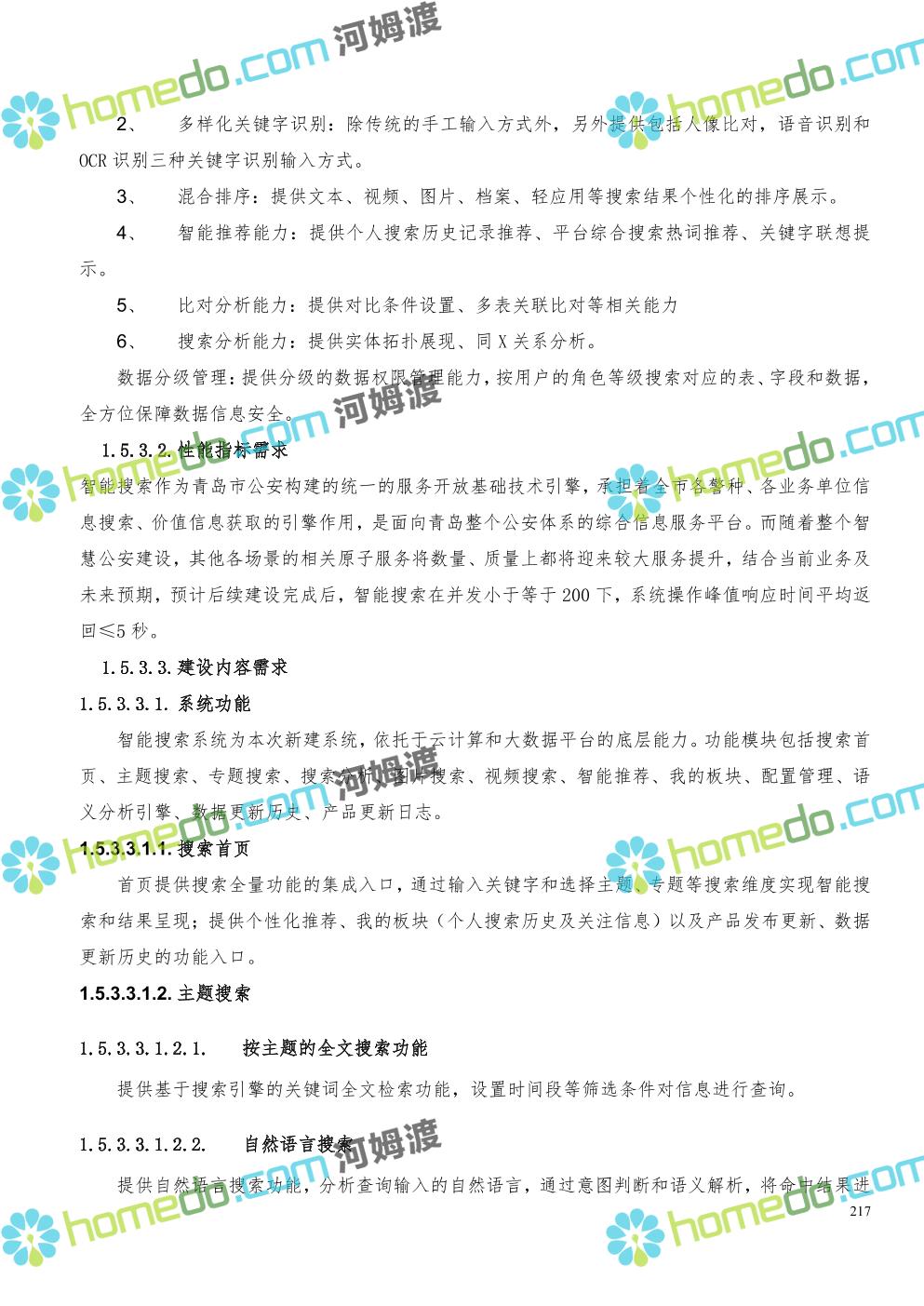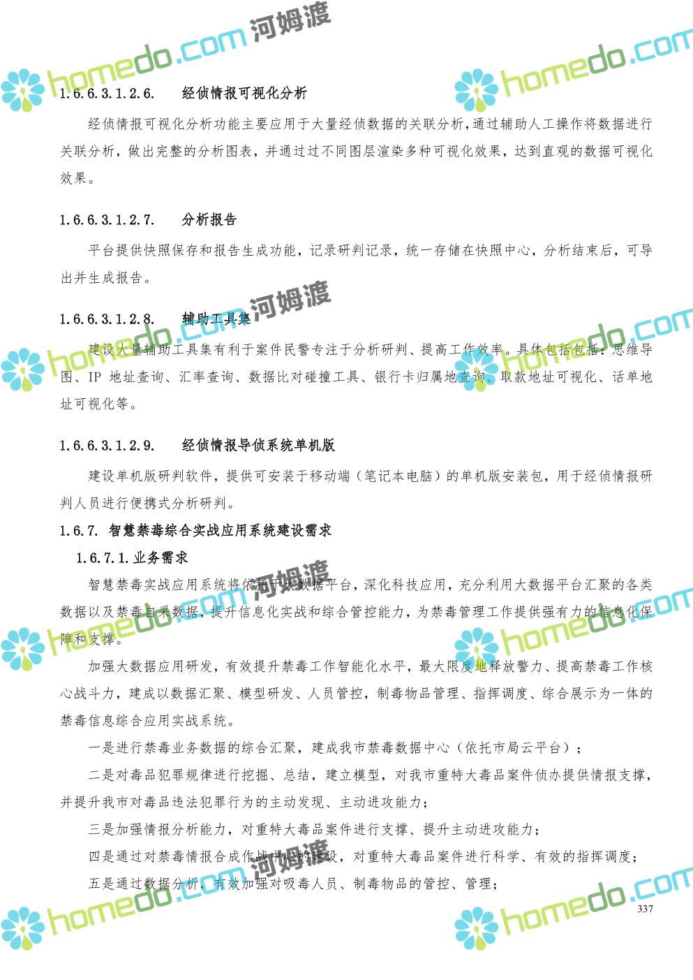 方案简介 项目围绕智慧公安“1+1+5+7”总体框架进行建设,主要建设的内容包含有1 个全息动态感知体系、1个融合大数据中心(新一代公安信息网、云计算平台、大数据平台、大数 据安全体系)、5个综合性支撑应用(数字化大屏系统、青岛警务工作门户、智能搜索系统、移动 警务应用系统、一码通支撑平台)及7大业务领域大数据应用(治安防控实战应用平台、青岛市网 络信息采集系统、刑侦合成作战系统、大数据智能化反诈平台、经侦大数据综合应用平台、智慧禁毒综合实战应用系统、“情指勤”一体化平台、“互联网+政务服务”平台、警务督察平台)。