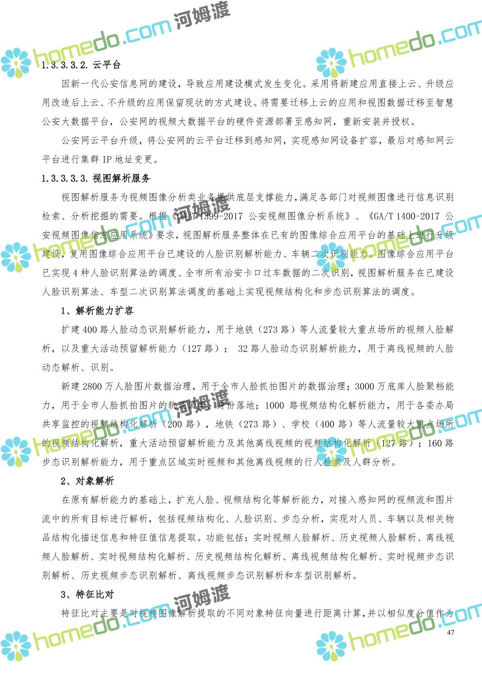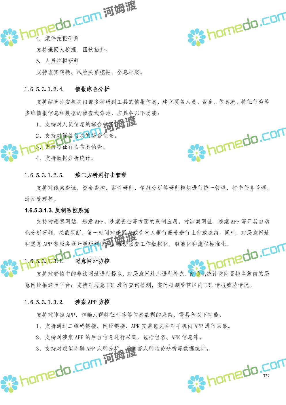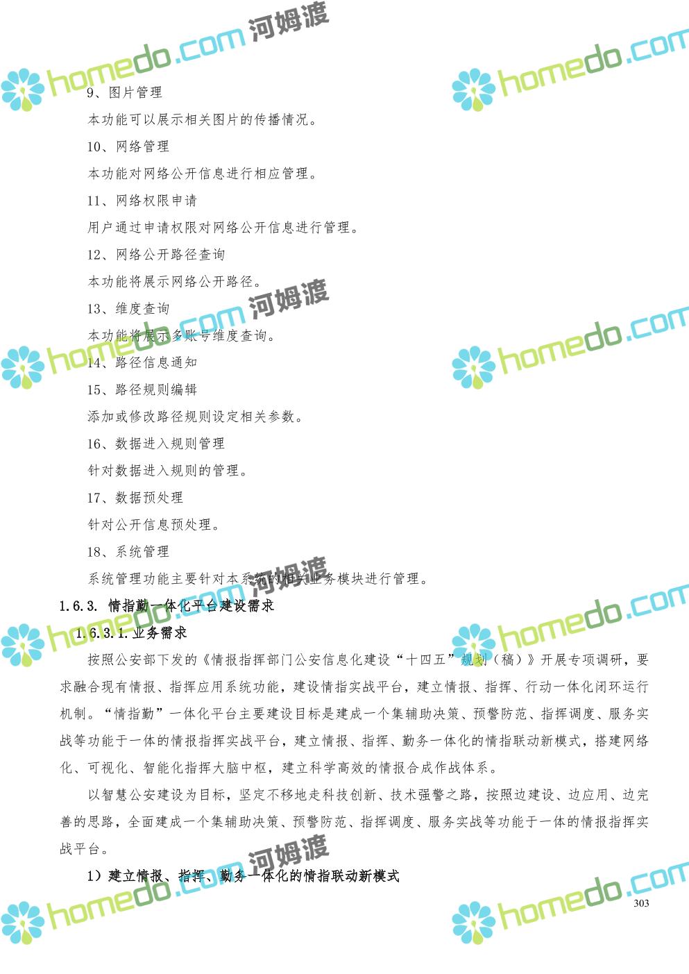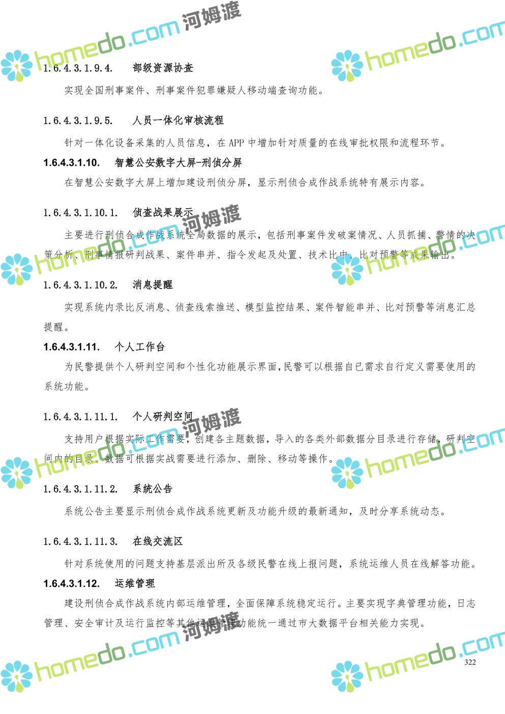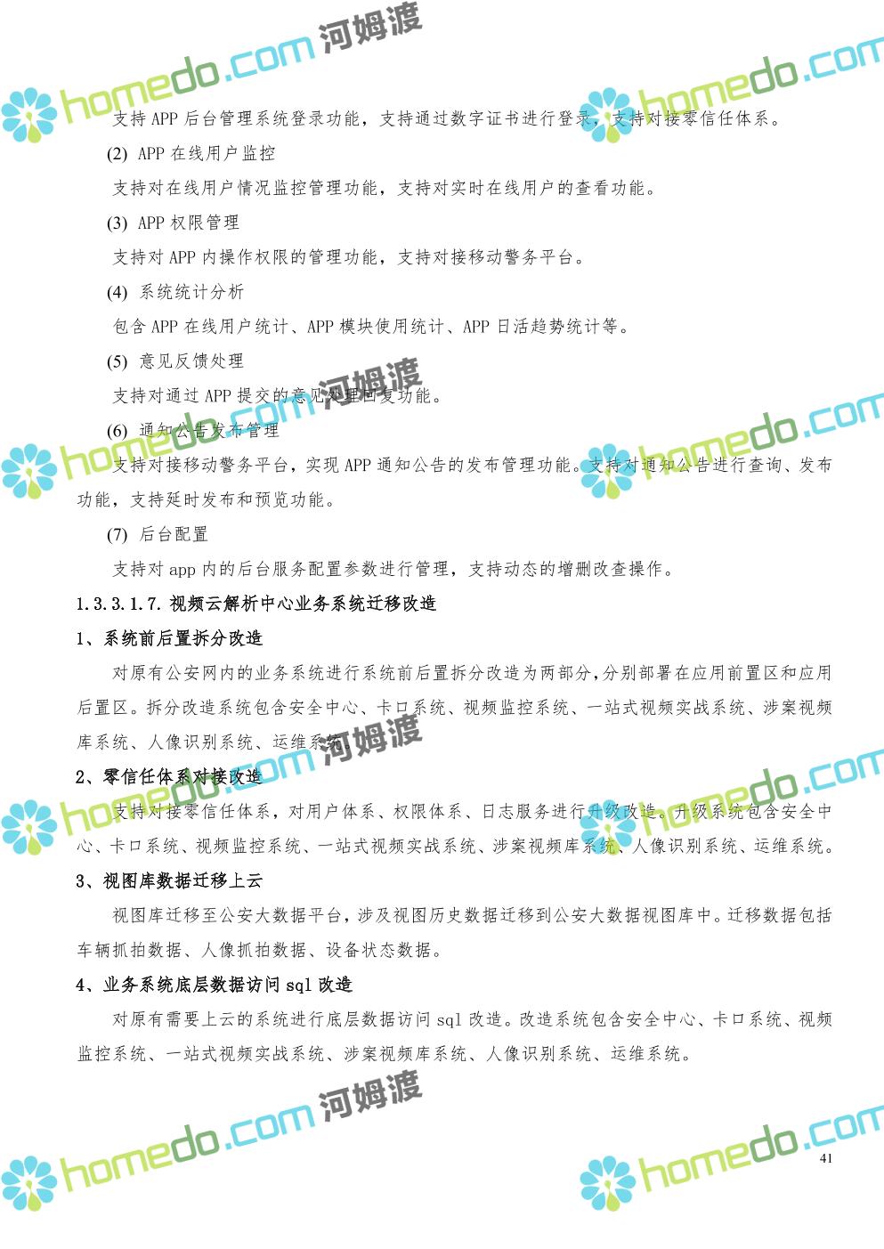 方案简介 项目围绕智慧公安“1+1+5+7”总体框架进行建设,主要建设的内容包含有1 个全息动态感知体系、1个融合大数据中心(新一代公安信息网、云计算平台、大数据平台、大数 据安全体系)、5个综合性支撑应用(数字化大屏系统、青岛警务工作门户、智能搜索系统、移动 警务应用系统、一码通支撑平台)及7大业务领域大数据应用(治安防控实战应用平台、青岛市网 络信息采集系统、刑侦合成作战系统、大数据智能化反诈平台、经侦大数据综合应用平台、智慧禁毒综合实战应用系统、“情指勤”一体化平台、“互联网+政务服务”平台、警务督察平台)。