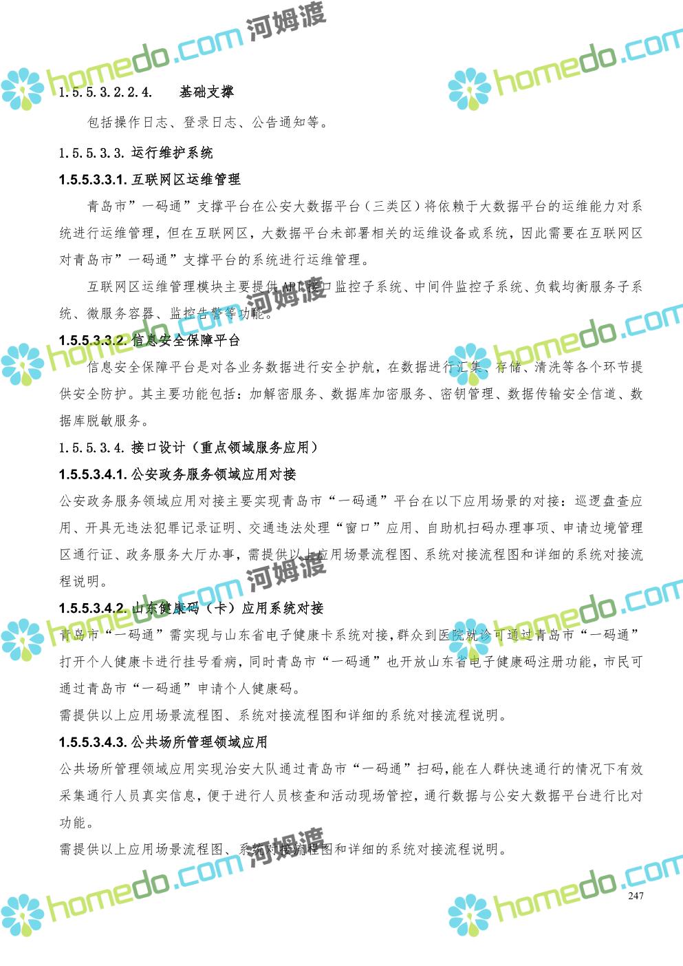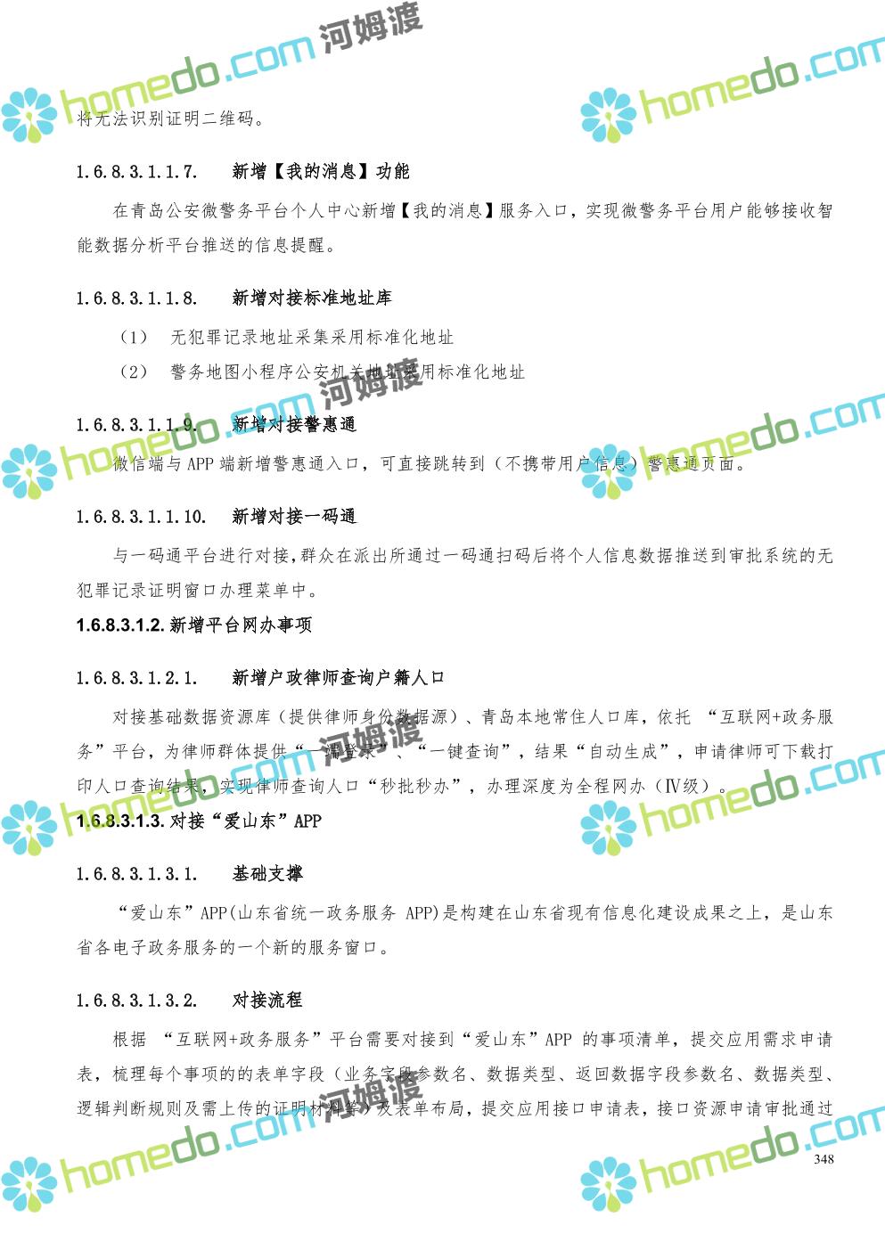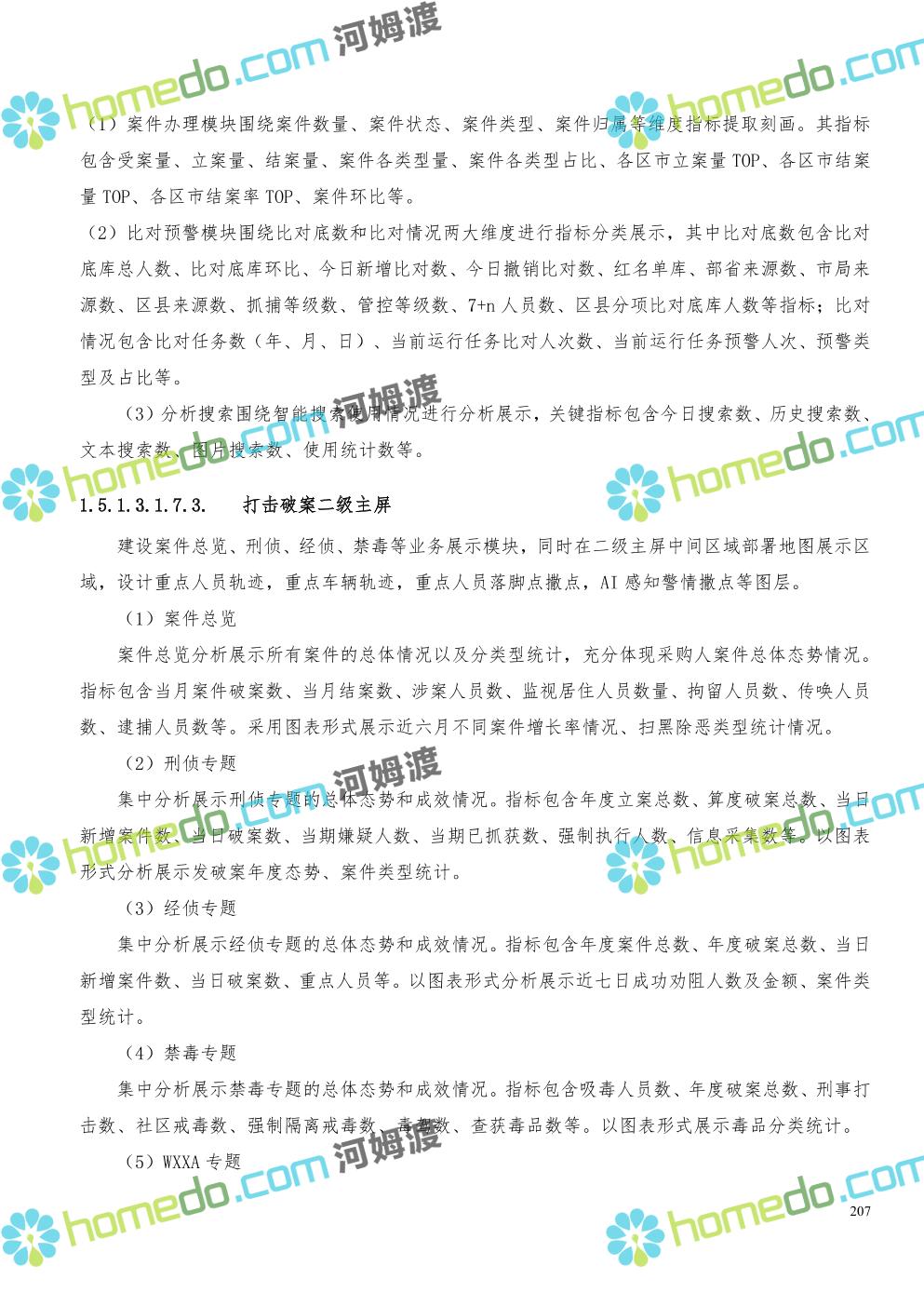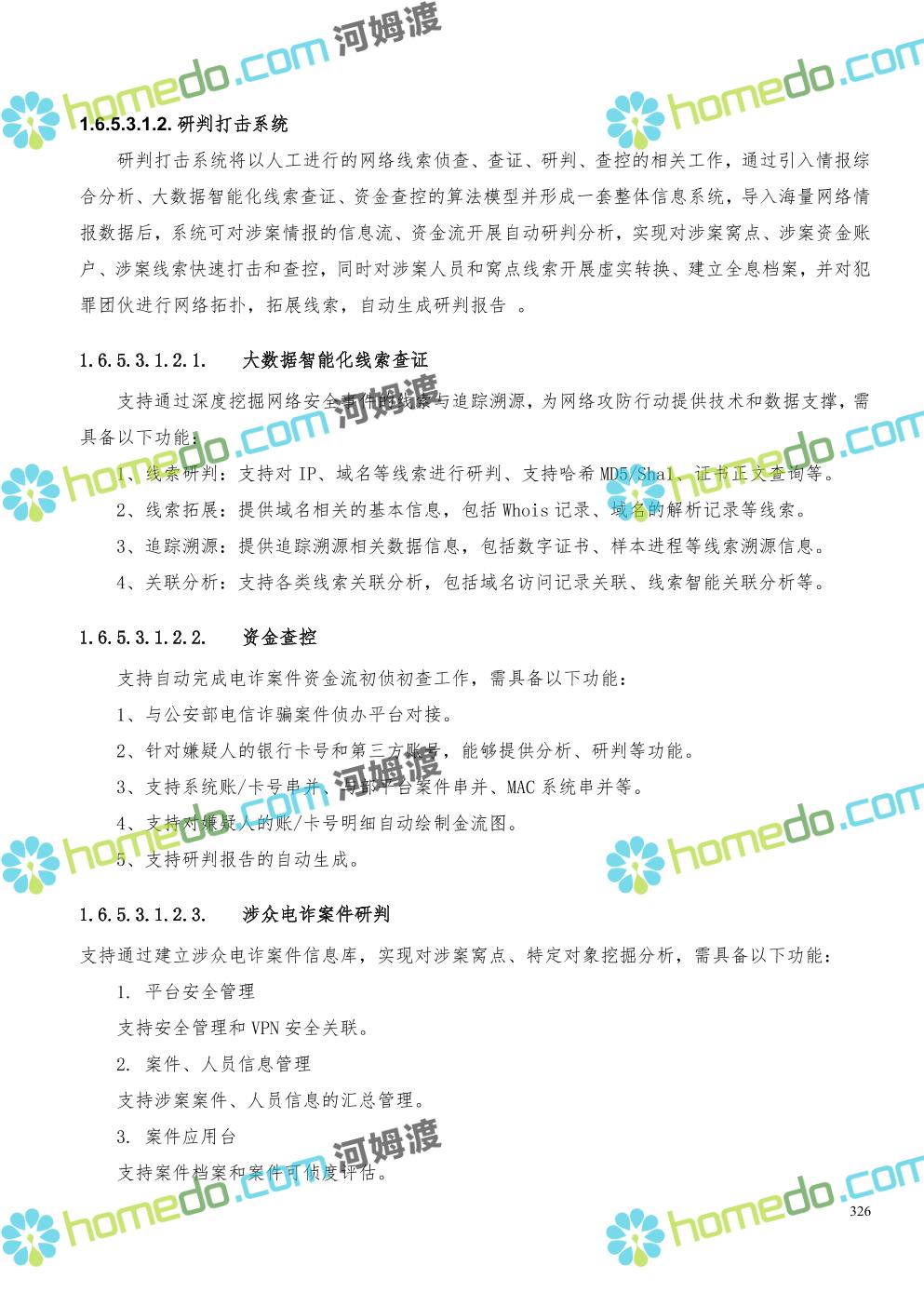 方案简介 项目围绕智慧公安“1+1+5+7”总体框架进行建设,主要建设的内容包含有1 个全息动态感知体系、1个融合大数据中心(新一代公安信息网、云计算平台、大数据平台、大数 据安全体系)、5个综合性支撑应用(数字化大屏系统、青岛警务工作门户、智能搜索系统、移动 警务应用系统、一码通支撑平台)及7大业务领域大数据应用(治安防控实战应用平台、青岛市网 络信息采集系统、刑侦合成作战系统、大数据智能化反诈平台、经侦大数据综合应用平台、智慧禁毒综合实战应用系统、“情指勤”一体化平台、“互联网+政务服务”平台、警务督察平台)。