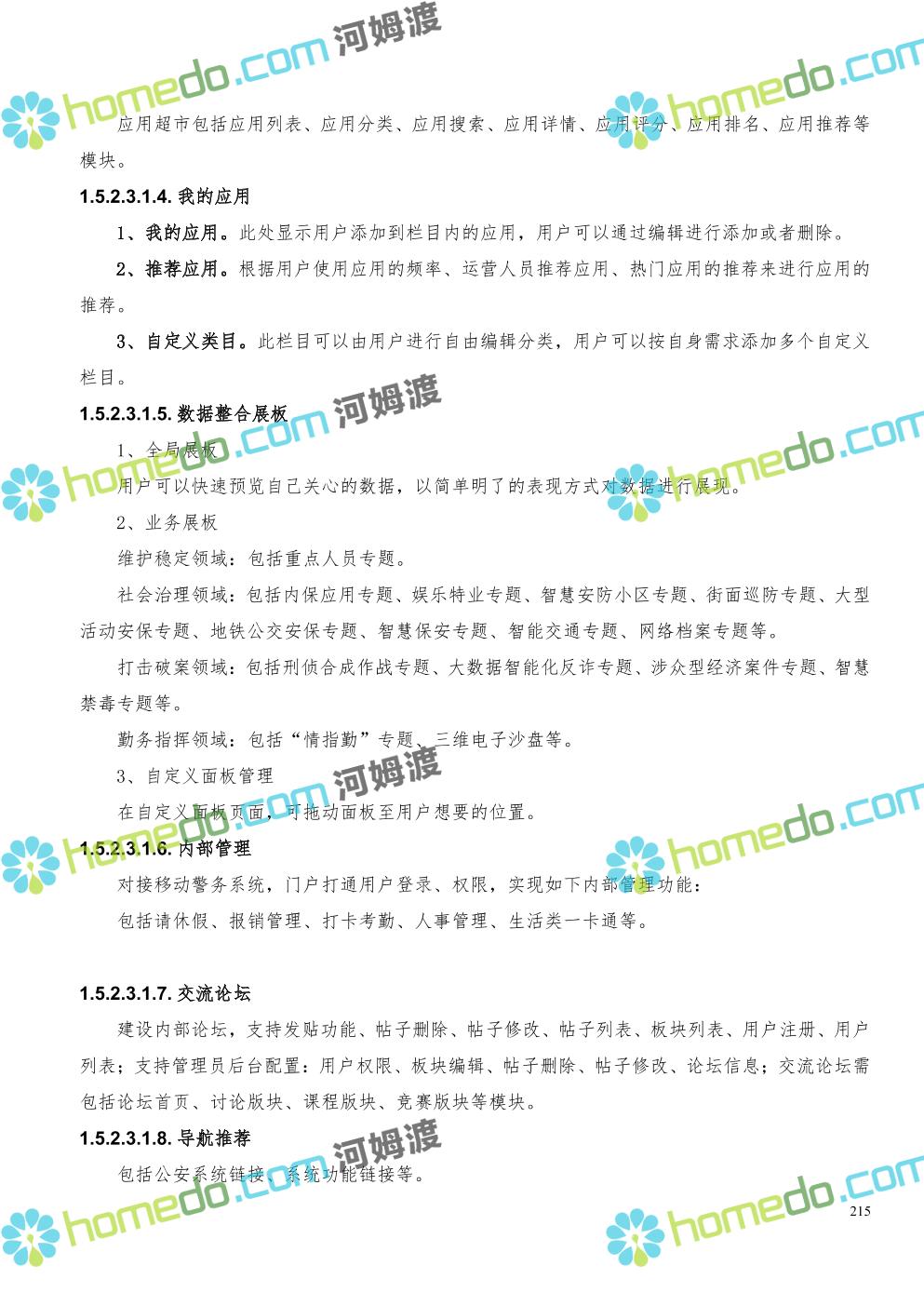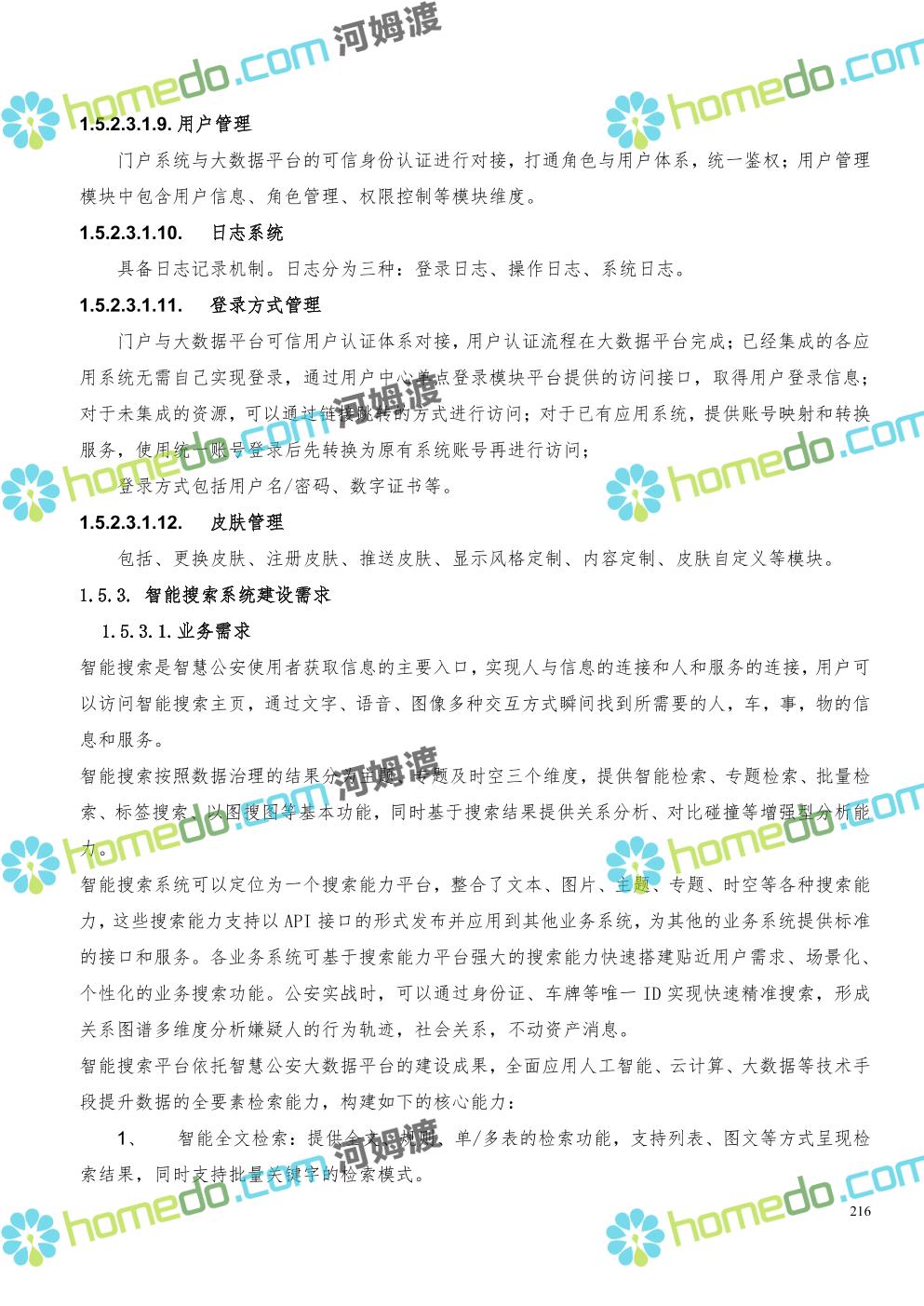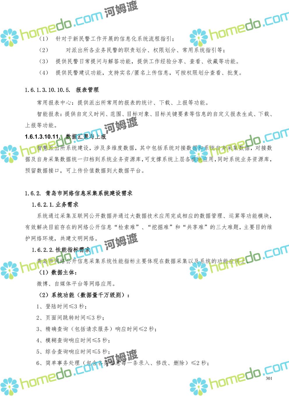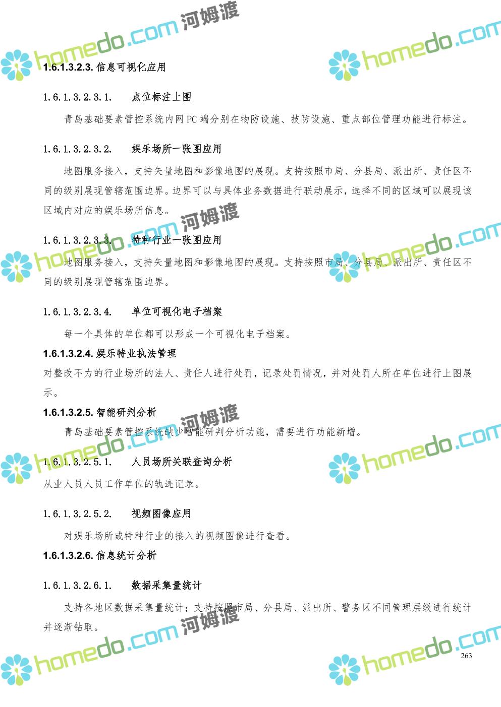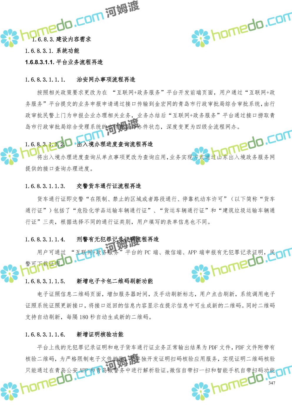 方案简介 项目围绕智慧公安“1+1+5+7”总体框架进行建设,主要建设的内容包含有1 个全息动态感知体系、1个融合大数据中心(新一代公安信息网、云计算平台、大数据平台、大数 据安全体系)、5个综合性支撑应用(数字化大屏系统、青岛警务工作门户、智能搜索系统、移动 警务应用系统、一码通支撑平台)及7大业务领域大数据应用(治安防控实战应用平台、青岛市网 络信息采集系统、刑侦合成作战系统、大数据智能化反诈平台、经侦大数据综合应用平台、智慧禁毒综合实战应用系统、“情指勤”一体化平台、“互联网+政务服务”平台、警务督察平台)。