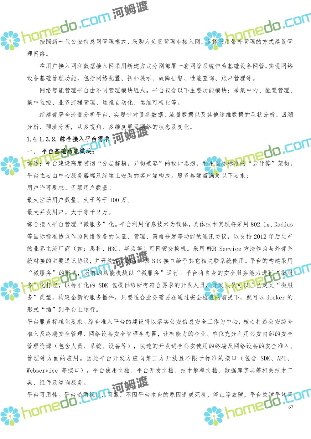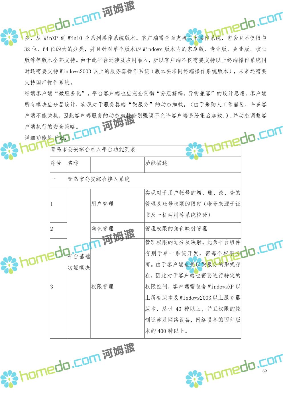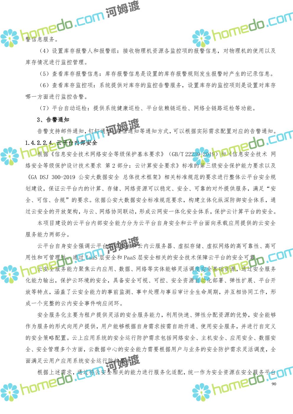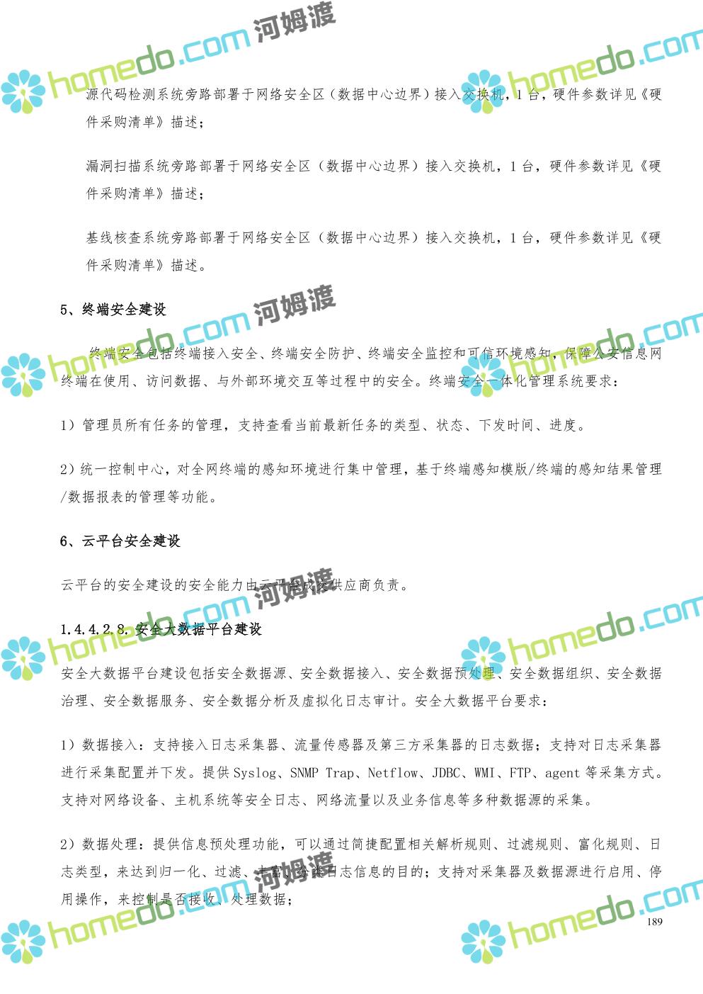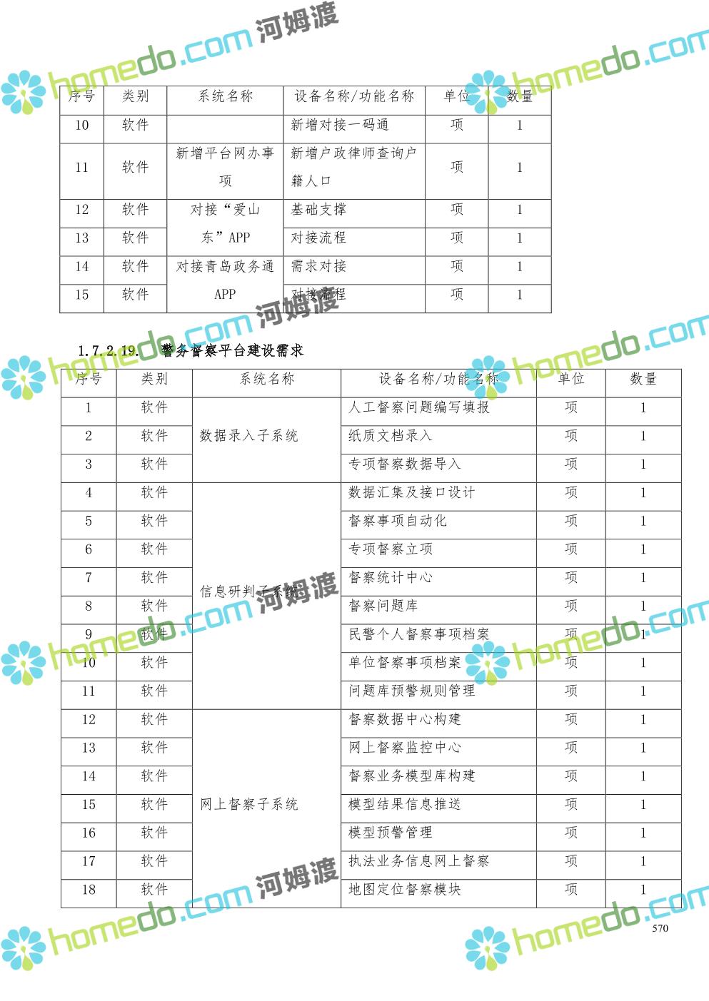 方案简介 项目围绕智慧公安“1+1+5+7”总体框架进行建设,主要建设的内容包含有1 个全息动态感知体系、1个融合大数据中心(新一代公安信息网、云计算平台、大数据平台、大数 据安全体系)、5个综合性支撑应用(数字化大屏系统、青岛警务工作门户、智能搜索系统、移动 警务应用系统、一码通支撑平台)及7大业务领域大数据应用(治安防控实战应用平台、青岛市网 络信息采集系统、刑侦合成作战系统、大数据智能化反诈平台、经侦大数据综合应用平台、智慧禁毒综合实战应用系统、“情指勤”一体化平台、“互联网+政务服务”平台、警务督察平台)。
