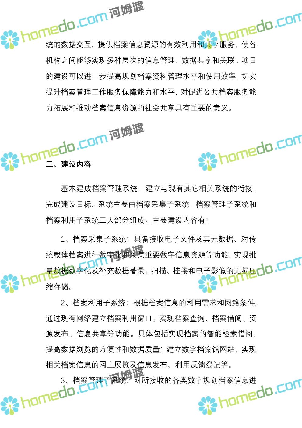 方案简介 基本建成档案管理系统,建立与现有其它相关系统的衔接,完成建设目标。系统主要由档案采集子系统、档案管理子系统和档案利用子系统三大部分组成。