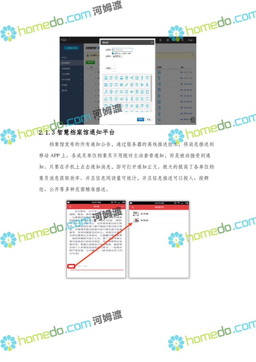 方案简介 智慧档案馆移动服务门户可对不同角色用户设置不同界面和功能应用权限。档案馆内。平台管理员具有通知公告发送和功能模块搭建调整等管理功能,档案成员单位档案员可查看在PC端及APP均可查看新闻动态、政务信息,并参与学习交流。档案馆内部员工可查看内部通知,并可参与交流、学习。