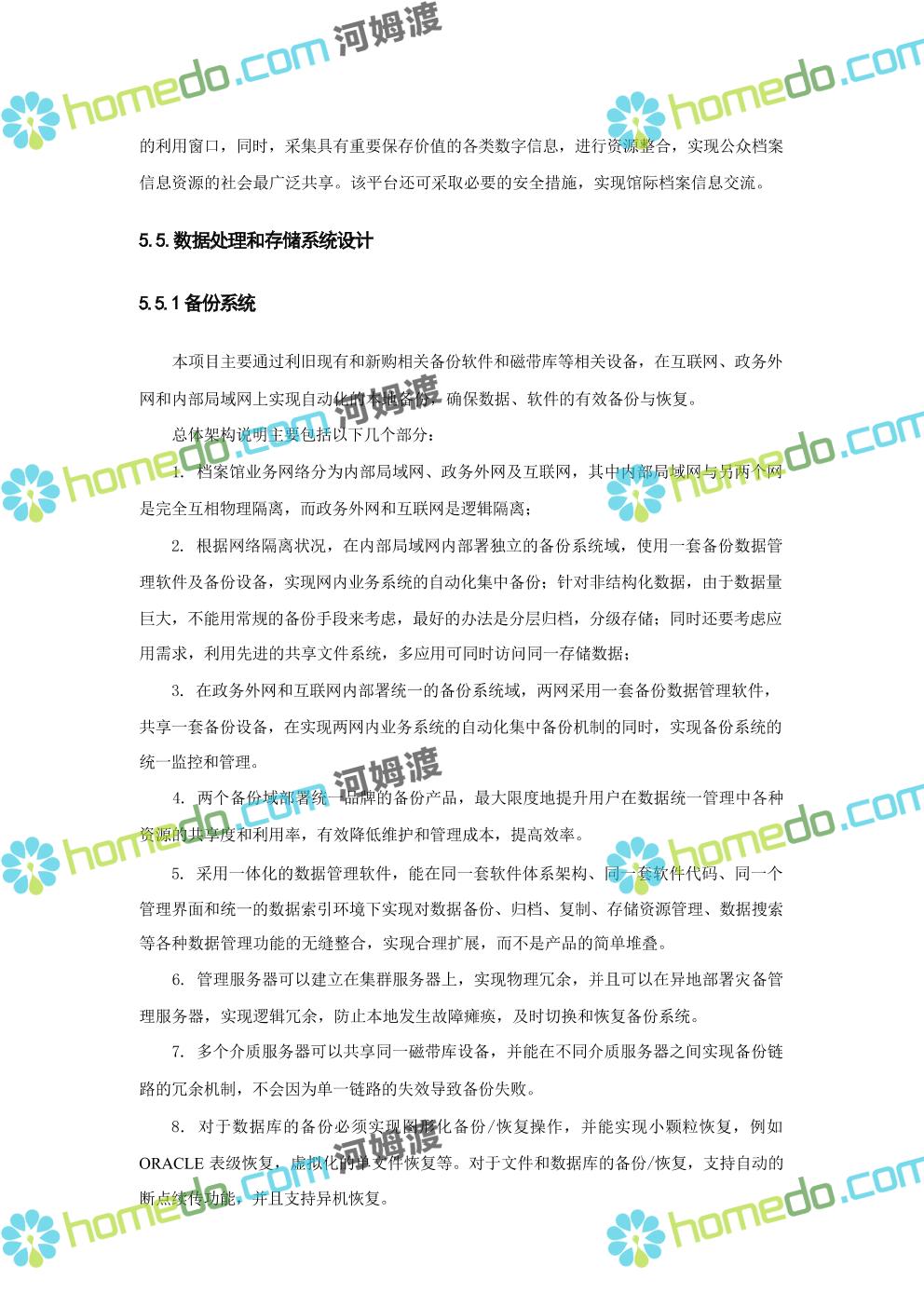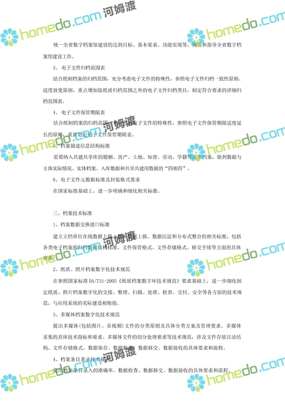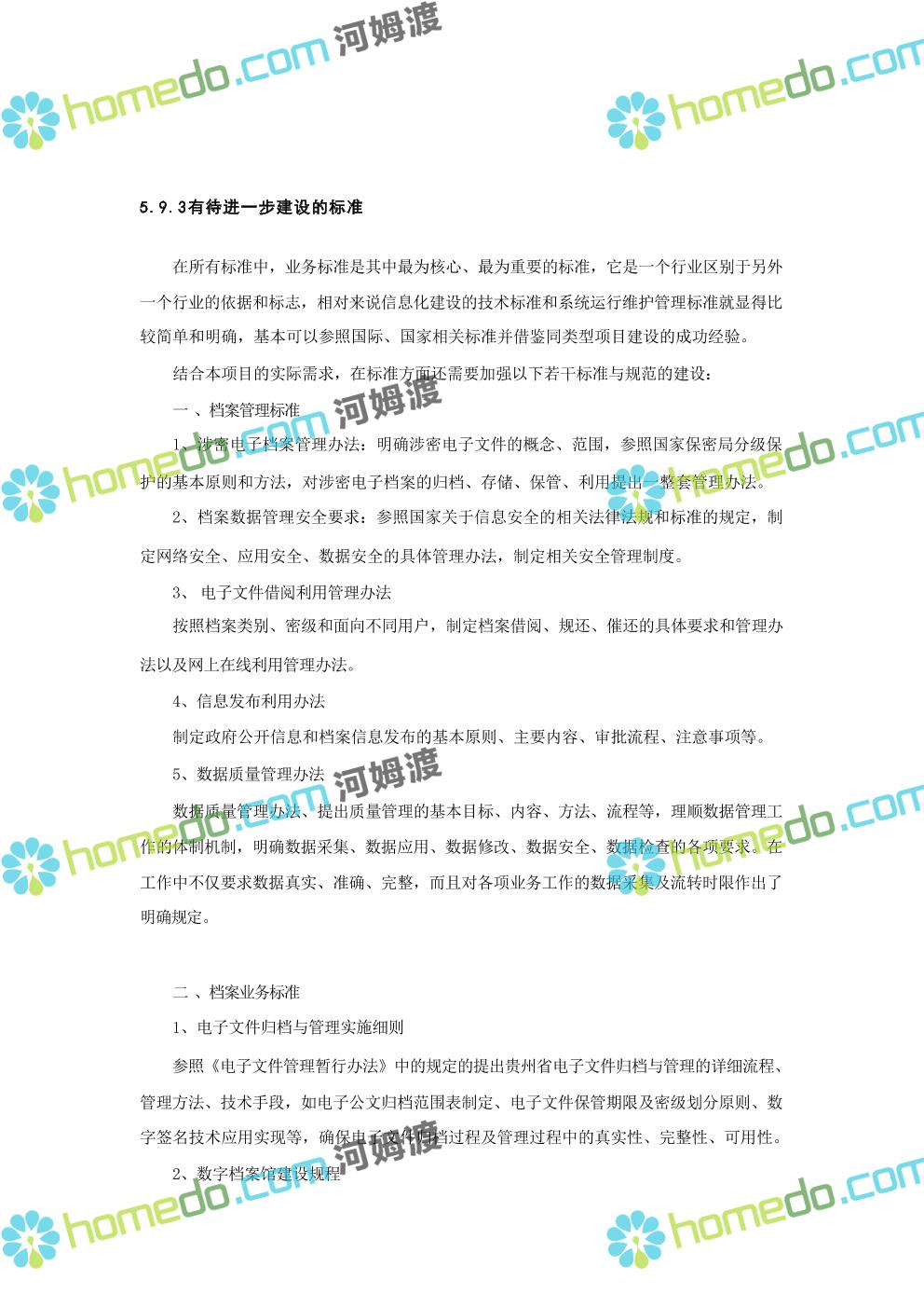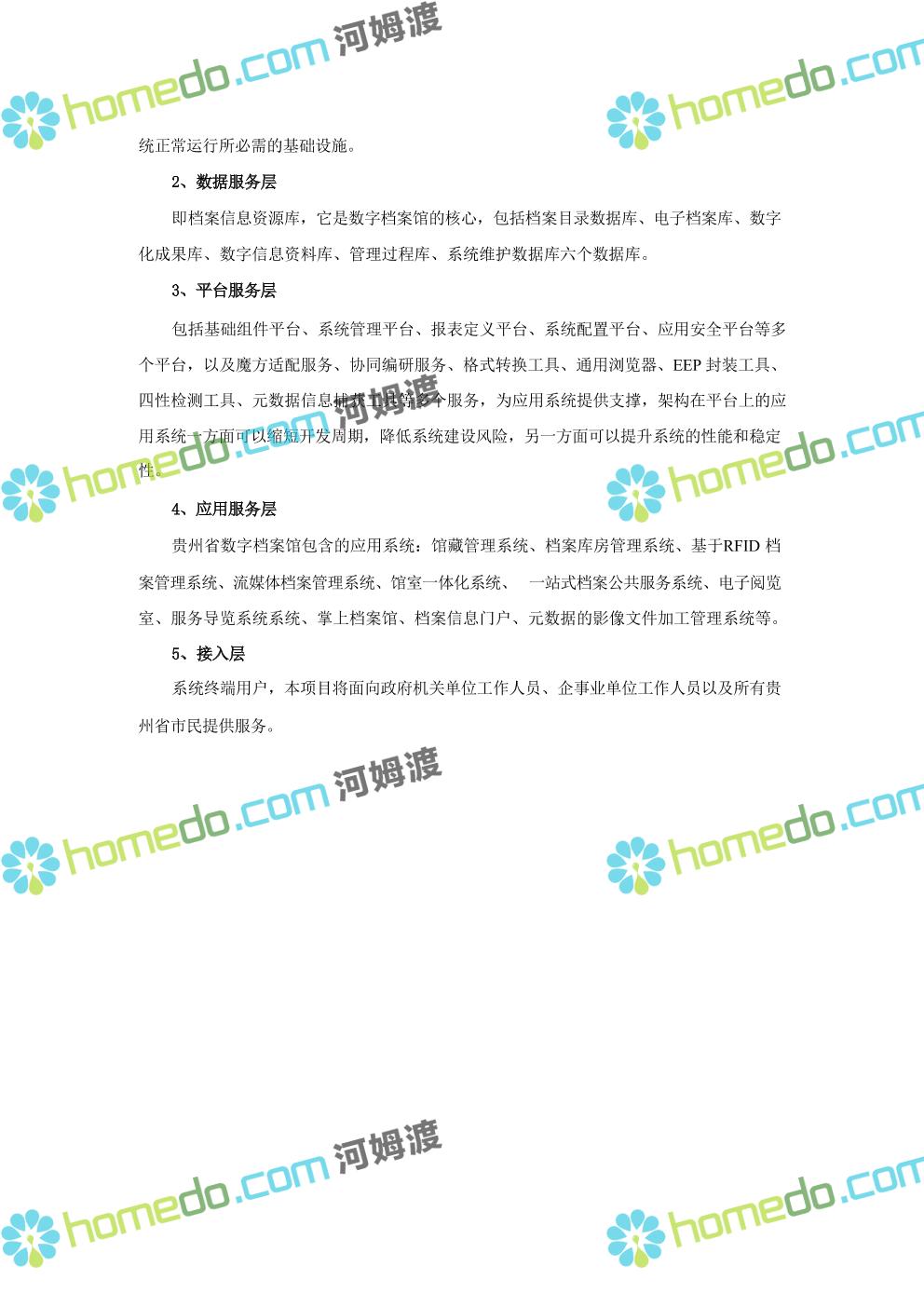 方案简介 数字档案馆的建设内容包括“一保障、二中心、二平台、四网络”建设、标准规 范建设以及数字档案馆人力资源体系建设、部分历史档案数字化加工建设等。其中一保障是 指全方位、 一体化的安全保障体现建设;二中心,档案业务数据库统一规划,建设业务数据 中心和灾备中心;二平台,包括档案综合管理平台、基础服务平台。四网络,合理利用局域 网、政务内网、政府外网进行各系统部署。