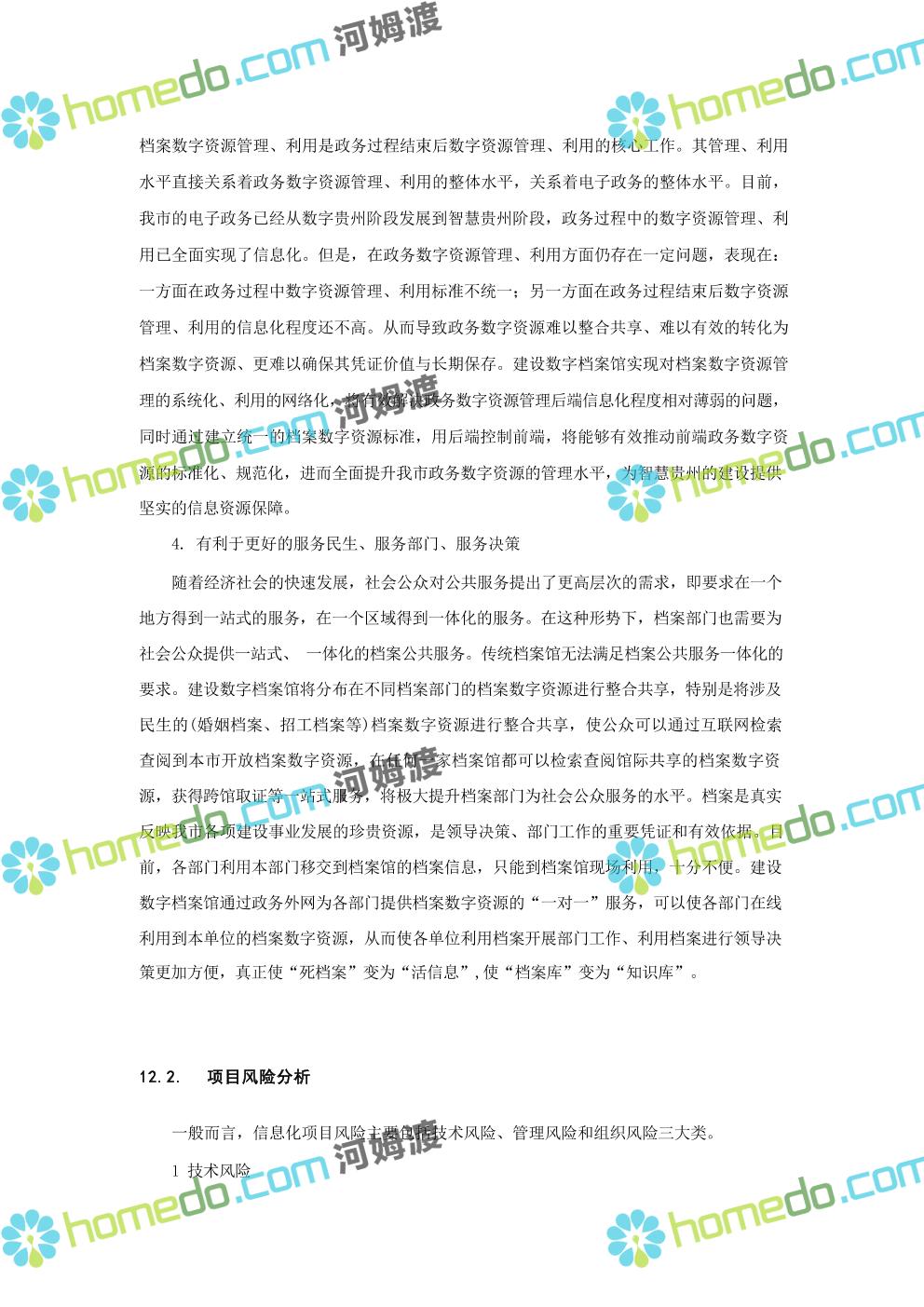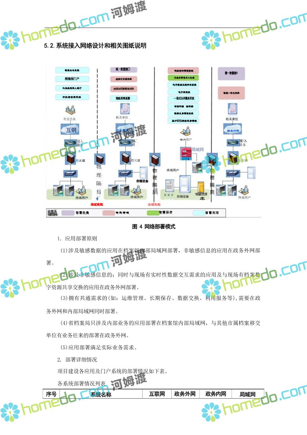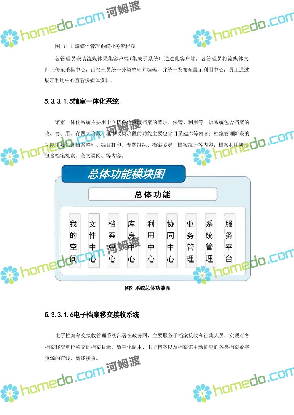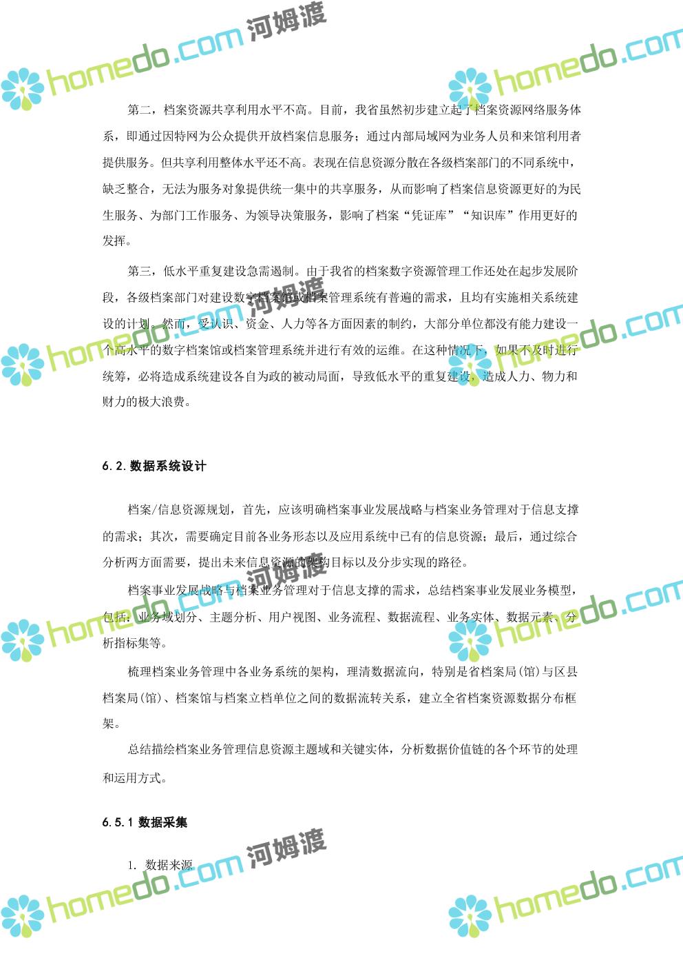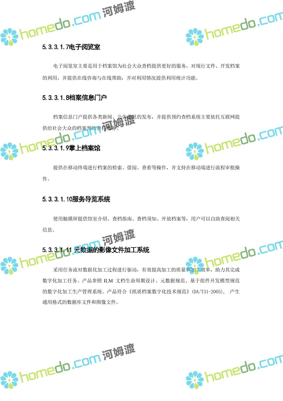 方案简介 数字档案馆的建设内容包括“一保障、二中心、二平台、四网络”建设、标准规 范建设以及数字档案馆人力资源体系建设、部分历史档案数字化加工建设等。其中一保障是 指全方位、 一体化的安全保障体现建设;二中心,档案业务数据库统一规划,建设业务数据 中心和灾备中心;二平台,包括档案综合管理平台、基础服务平台。四网络,合理利用局域 网、政务内网、政府外网进行各系统部署。