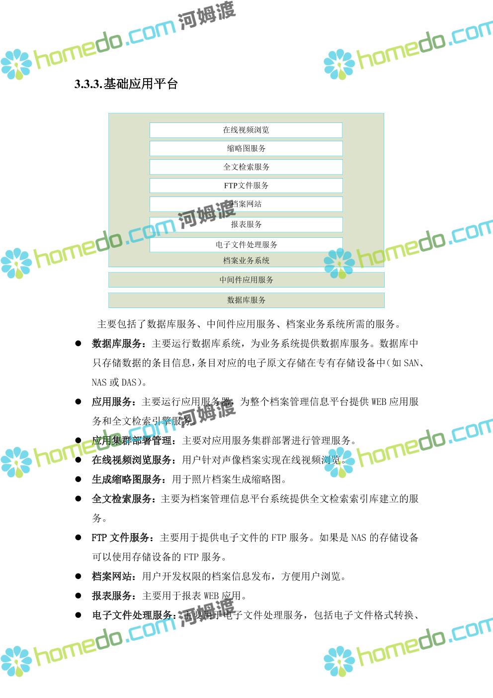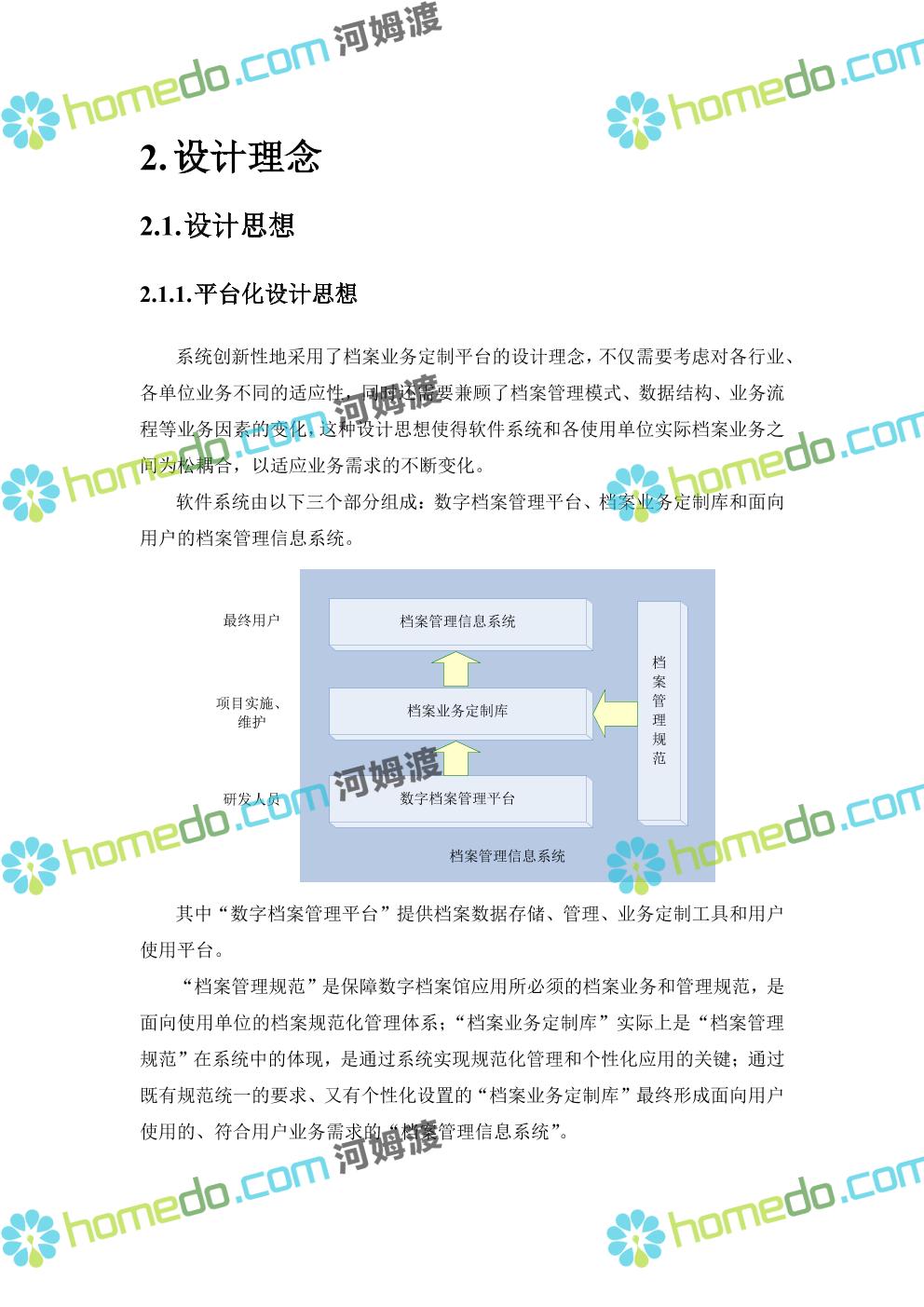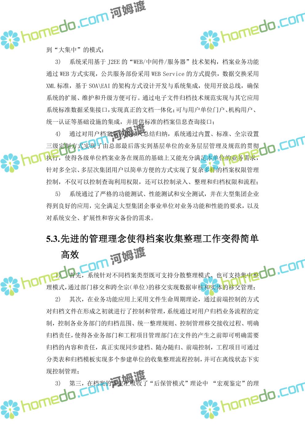 方案简介 系统采用“WEB/中间件/服务器”的J2EE技术架构来实现。 平台系统中的Web应用部分,基于J2EE平台开发,采用多层软件结构,通过Web表示层实现应用系统的用户接口,采用业务逻辑层和数据处理层实现基础服务和应用系统的业务逻辑,通过数据存储层实现数据的集中存储和数据结构的统一。Web应用系统通过以XML作为数据接口标准,以Web Service 标准作为基础服务描述标准和数据接口标准。 公共服务部分主要使用Web Service的方式提供,Web Service 通过标准的 Web 协议向 Web 用户提供功能,多数情况下采用 SOAP 协议。