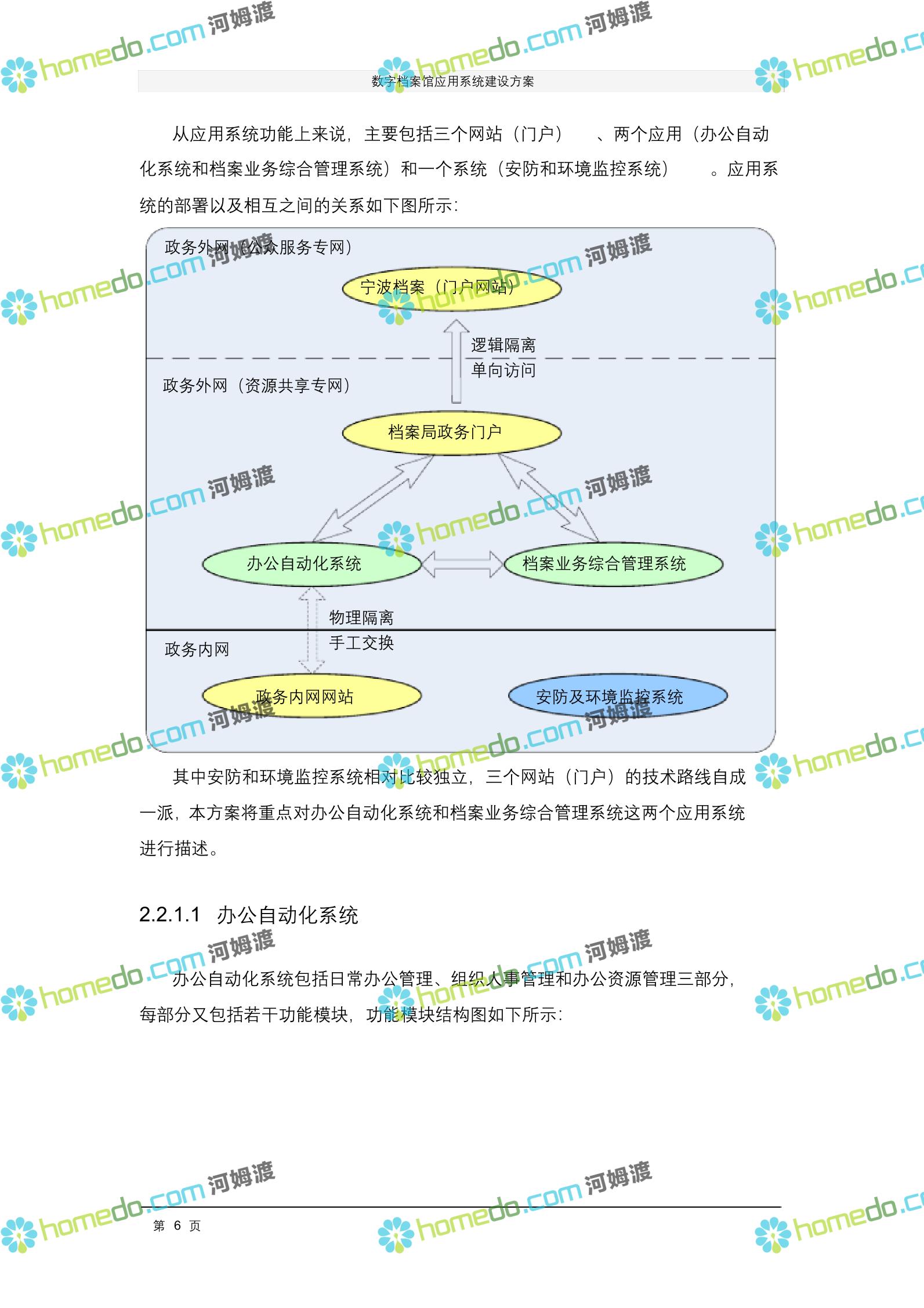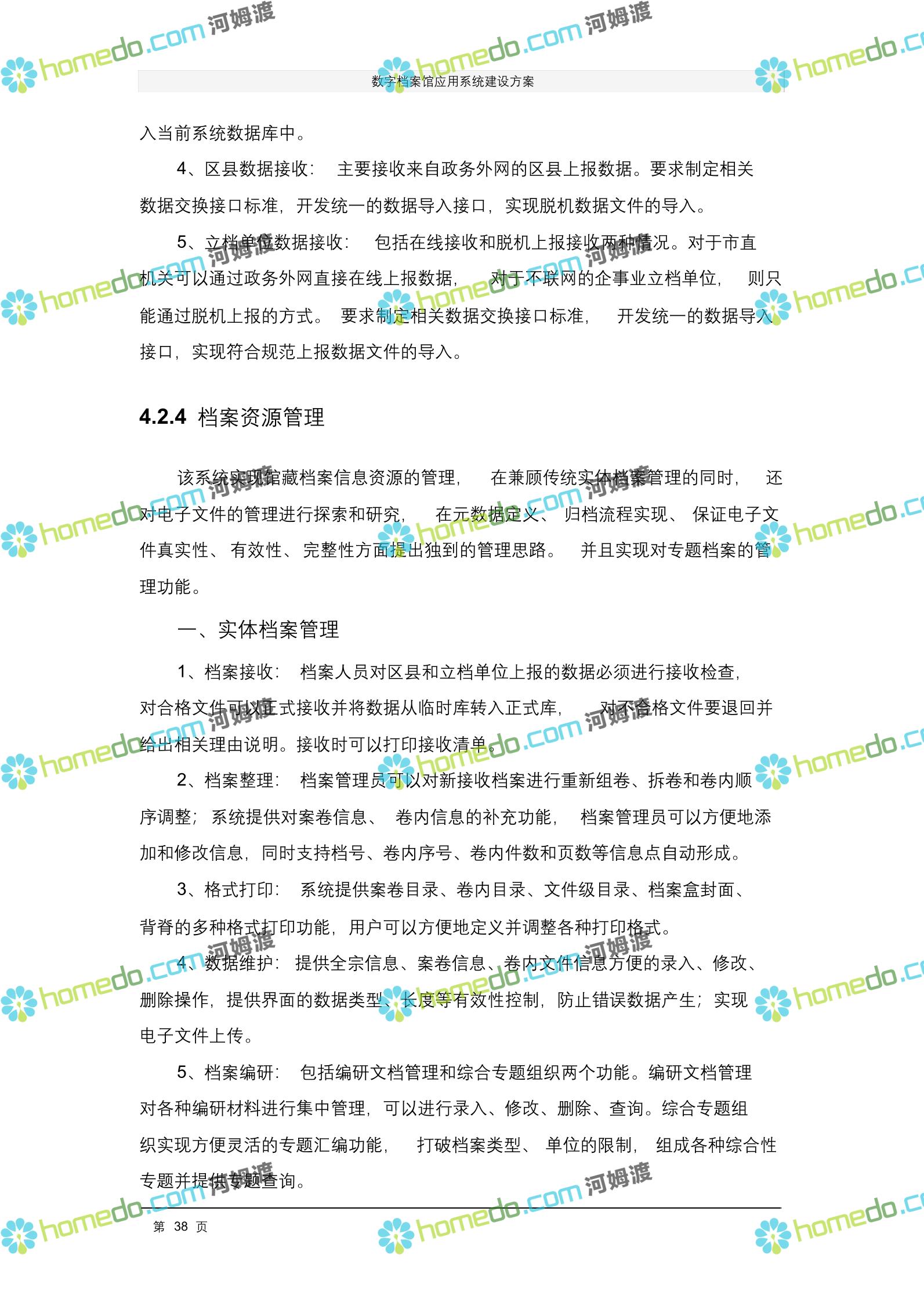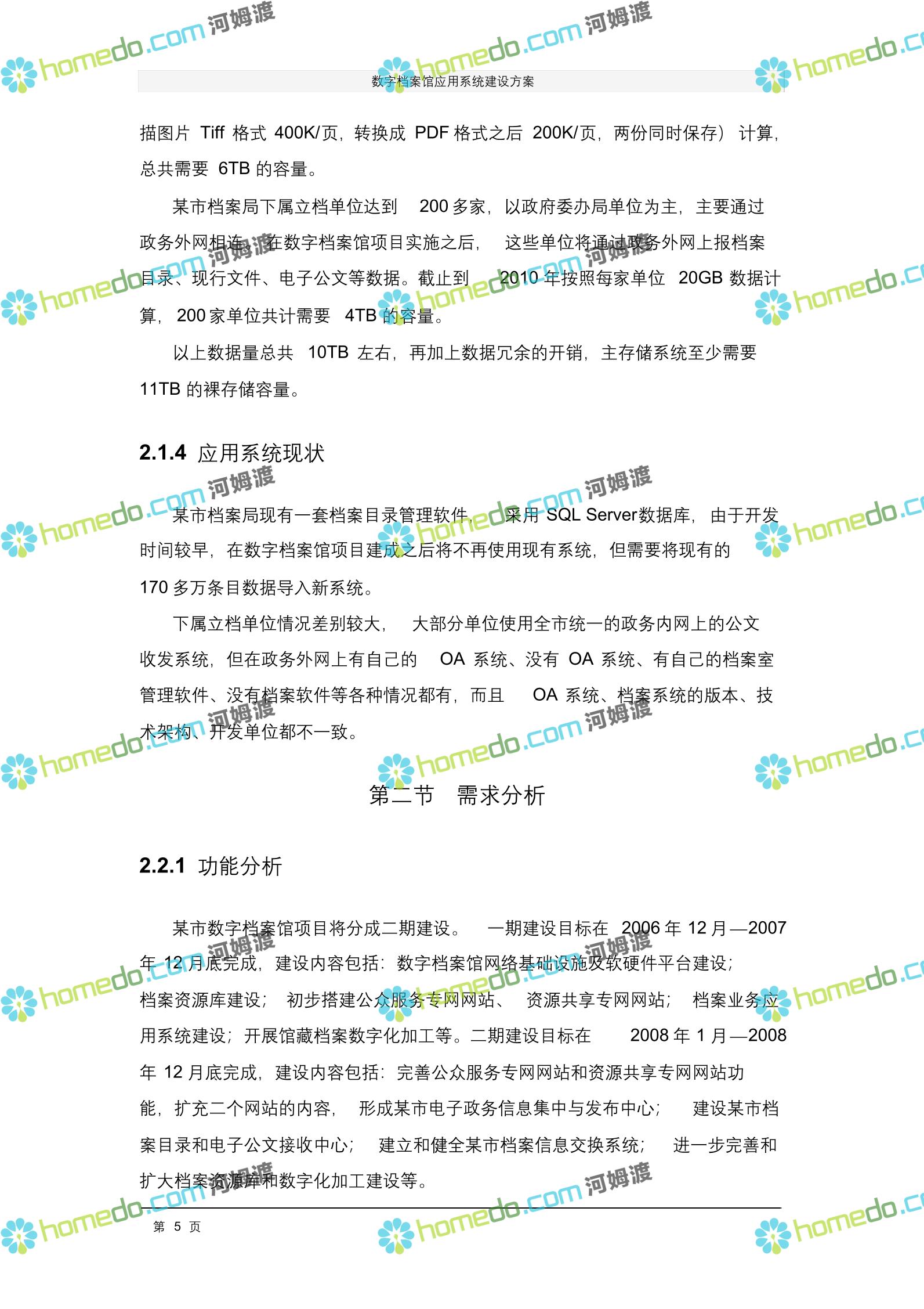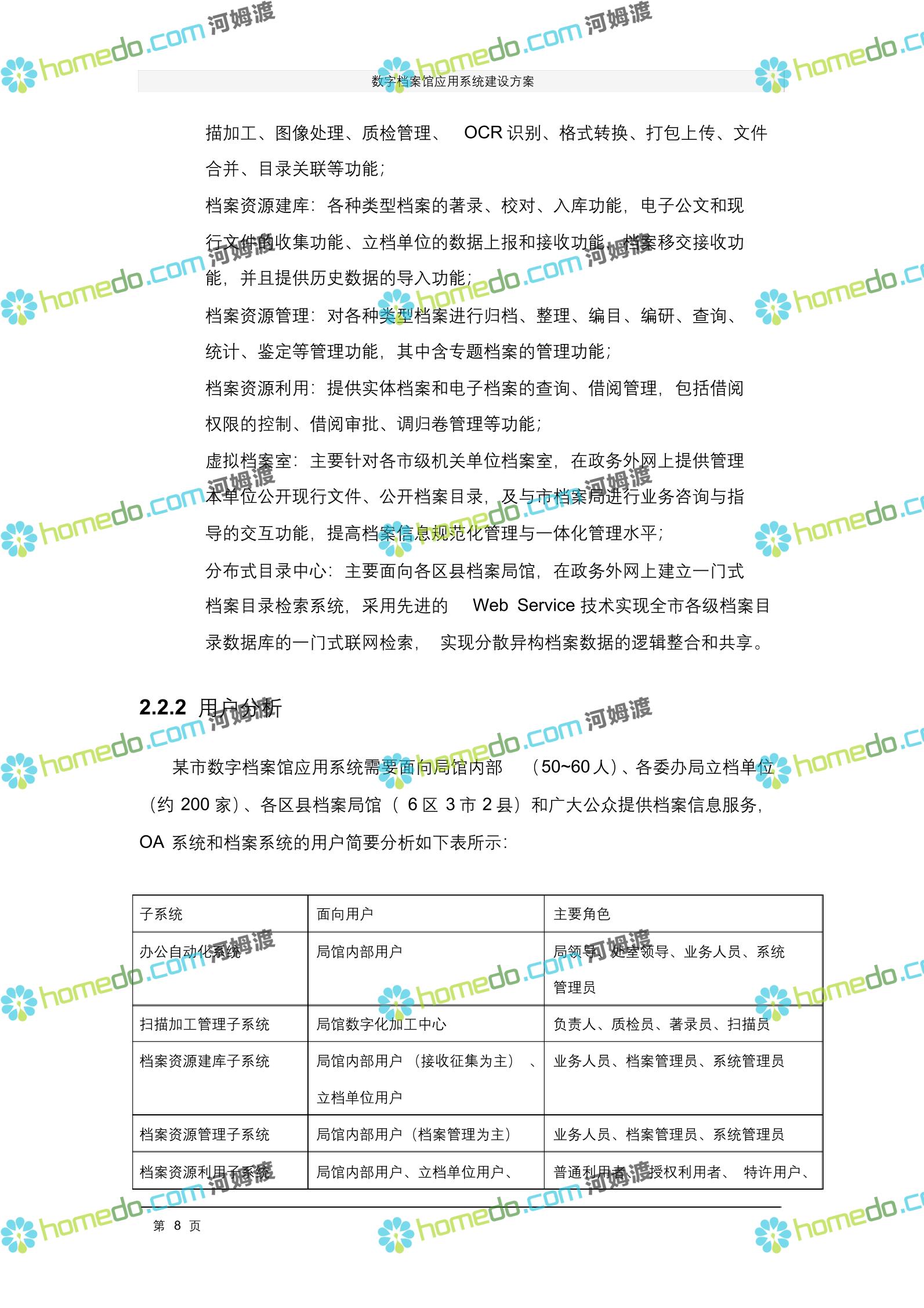 方案简介 某市档案局(馆)是中共某市委、某市人民政府直属事业单位,履行全市档案事业行政管理和市级档案保管、利用职能,按照“统一领导、分级管理”原则,对本行政区域内机关、团体、企业事业单位和其他组织的档案工作实行监督和指导;负责征集、接收和保管某市直属(包括原某地区)各机关、团体、企事业单位、著名人物形成的档案,以及建国前本地革命历史档案和旧政权档案,并提供档案为社会主义各项事业建设服务。