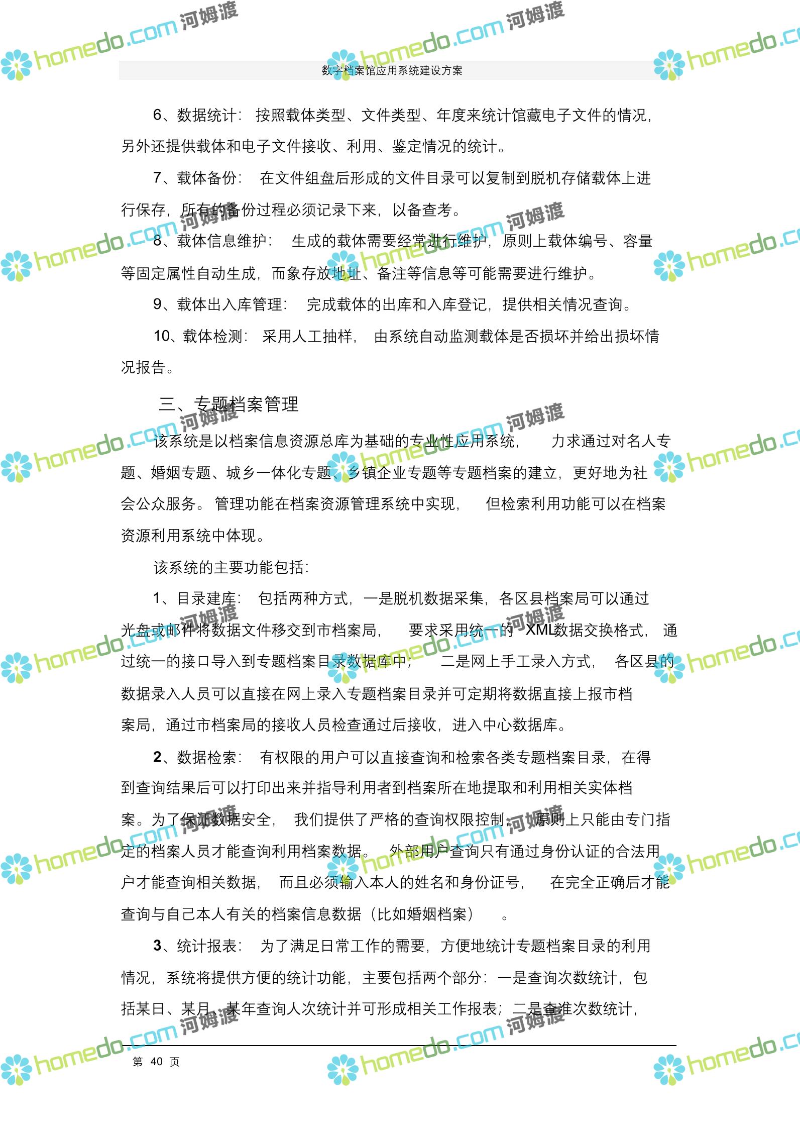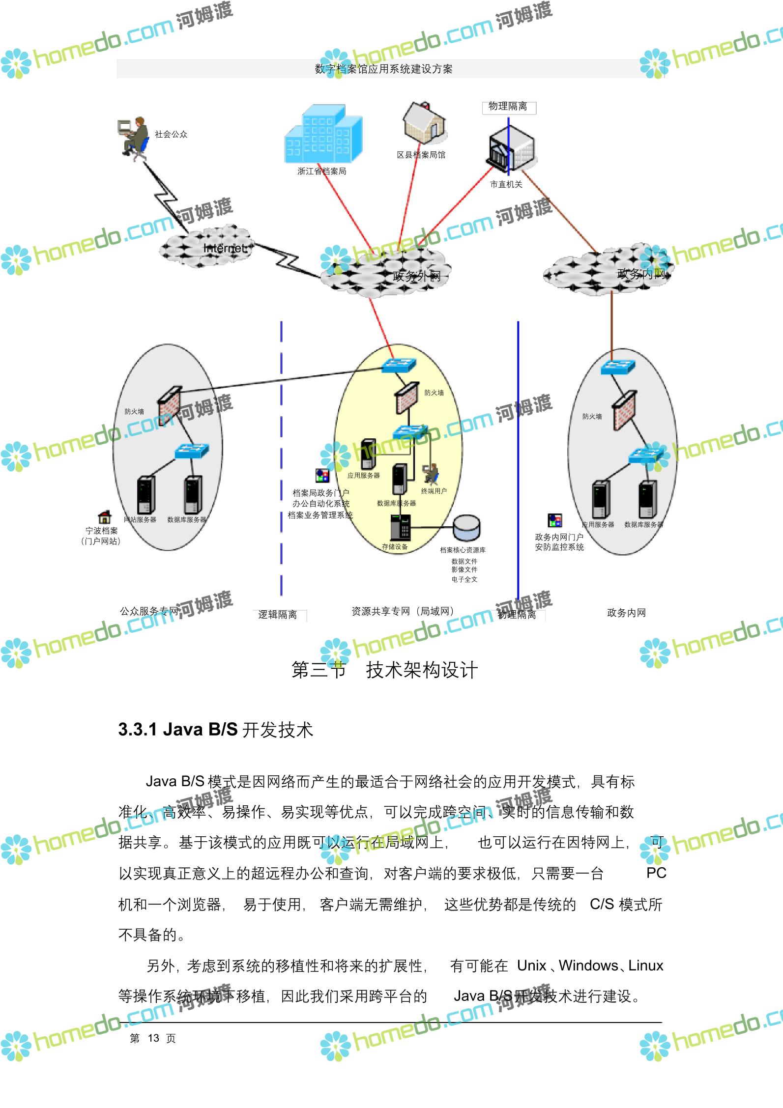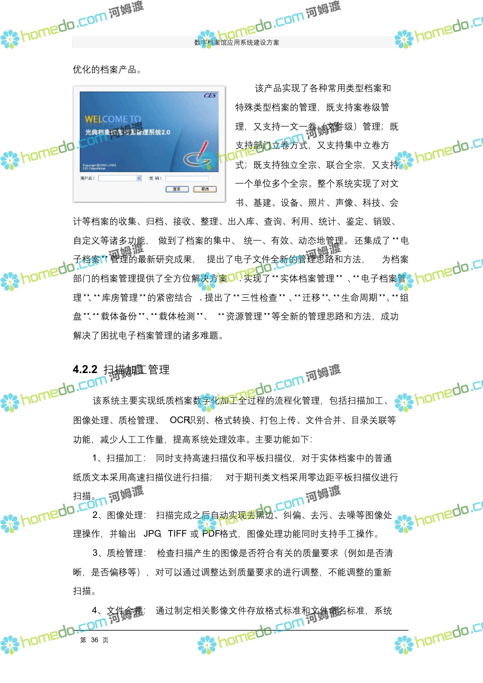 方案简介 某市档案局(馆)是中共某市委、某市人民政府直属事业单位,履行全市档案事业行政管理和市级档案保管、利用职能,按照“统一领导、分级管理”原则,对本行政区域内机关、团体、企业事业单位和其他组织的档案工作实行监督和指导;负责征集、接收和保管某市直属(包括原某地区)各机关、团体、企事业单位、著名人物形成的档案,以及建国前本地革命历史档案和旧政权档案,并提供档案为社会主义各项事业建设服务。