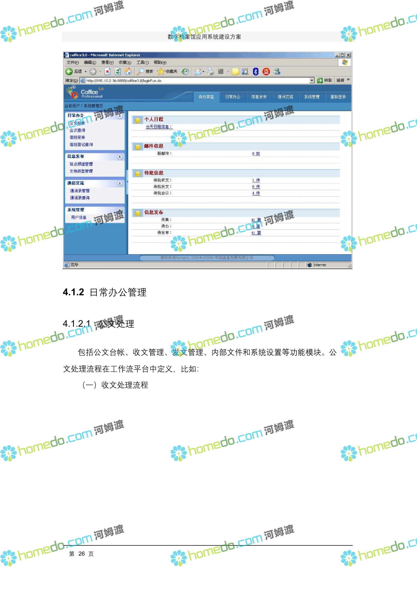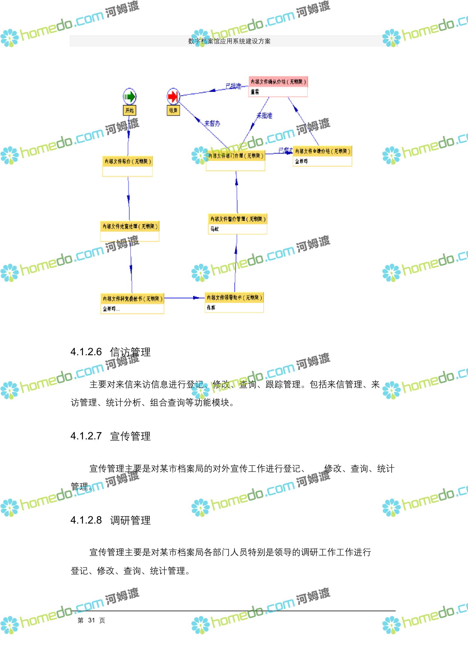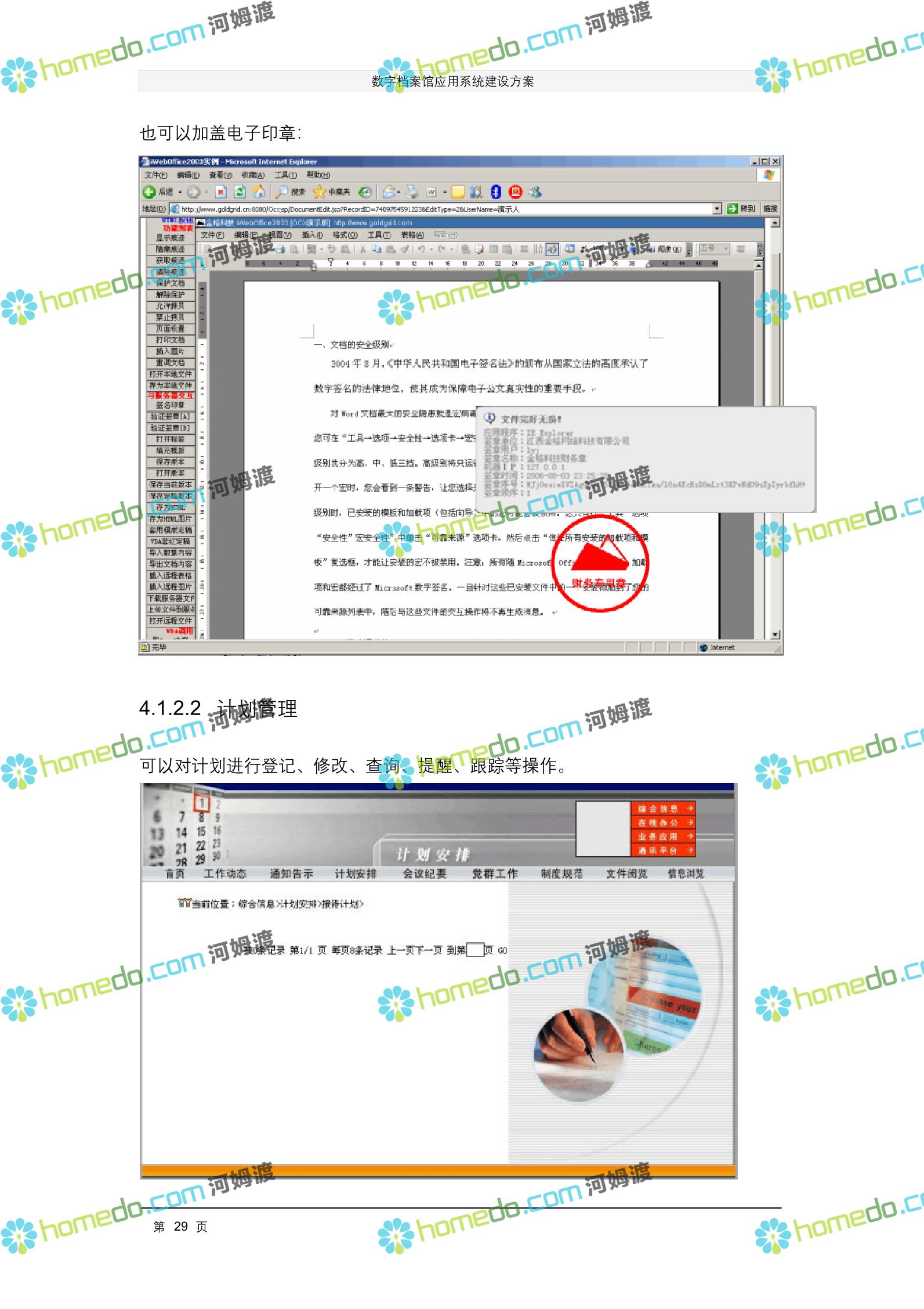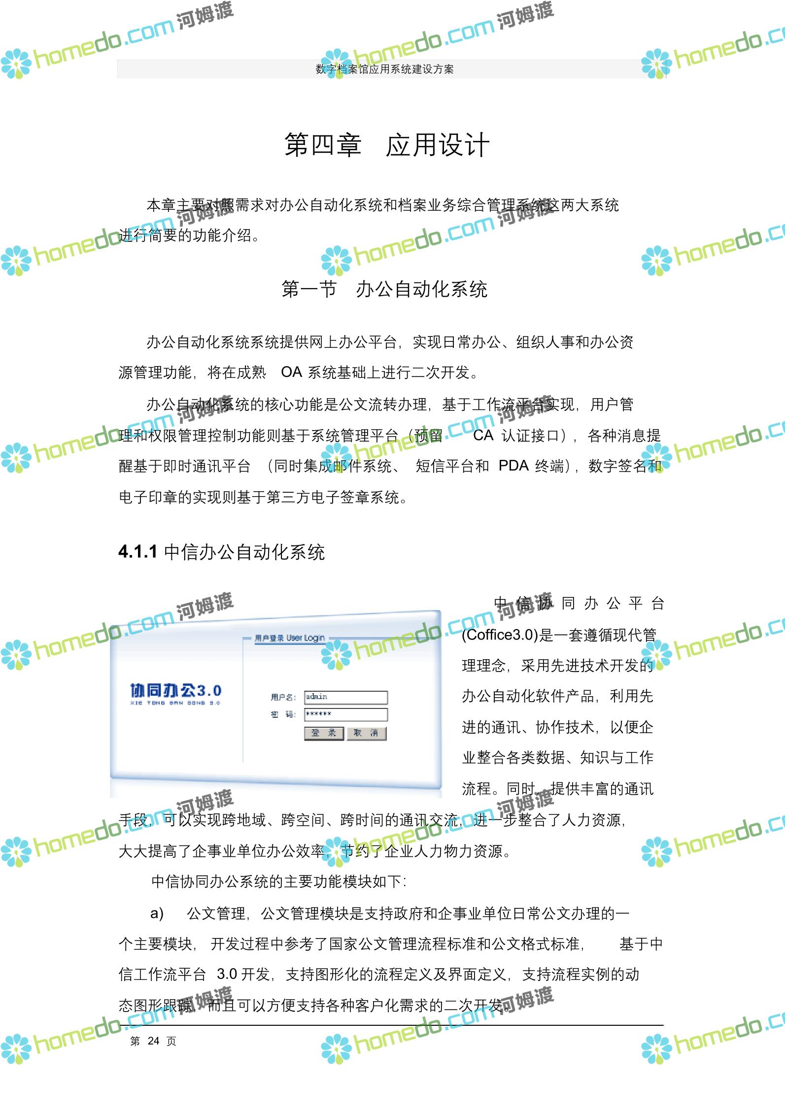 方案简介 某市档案局(馆)是中共某市委、某市人民政府直属事业单位,履行全市档案事业行政管理和市级档案保管、利用职能,按照“统一领导、分级管理”原则,对本行政区域内机关、团体、企业事业单位和其他组织的档案工作实行监督和指导;负责征集、接收和保管某市直属(包括原某地区)各机关、团体、企事业单位、著名人物形成的档案,以及建国前本地革命历史档案和旧政权档案,并提供档案为社会主义各项事业建设服务。