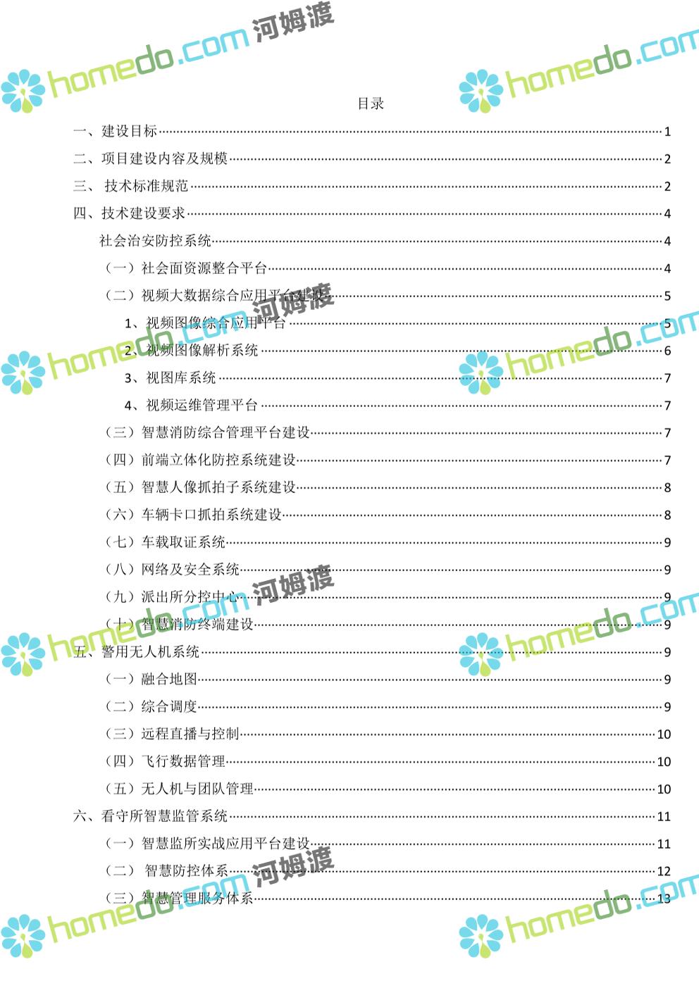 方案简介 “智慧公安”建设项目采购内容为社会治安防控系统、警用无人机系统、看守所智慧监管系统、智慧交管系统四个部分,具体祥见方案