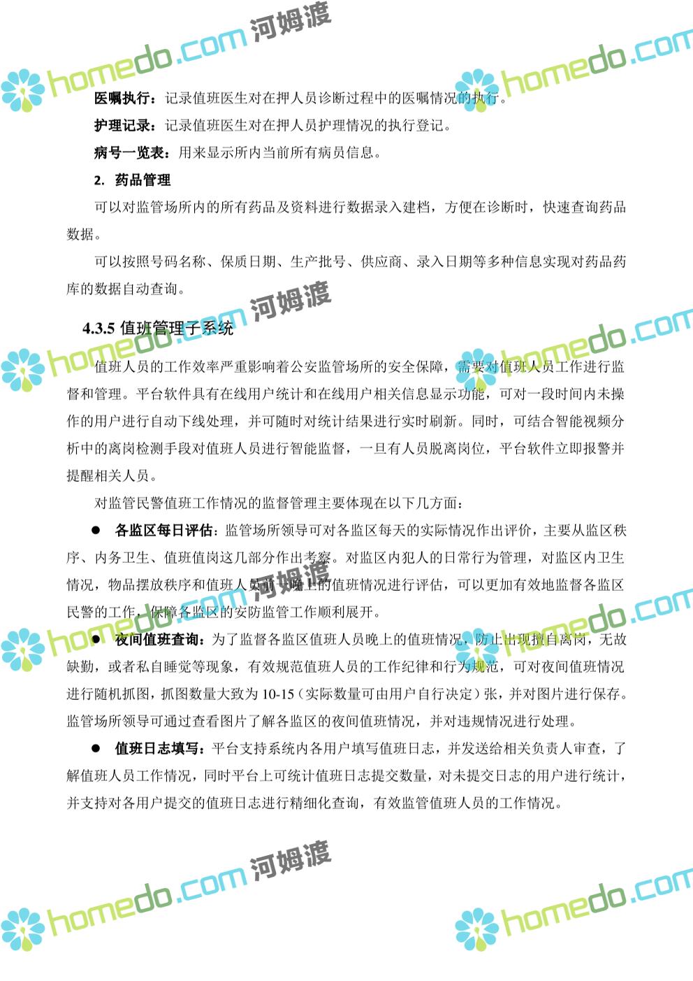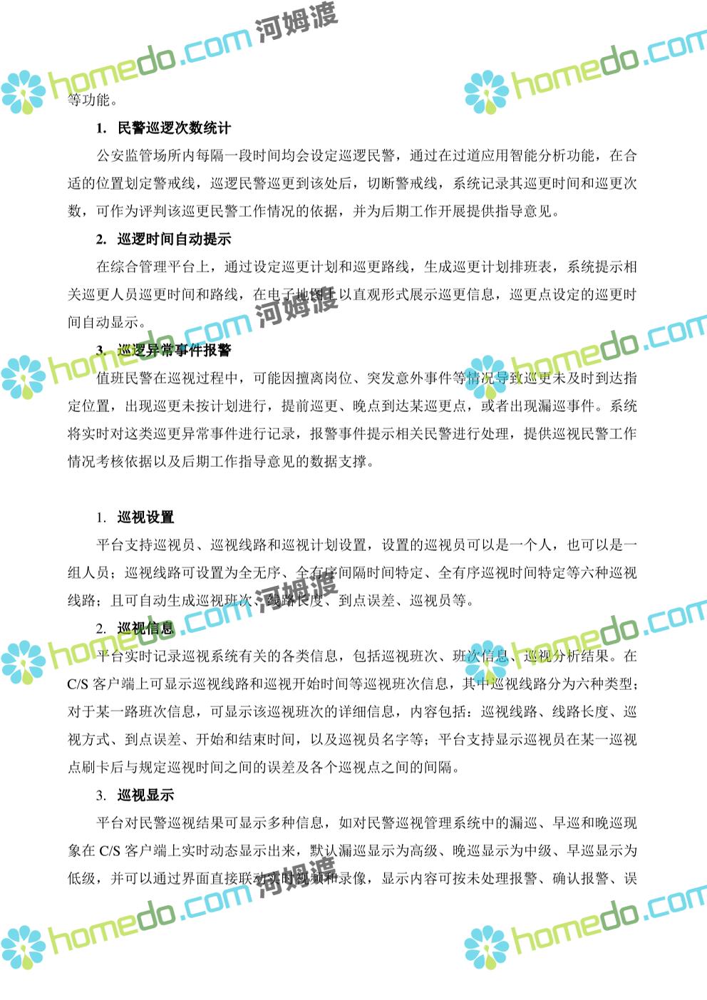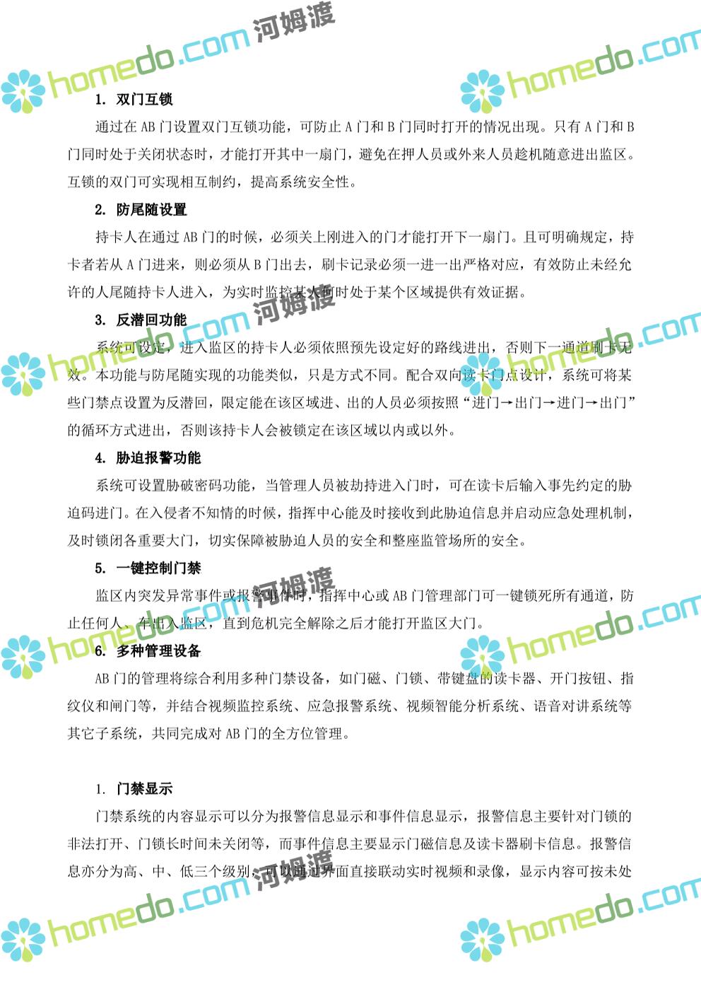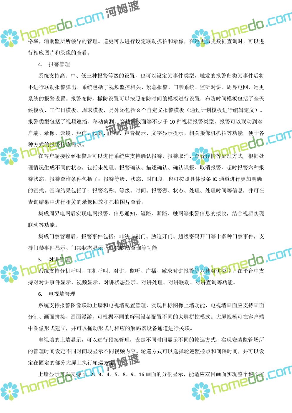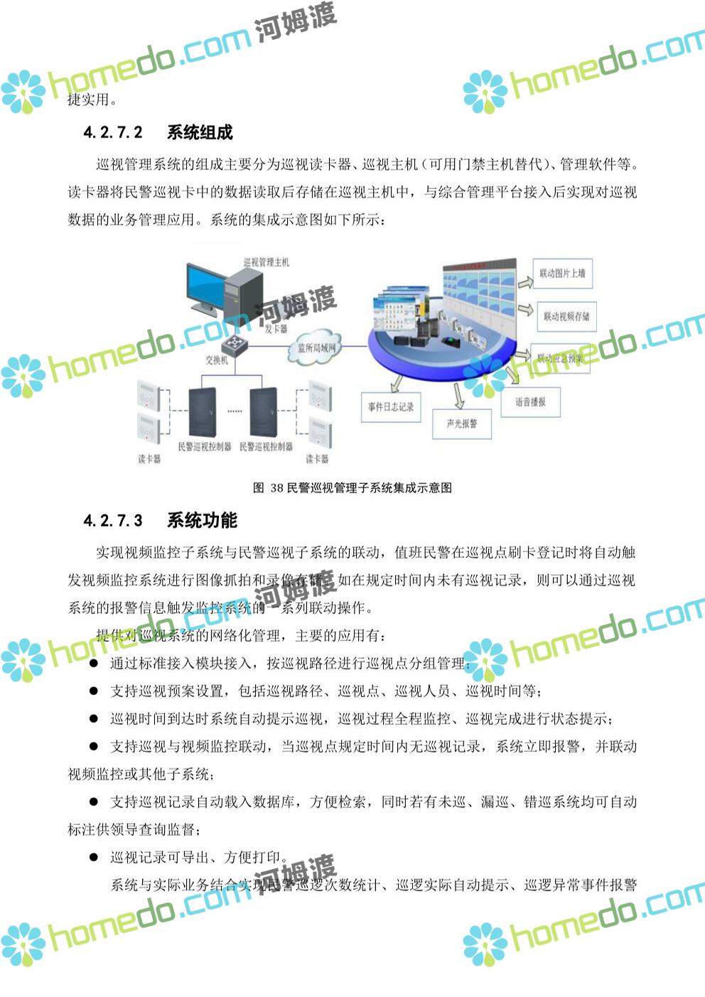 方案简介 根据实际工作需求,以及看守所技术建设规范,此项目建设 个子系统,分别为智能监室系统、应急警报系统、周界控制系统、违禁物品检测系统、监区门禁系统、监控系统、在押人员报告系统、会见管理系统、电化教育(广播)系统、民警巡视管理系统、讯问指挥系统、智能巡视系统、在押人员消费系统、公共区域监控系统、监控中心等系统。