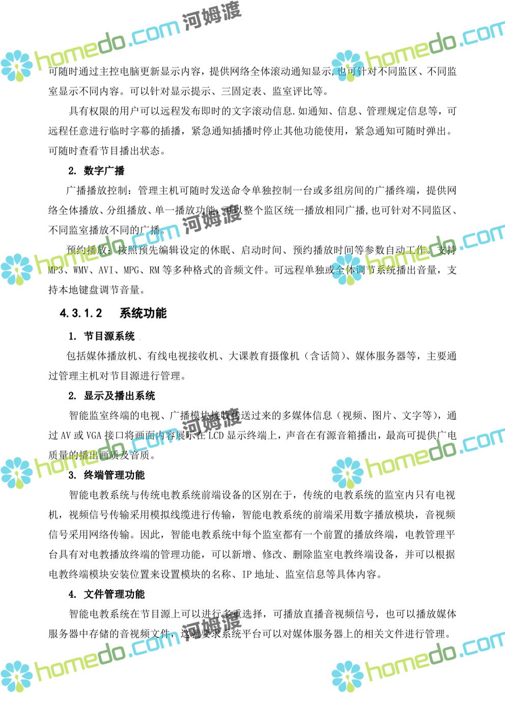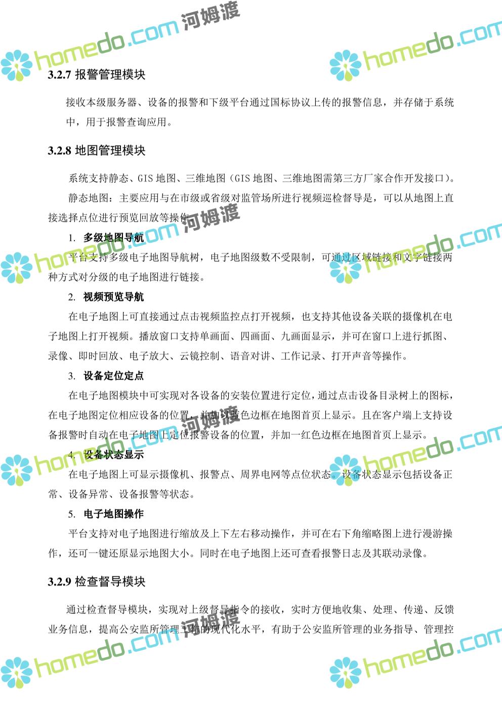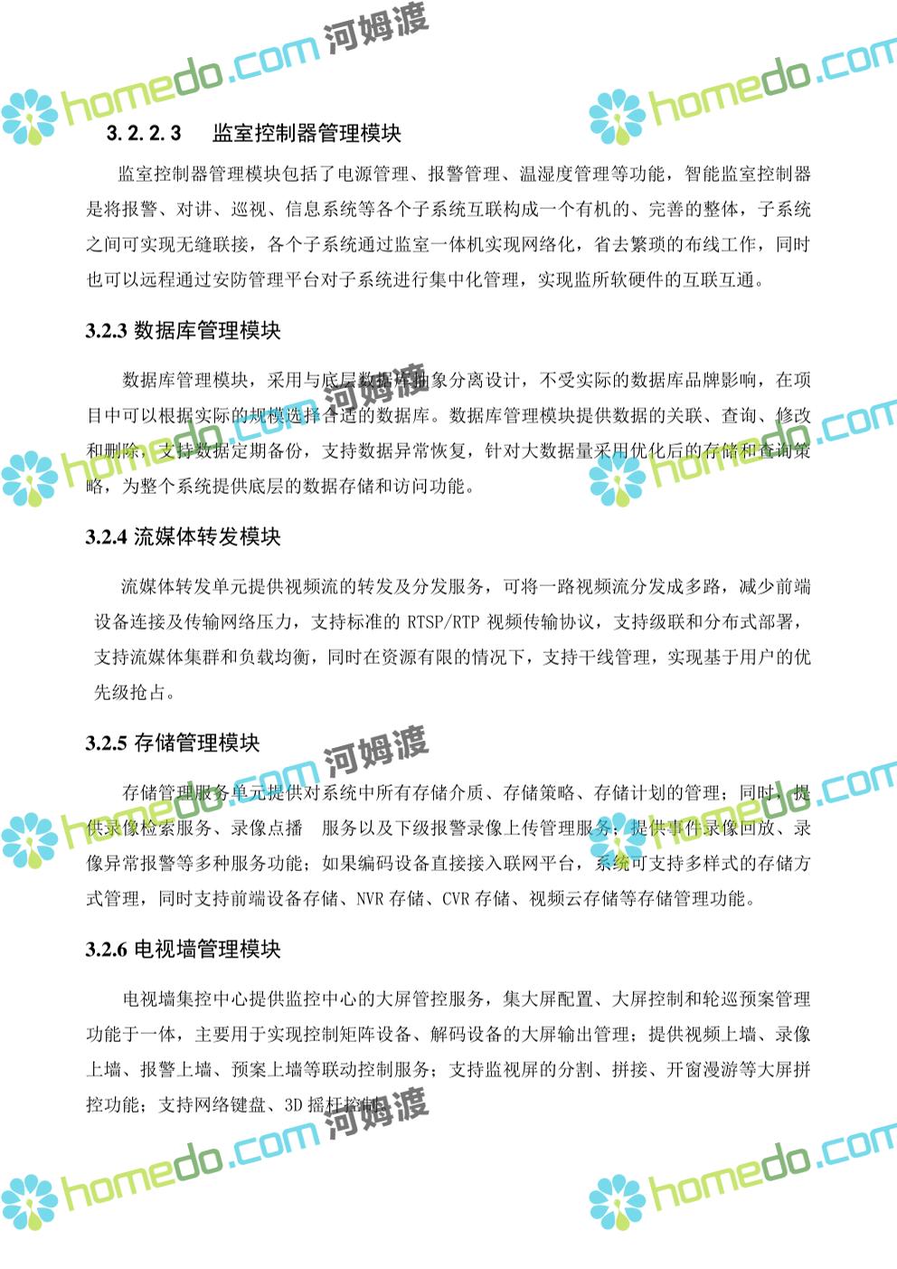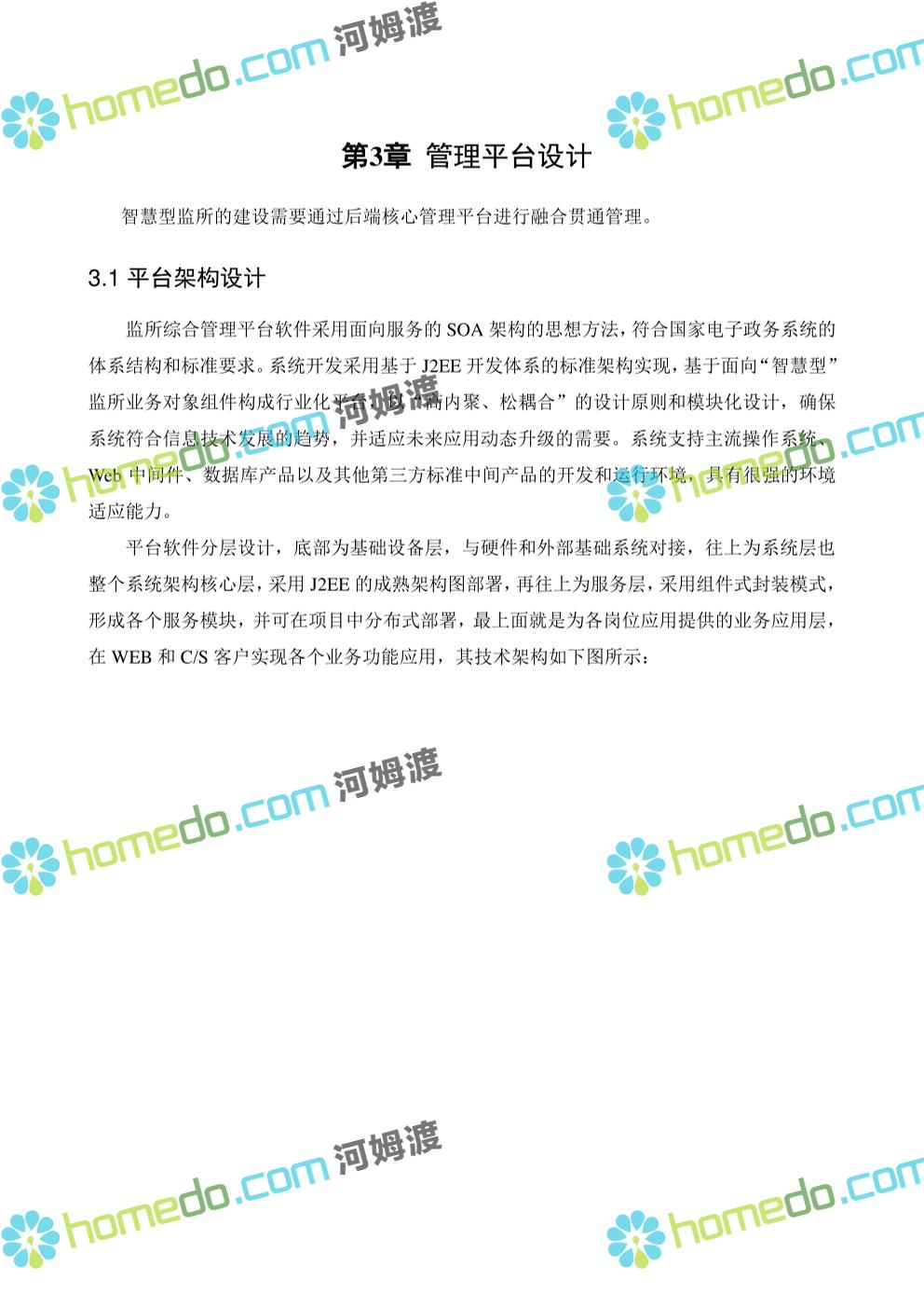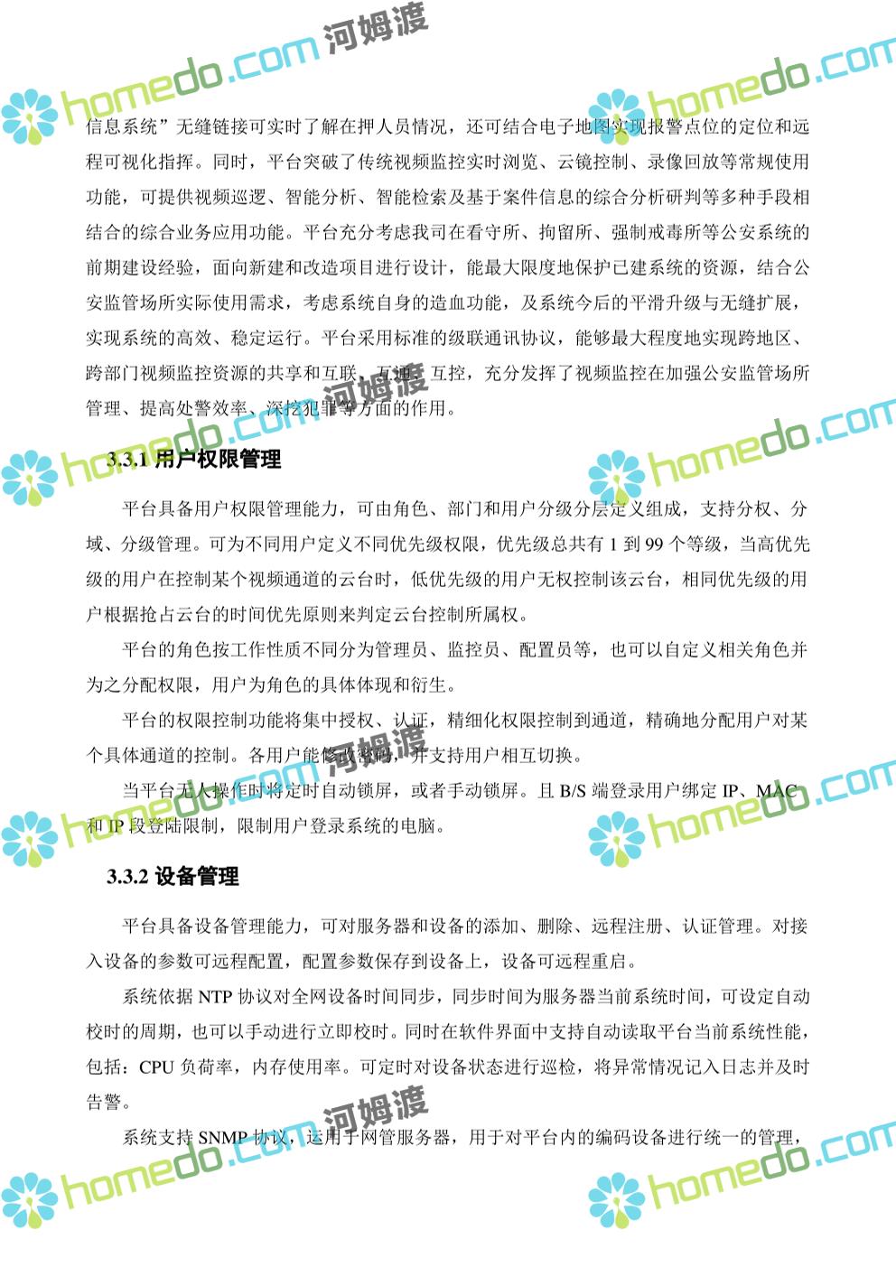 方案简介 根据实际工作需求,以及看守所技术建设规范,此项目建设 个子系统,分别为智能监室系统、应急警报系统、周界控制系统、违禁物品检测系统、监区门禁系统、监控系统、在押人员报告系统、会见管理系统、电化教育(广播)系统、民警巡视管理系统、讯问指挥系统、智能巡视系统、在押人员消费系统、公共区域监控系统、监控中心等系统。