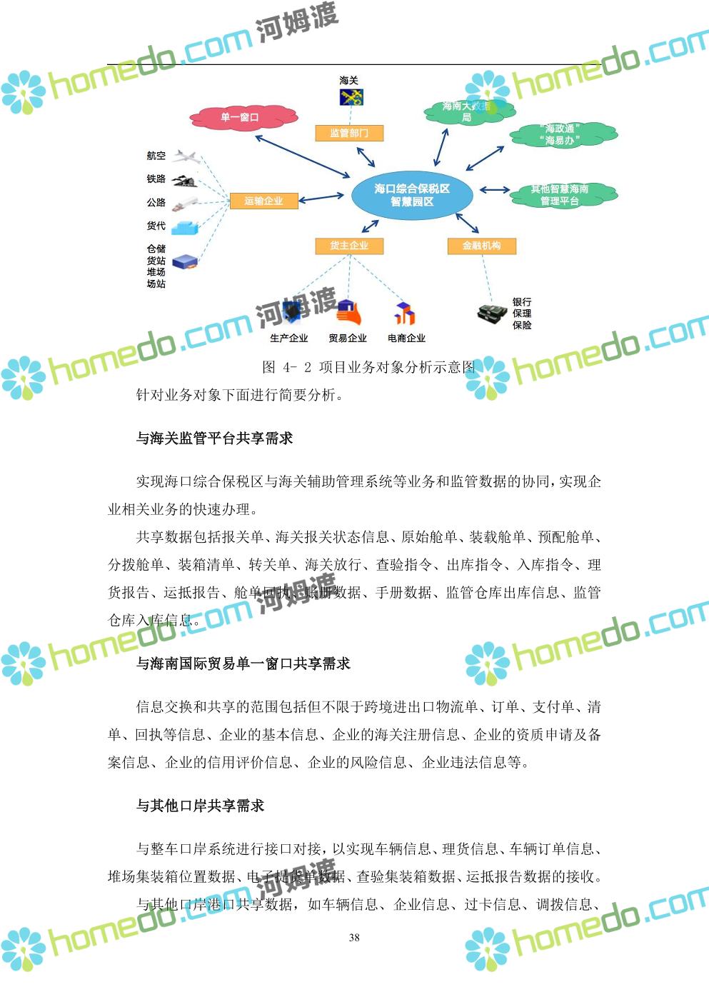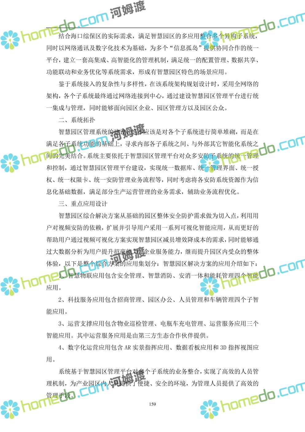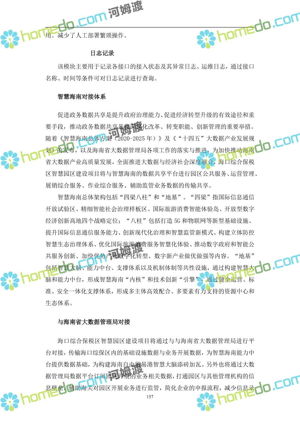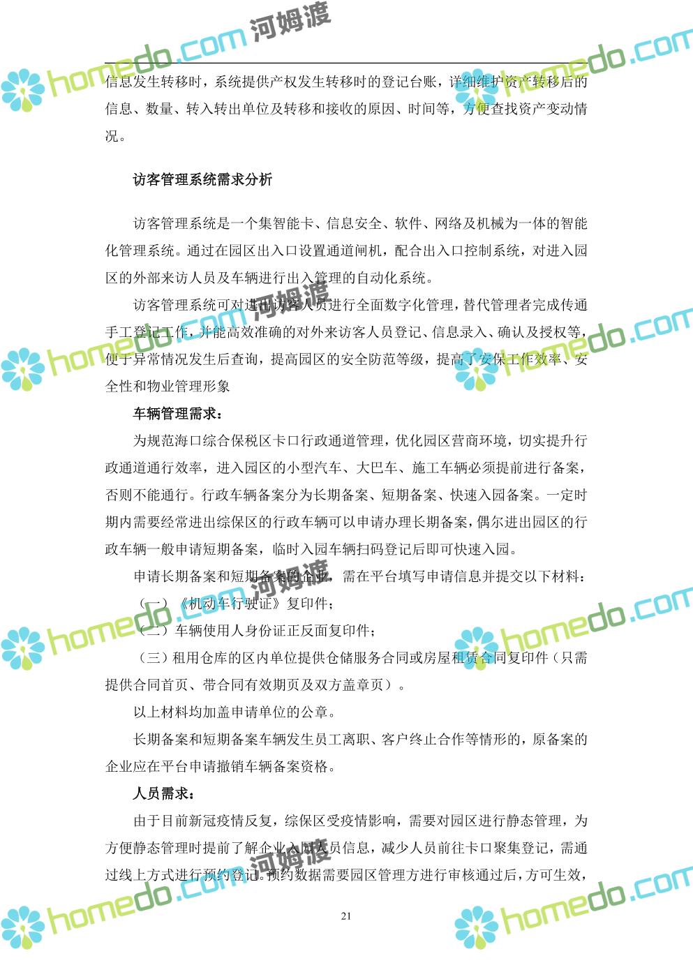 方案简介 本项目将以“1个方向、2个看齐、3个目标”服务六大产业建设海口综合保税区智慧园区: 1个方向:以“大连接”、”大平台”、”大数据”为核心,坚持综保区统筹规划、统筹布局、集约部署,自上而下构建体系优化、资源共享、功能强大、应用丰富、管理高效的智慧园区。 2个看齐:看齐试点建设全时空智慧园区;智慧赋能,看齐吸取上海洋山综保区成功经验,打造生态环境和营商环境双一流的智慧综保区。 3个目标:建设智慧监管,智慧协同海关等管理部门,优化营商环境、通关流程,完善设施建设,高效完成通关任务,实现对园区内企业管理,对接智慧海南“一人一码、一物一链、一企一账”实现海关对监管对象精准监管。
