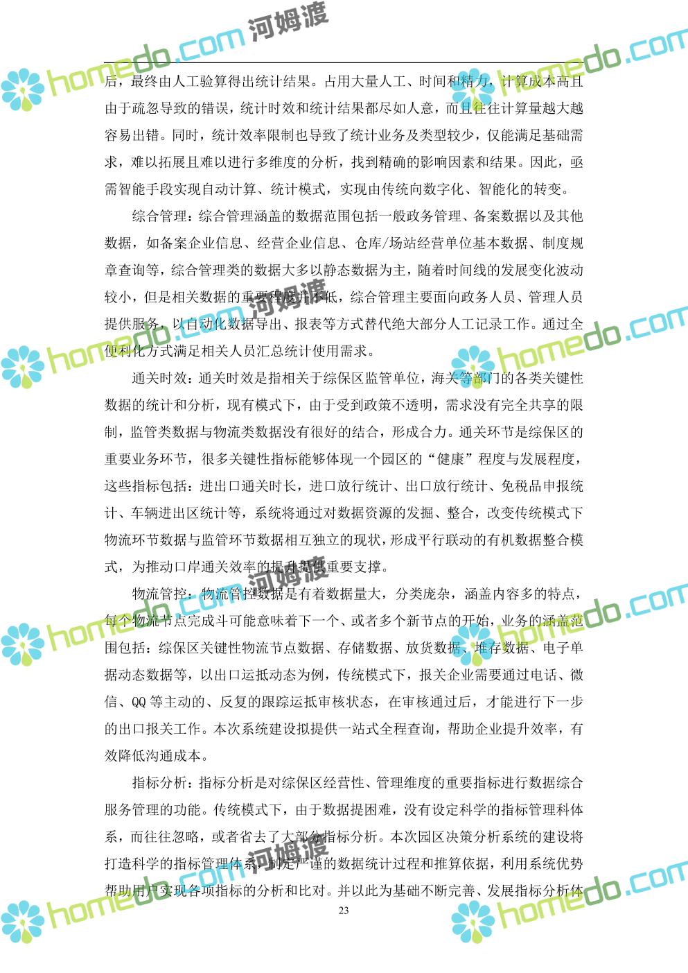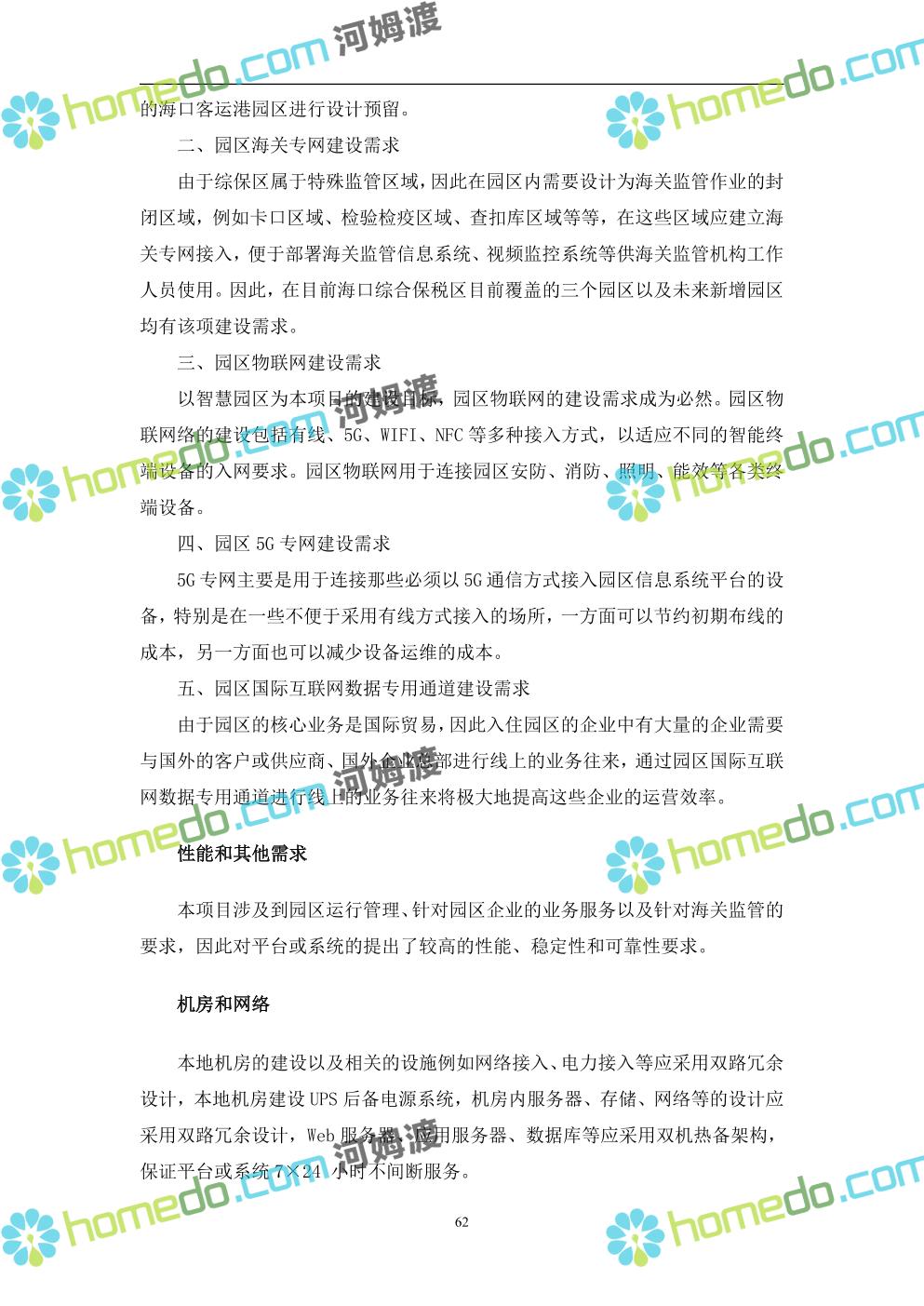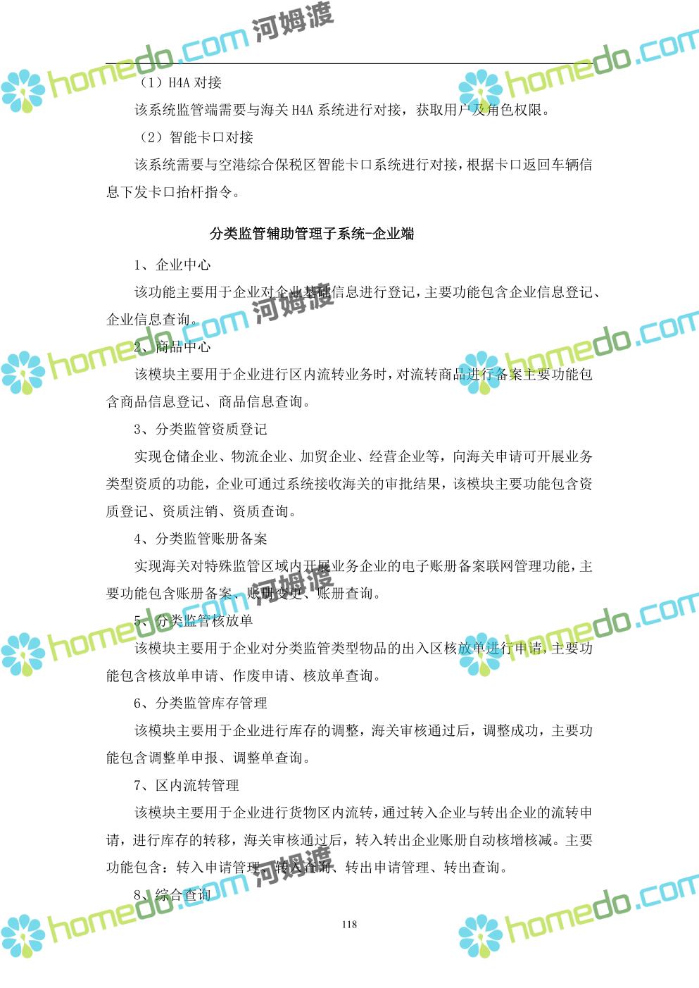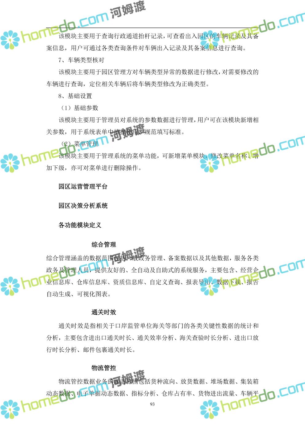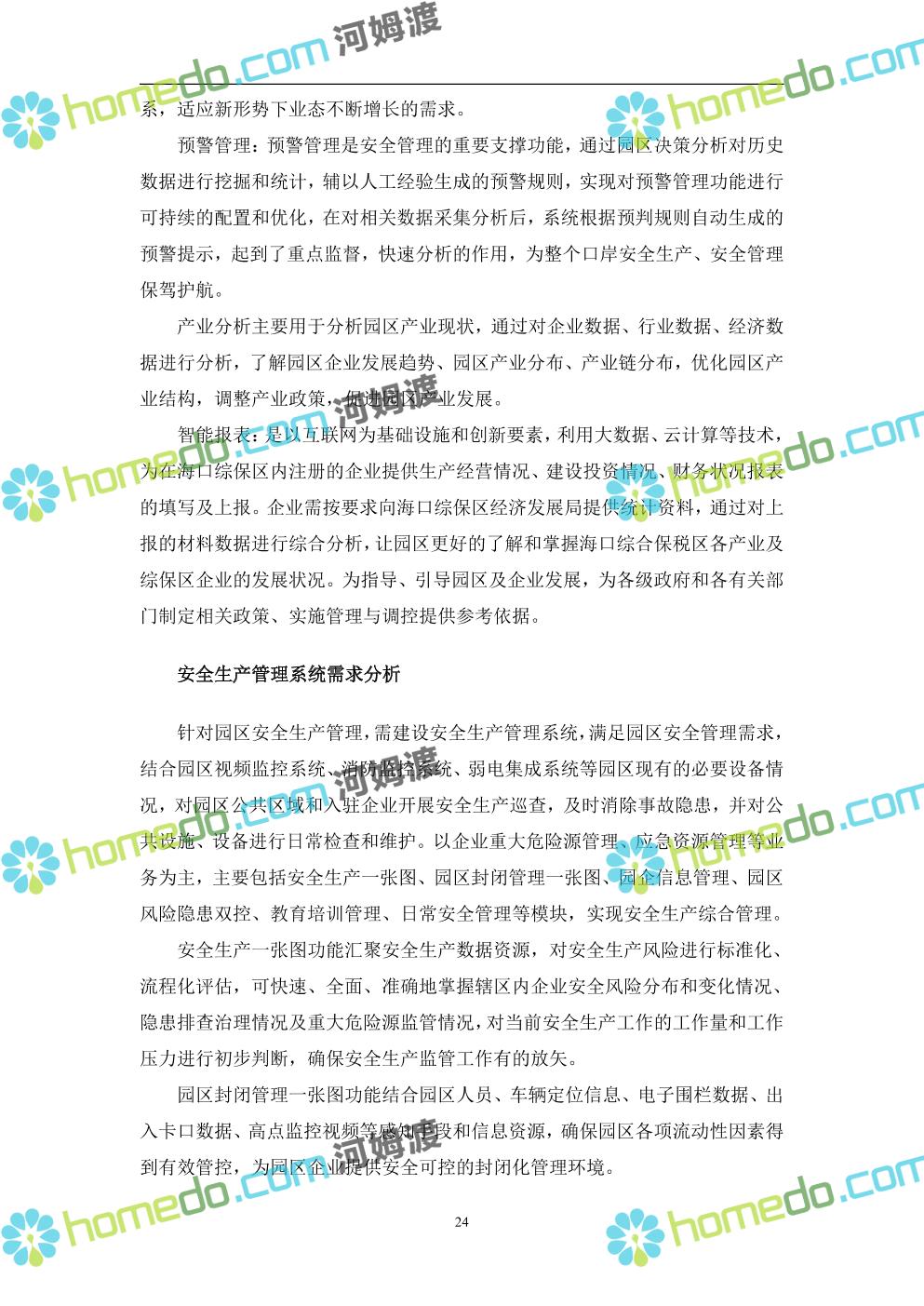 方案简介 本项目将以“1个方向、2个看齐、3个目标”服务六大产业建设海口综合保税区智慧园区: 1个方向:以“大连接”、”大平台”、”大数据”为核心,坚持综保区统筹规划、统筹布局、集约部署,自上而下构建体系优化、资源共享、功能强大、应用丰富、管理高效的智慧园区。 2个看齐:看齐试点建设全时空智慧园区;智慧赋能,看齐吸取上海洋山综保区成功经验,打造生态环境和营商环境双一流的智慧综保区。 3个目标:建设智慧监管,智慧协同海关等管理部门,优化营商环境、通关流程,完善设施建设,高效完成通关任务,实现对园区内企业管理,对接智慧海南“一人一码、一物一链、一企一账”实现海关对监管对象精准监管。