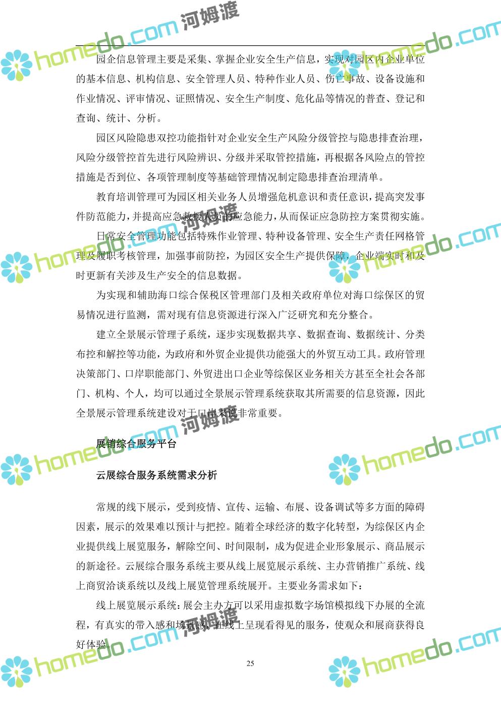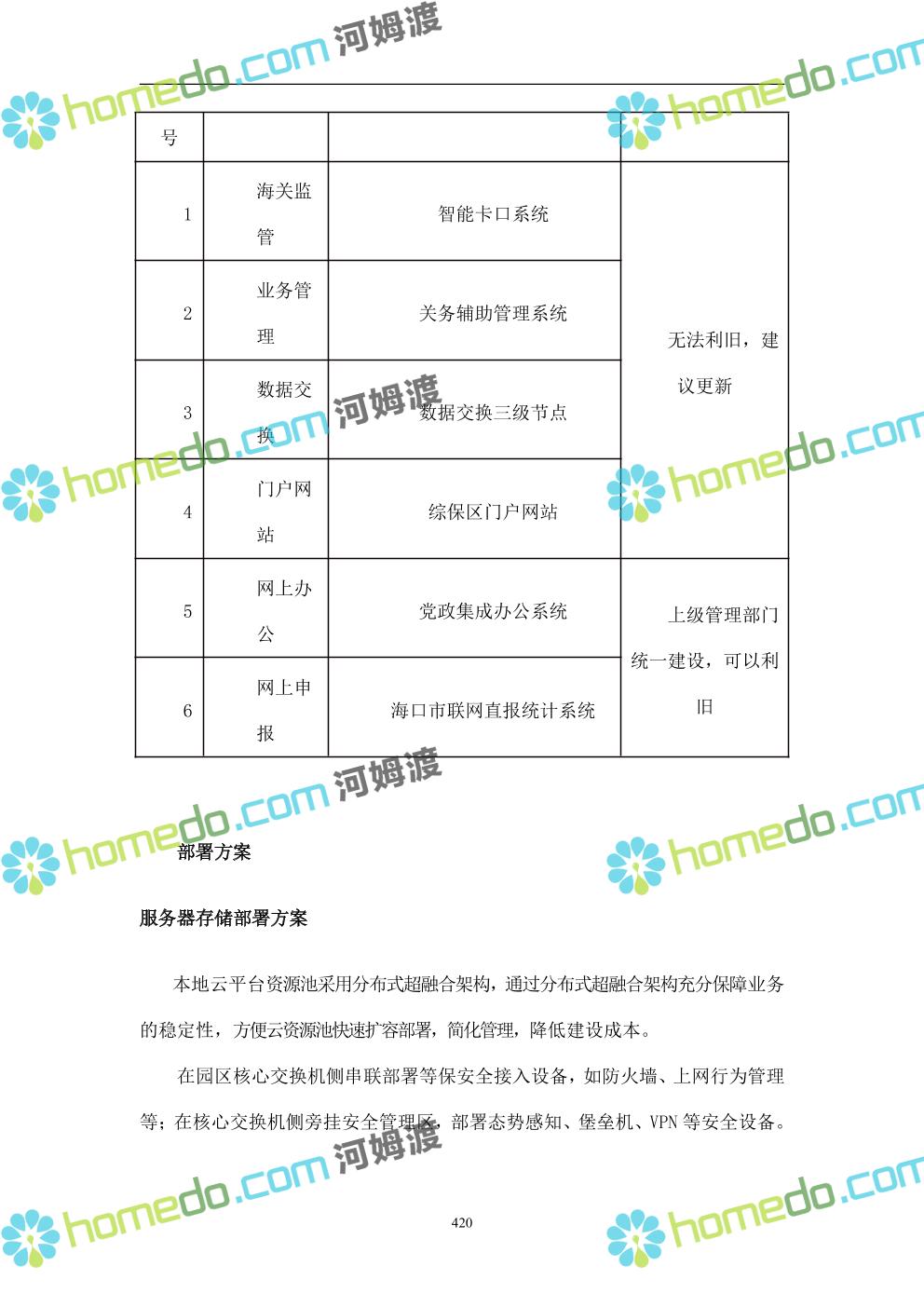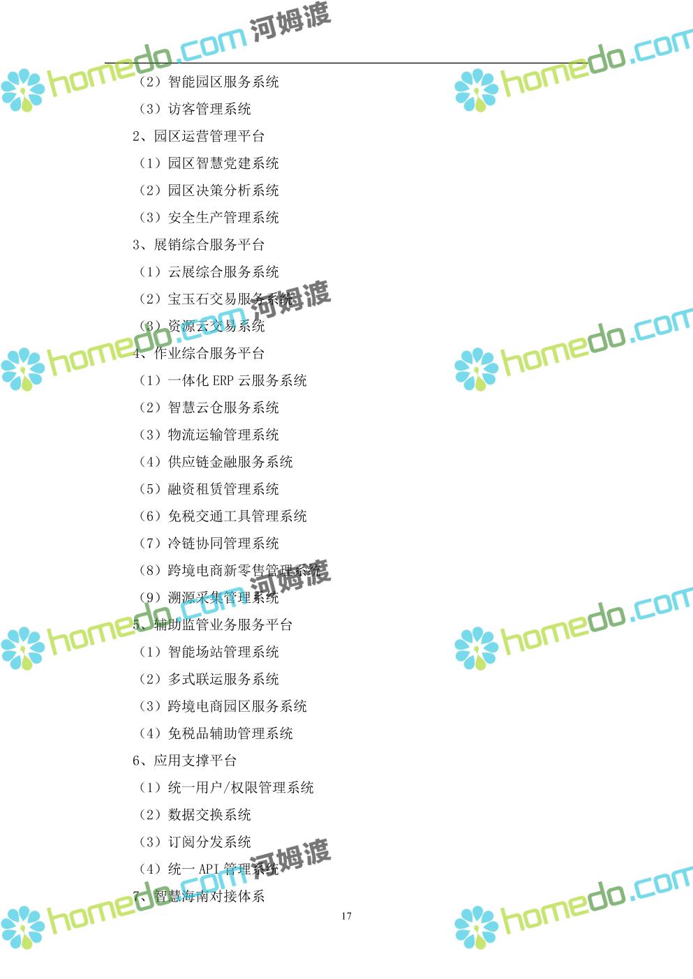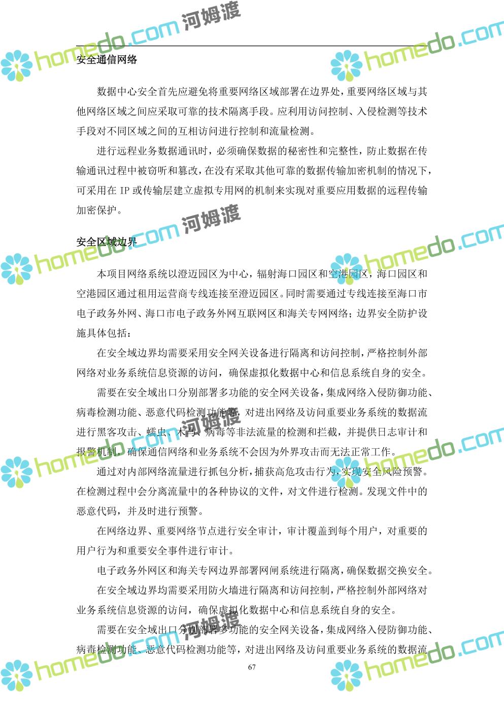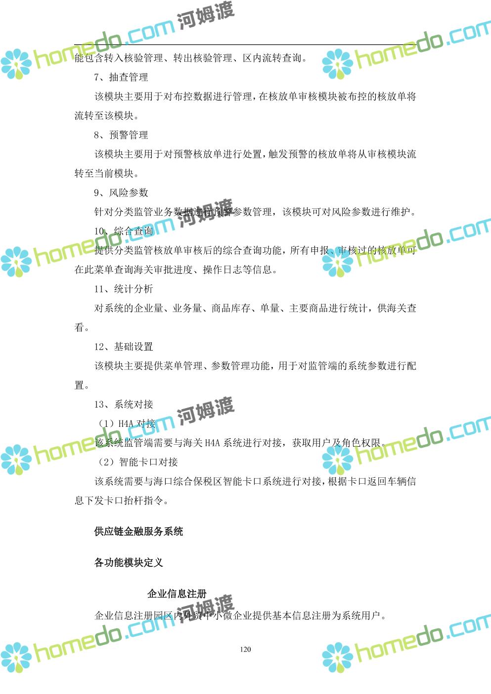 方案简介 本项目将以“1个方向、2个看齐、3个目标”服务六大产业建设海口综合保税区智慧园区: 1个方向:以“大连接”、”大平台”、”大数据”为核心,坚持综保区统筹规划、统筹布局、集约部署,自上而下构建体系优化、资源共享、功能强大、应用丰富、管理高效的智慧园区。 2个看齐:看齐试点建设全时空智慧园区;智慧赋能,看齐吸取上海洋山综保区成功经验,打造生态环境和营商环境双一流的智慧综保区。 3个目标:建设智慧监管,智慧协同海关等管理部门,优化营商环境、通关流程,完善设施建设,高效完成通关任务,实现对园区内企业管理,对接智慧海南“一人一码、一物一链、一企一账”实现海关对监管对象精准监管。
