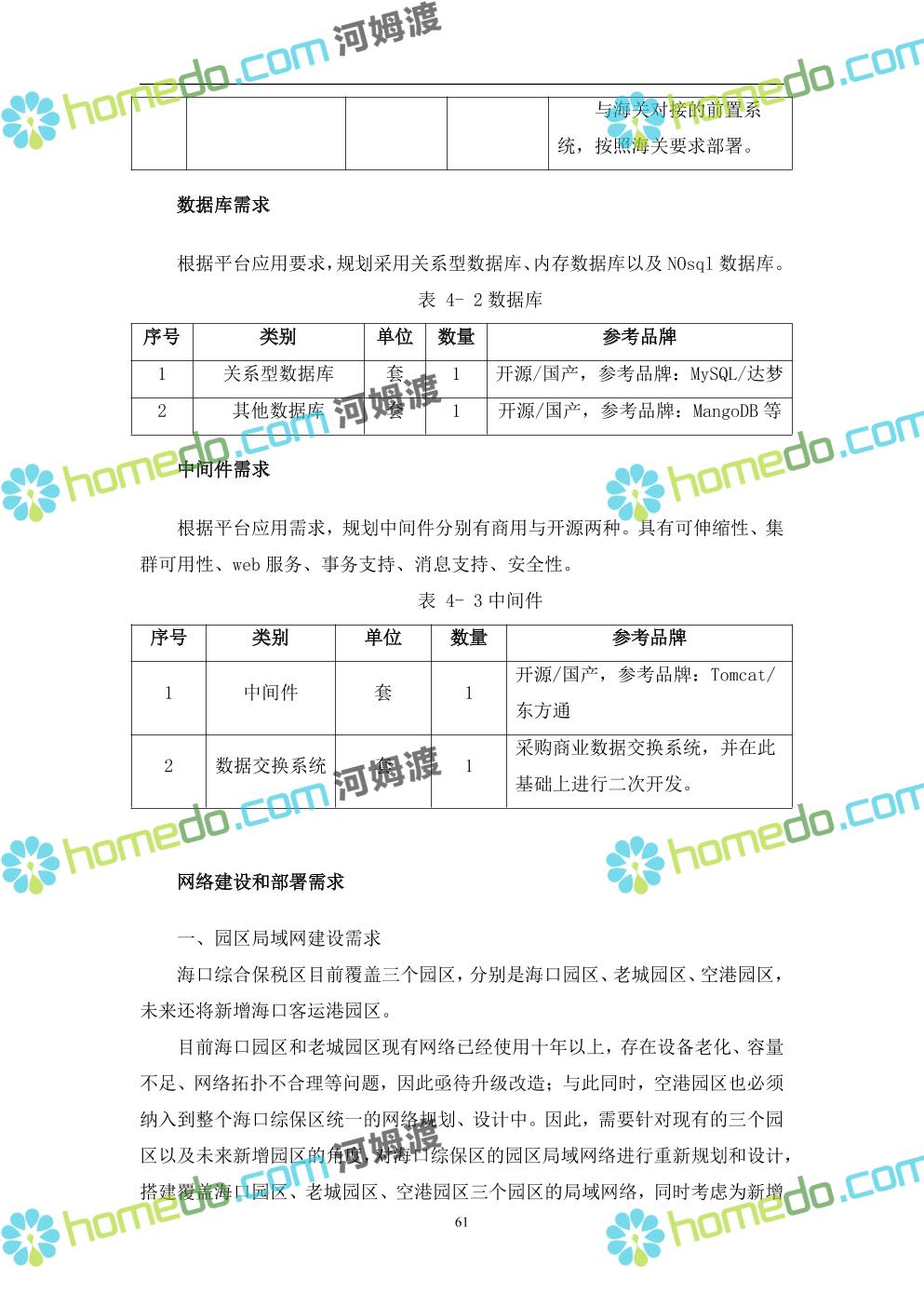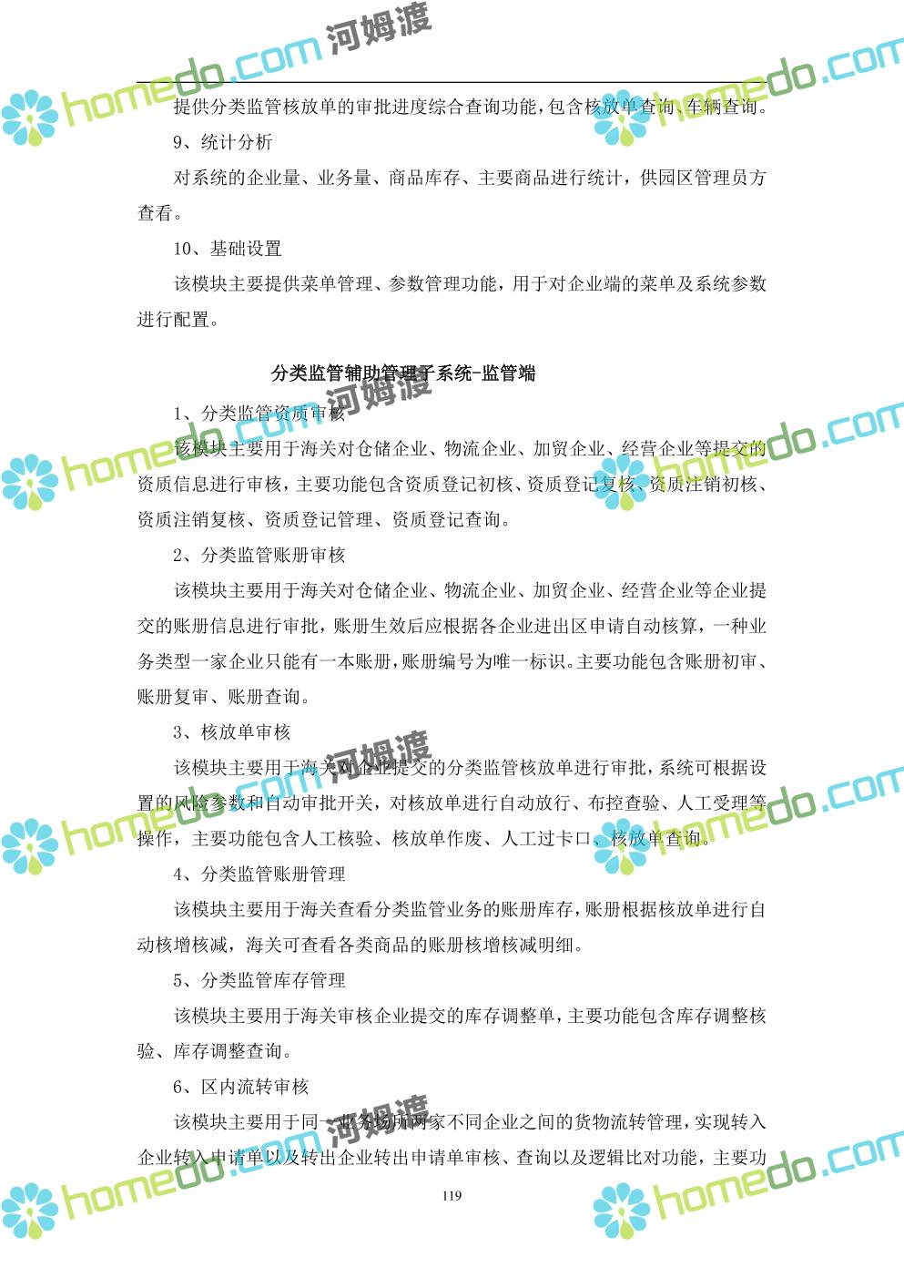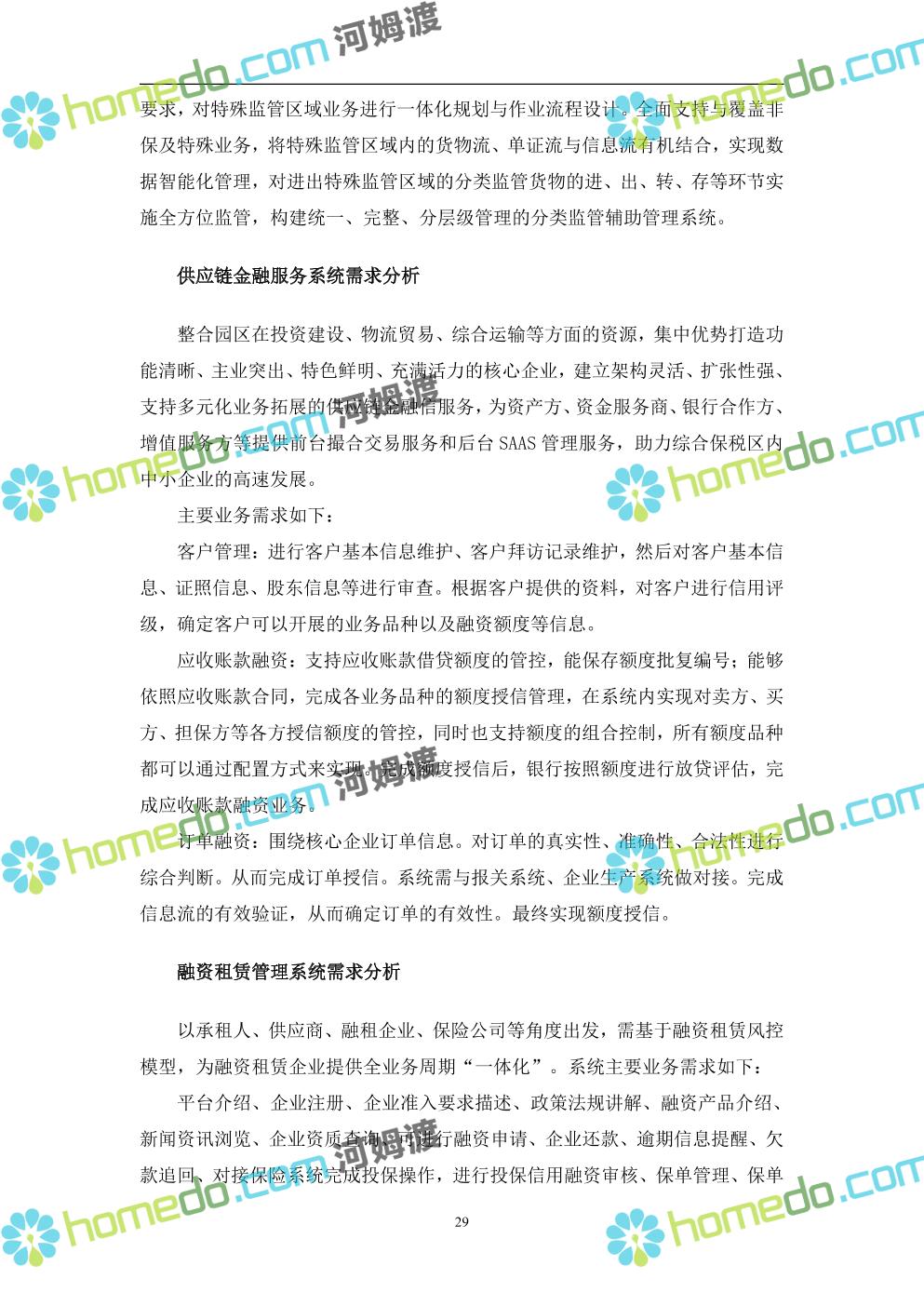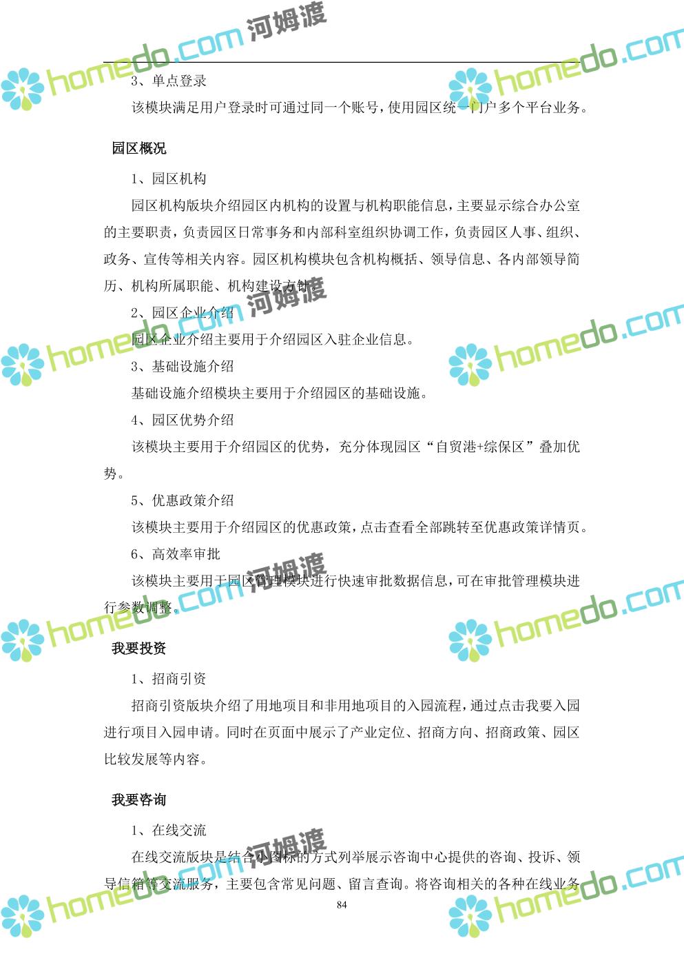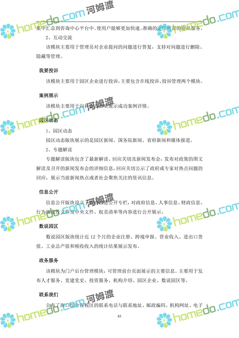 方案简介 本项目将以“1个方向、2个看齐、3个目标”服务六大产业建设海口综合保税区智慧园区: 1个方向:以“大连接”、”大平台”、”大数据”为核心,坚持综保区统筹规划、统筹布局、集约部署,自上而下构建体系优化、资源共享、功能强大、应用丰富、管理高效的智慧园区。 2个看齐:看齐试点建设全时空智慧园区;智慧赋能,看齐吸取上海洋山综保区成功经验,打造生态环境和营商环境双一流的智慧综保区。 3个目标:建设智慧监管,智慧协同海关等管理部门,优化营商环境、通关流程,完善设施建设,高效完成通关任务,实现对园区内企业管理,对接智慧海南“一人一码、一物一链、一企一账”实现海关对监管对象精准监管。