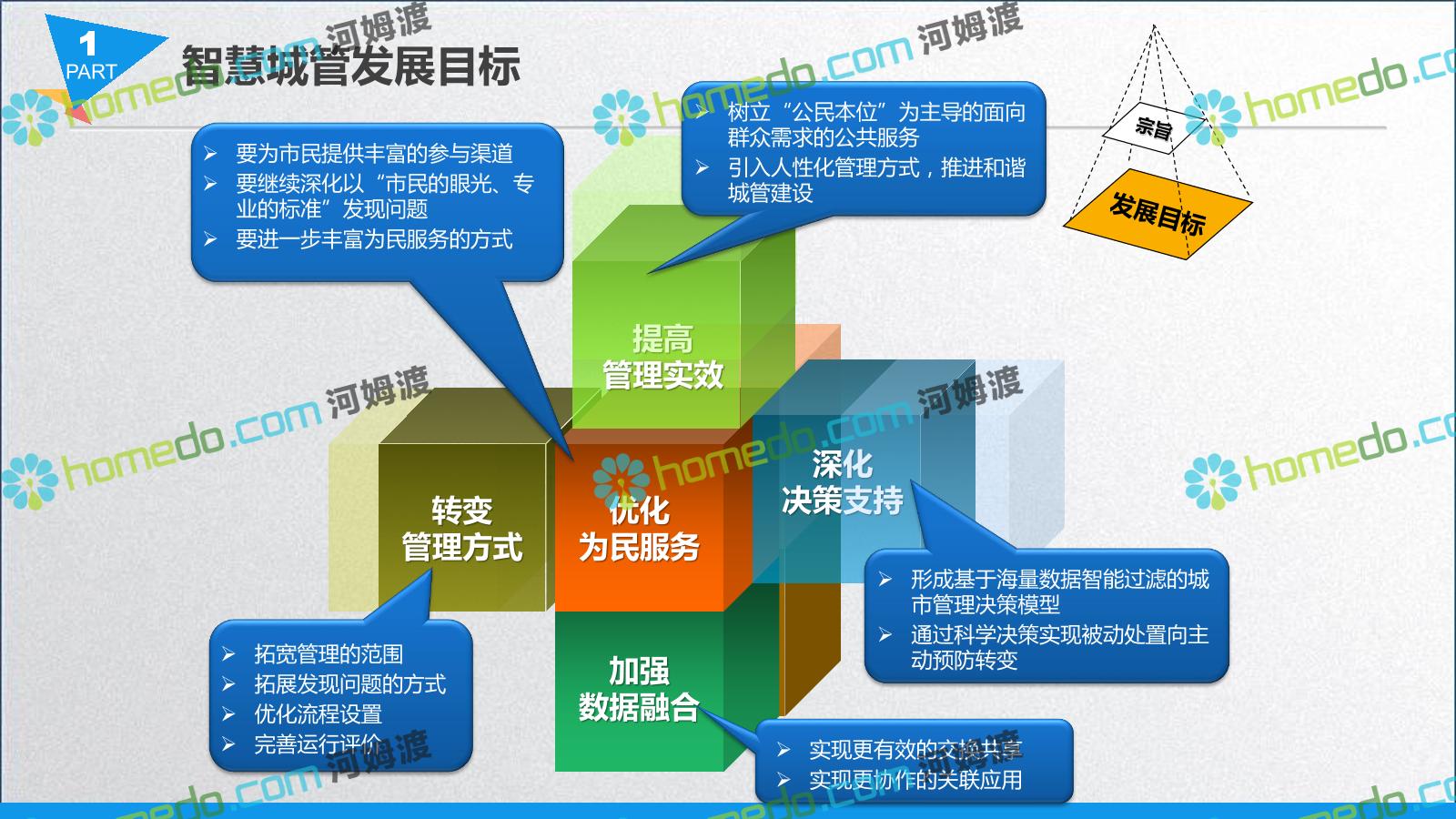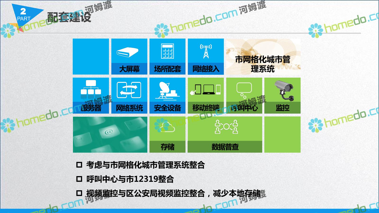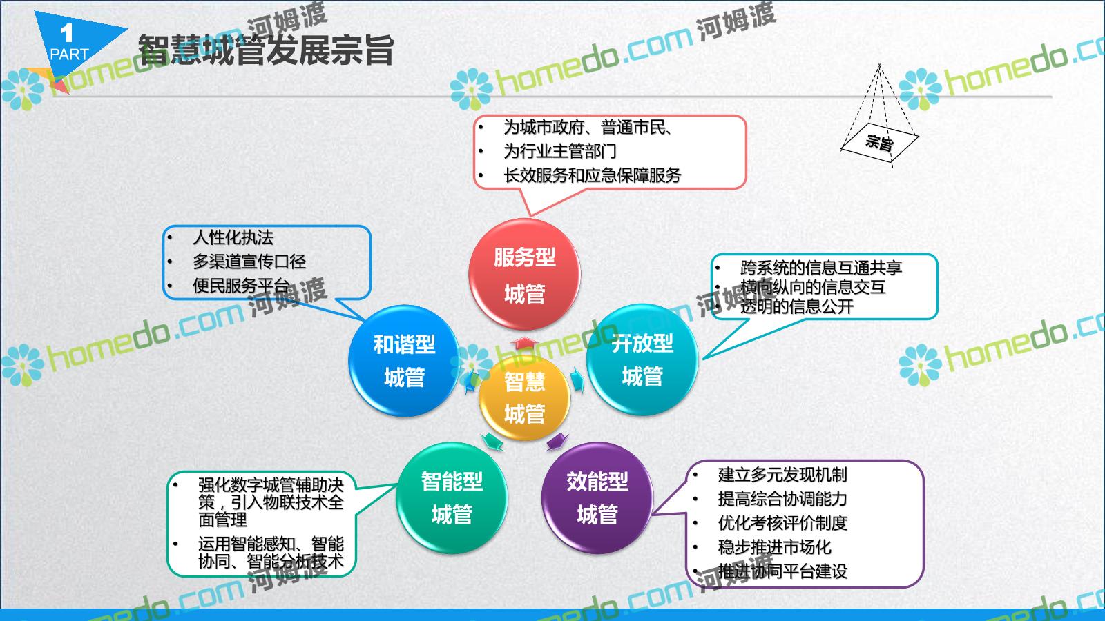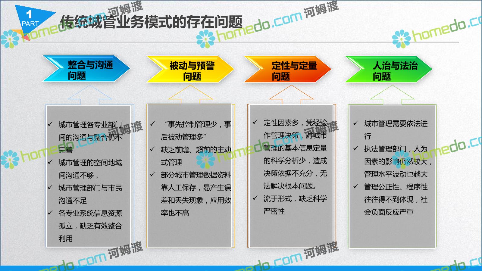 方案简介 智慧城管系统可将人员、车辆、案件、部件、事件、对讲机、单兵、无线移动终端、指挥车等业务流程中必要的组成部分,在一张图中进行显示,通过一张地图中用户可进行信息查询、定位、案件查看、GIS统计分析等功能,为各级职能部门、管理者提供最直观最有效的展示平台,从而准确的把握资源分布状况,实现资源合理调控与优化利用。