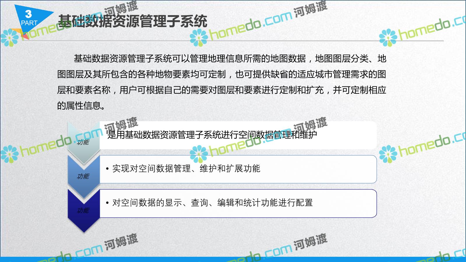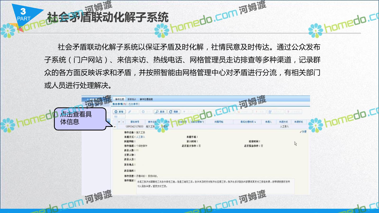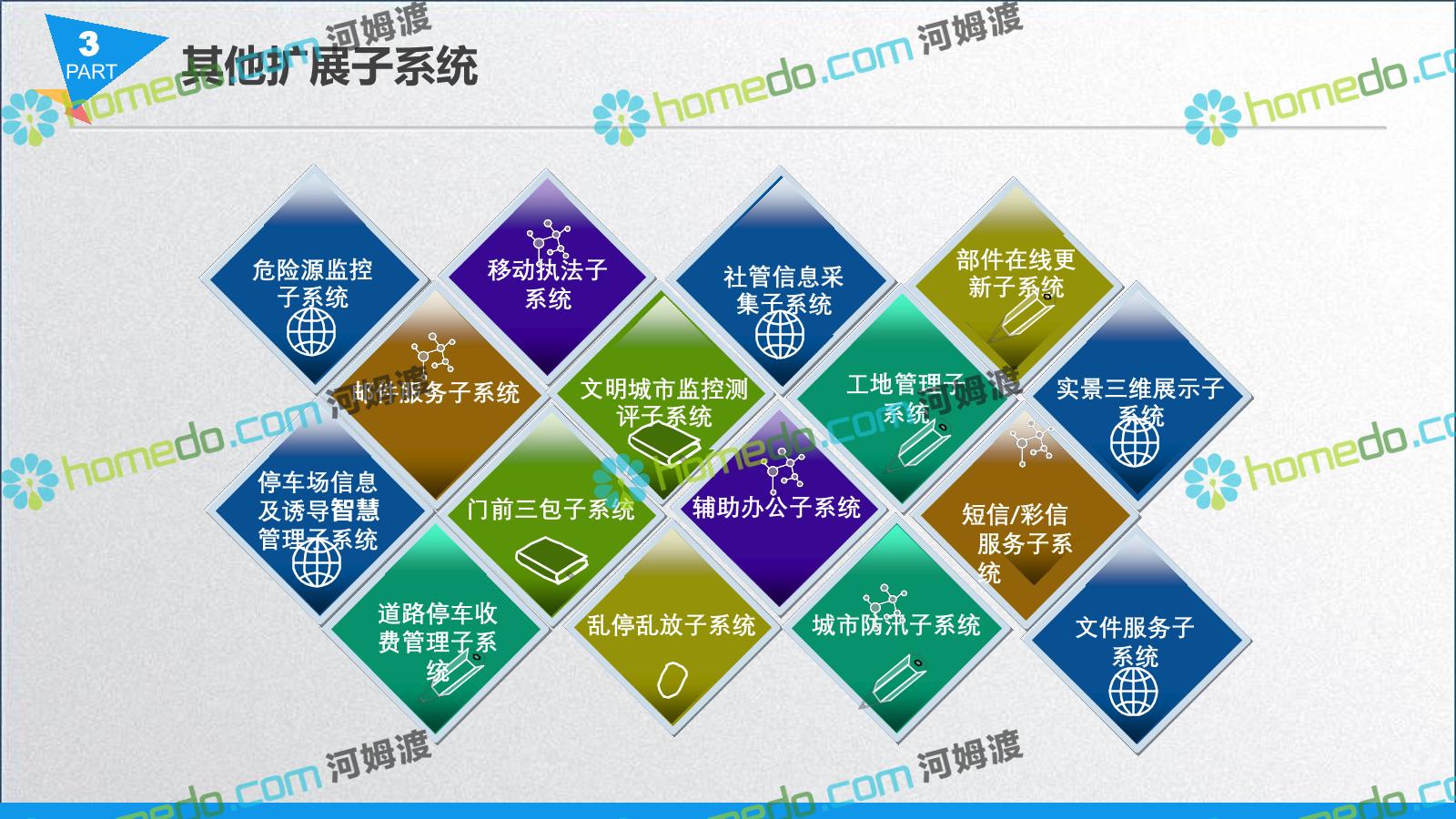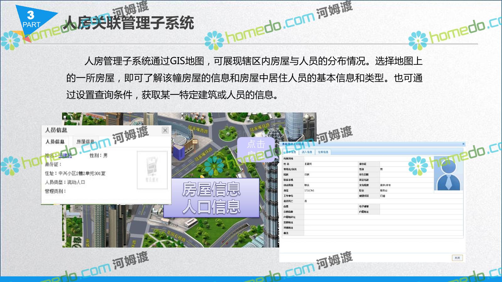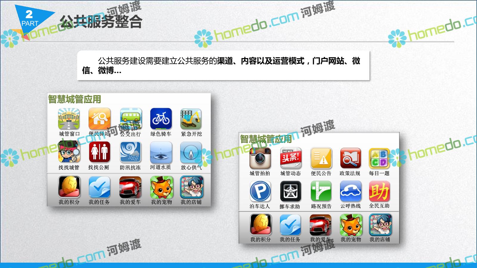 方案简介 智慧城管系统可将人员、车辆、案件、部件、事件、对讲机、单兵、无线移动终端、指挥车等业务流程中必要的组成部分,在一张图中进行显示,通过一张地图中用户可进行信息查询、定位、案件查看、GIS统计分析等功能,为各级职能部门、管理者提供最直观最有效的展示平台,从而准确的把握资源分布状况,实现资源合理调控与优化利用。