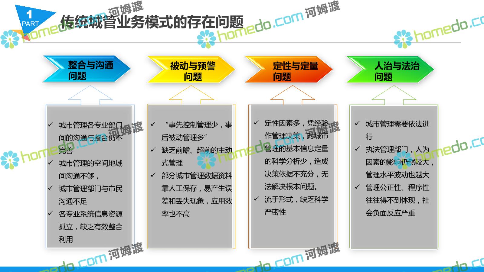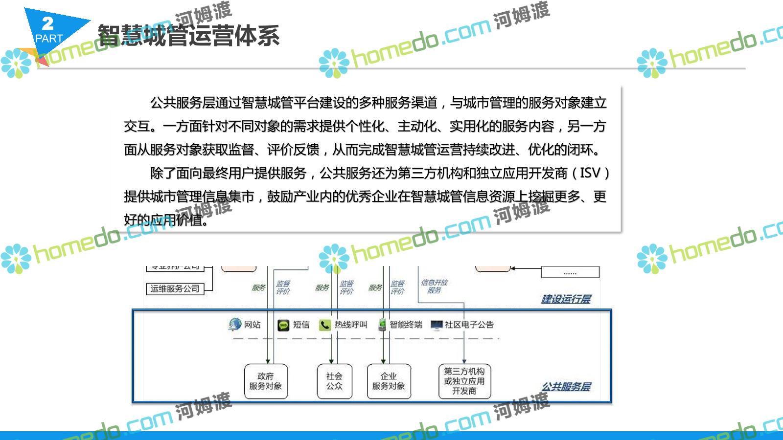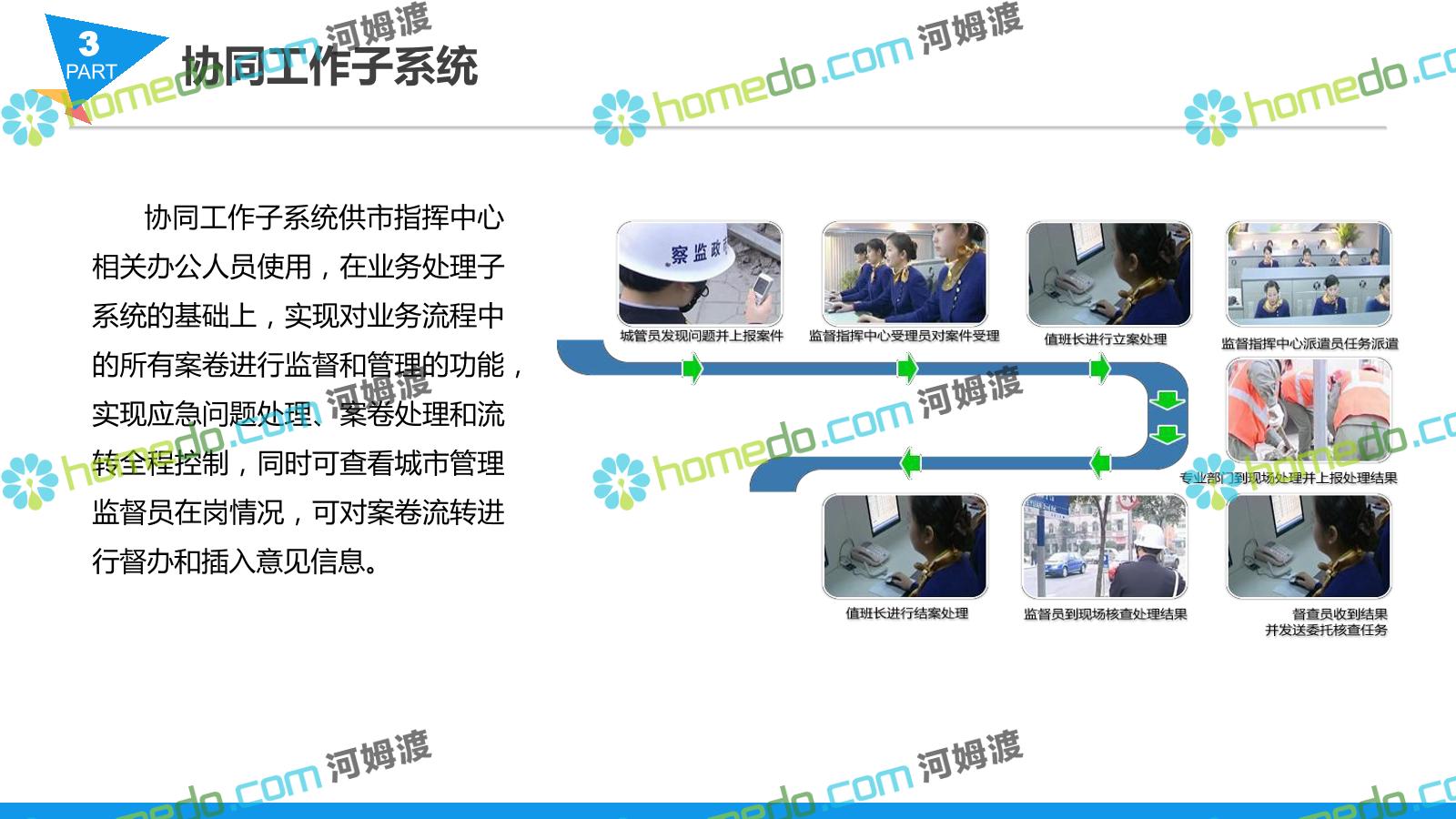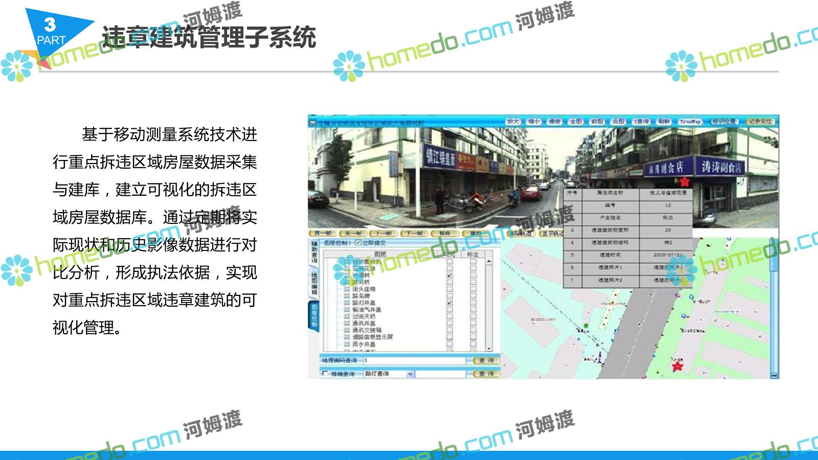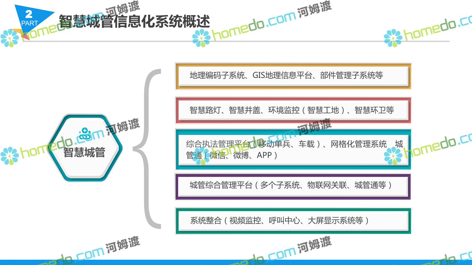 方案简介 智慧城管系统可将人员、车辆、案件、部件、事件、对讲机、单兵、无线移动终端、指挥车等业务流程中必要的组成部分,在一张图中进行显示,通过一张地图中用户可进行信息查询、定位、案件查看、GIS统计分析等功能,为各级职能部门、管理者提供最直观最有效的展示平台,从而准确的把握资源分布状况,实现资源合理调控与优化利用。