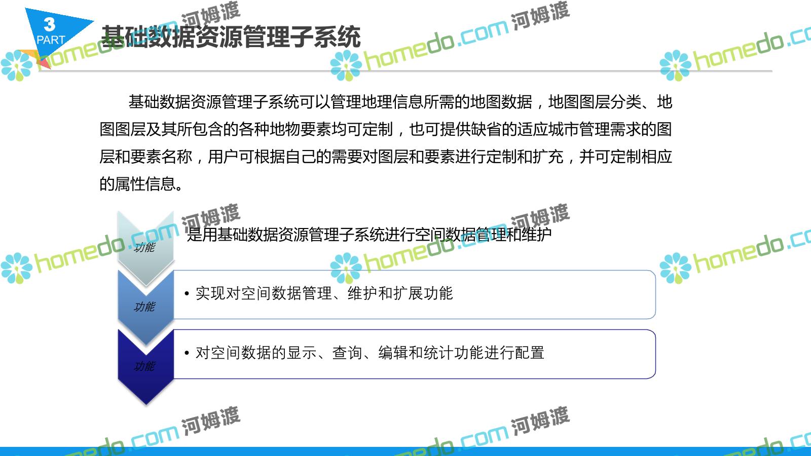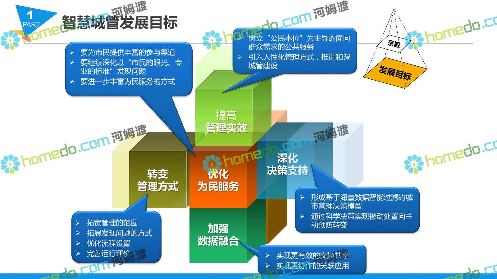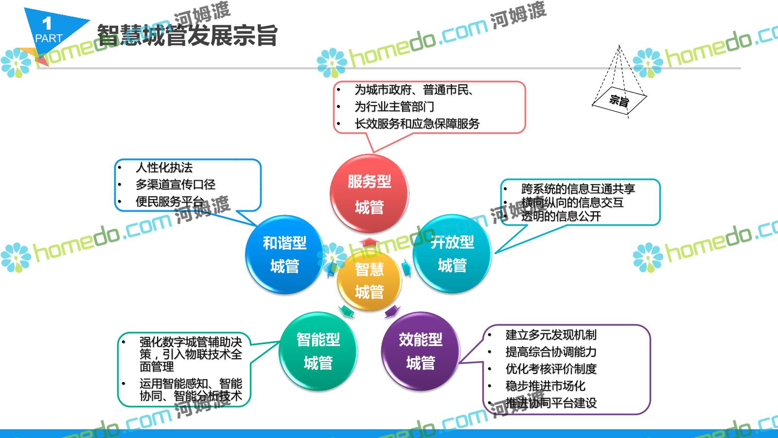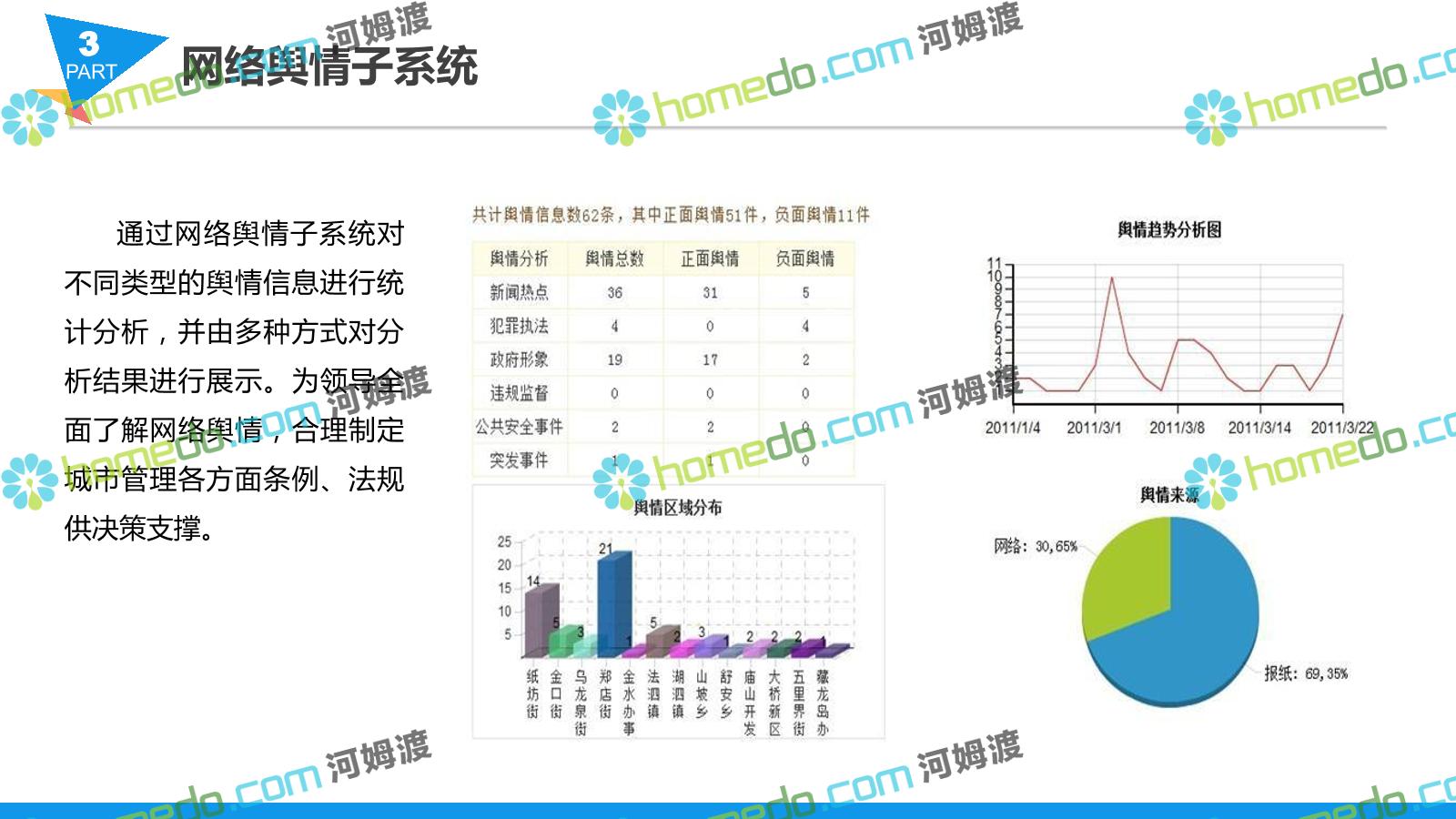 方案简介 智慧城管系统可将人员、车辆、案件、部件、事件、对讲机、单兵、无线移动终端、指挥车等业务流程中必要的组成部分,在一张图中进行显示,通过一张地图中用户可进行信息查询、定位、案件查看、GIS统计分析等功能,为各级职能部门、管理者提供最直观最有效的展示平台,从而准确的把握资源分布状况,实现资源合理调控与优化利用。