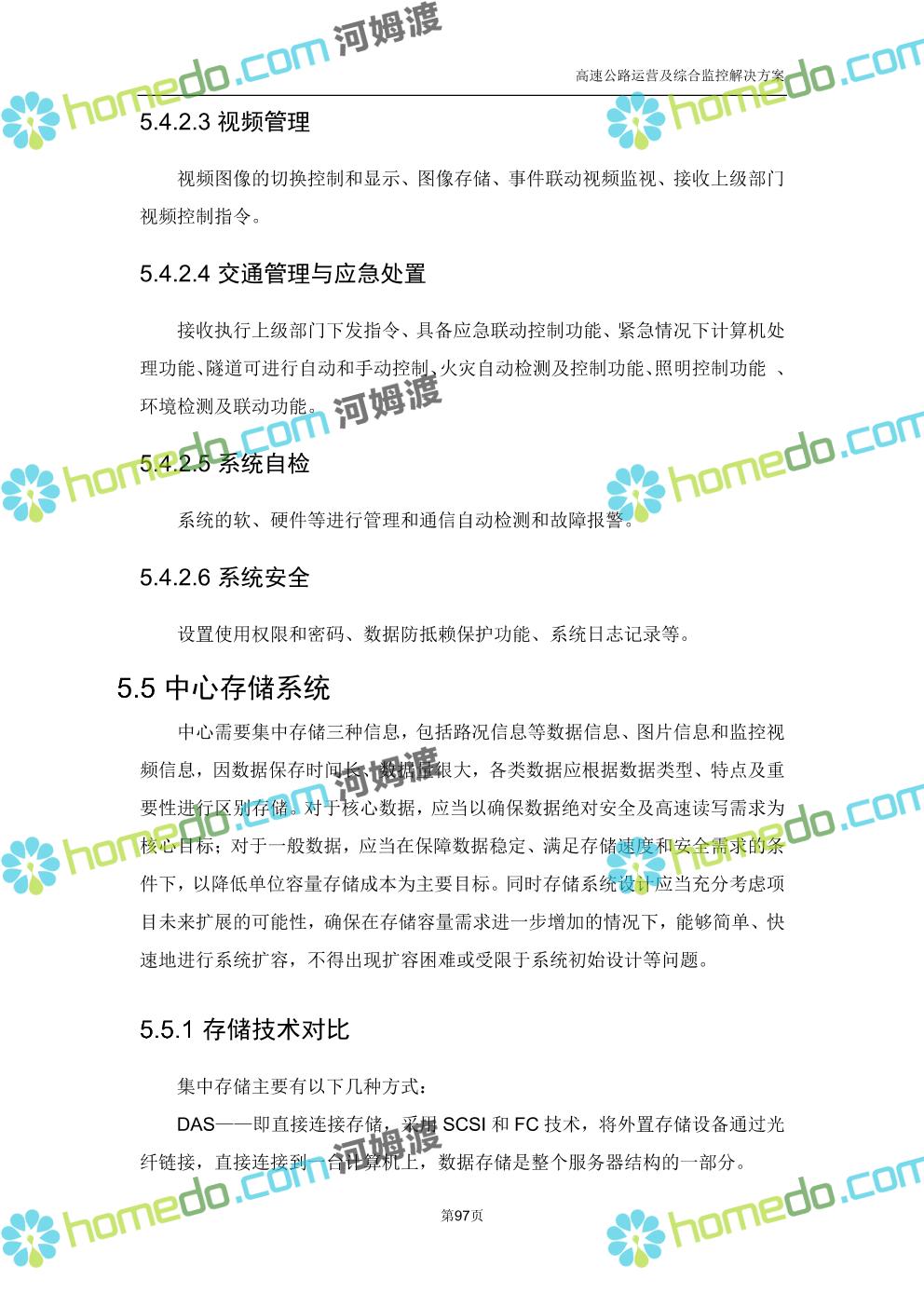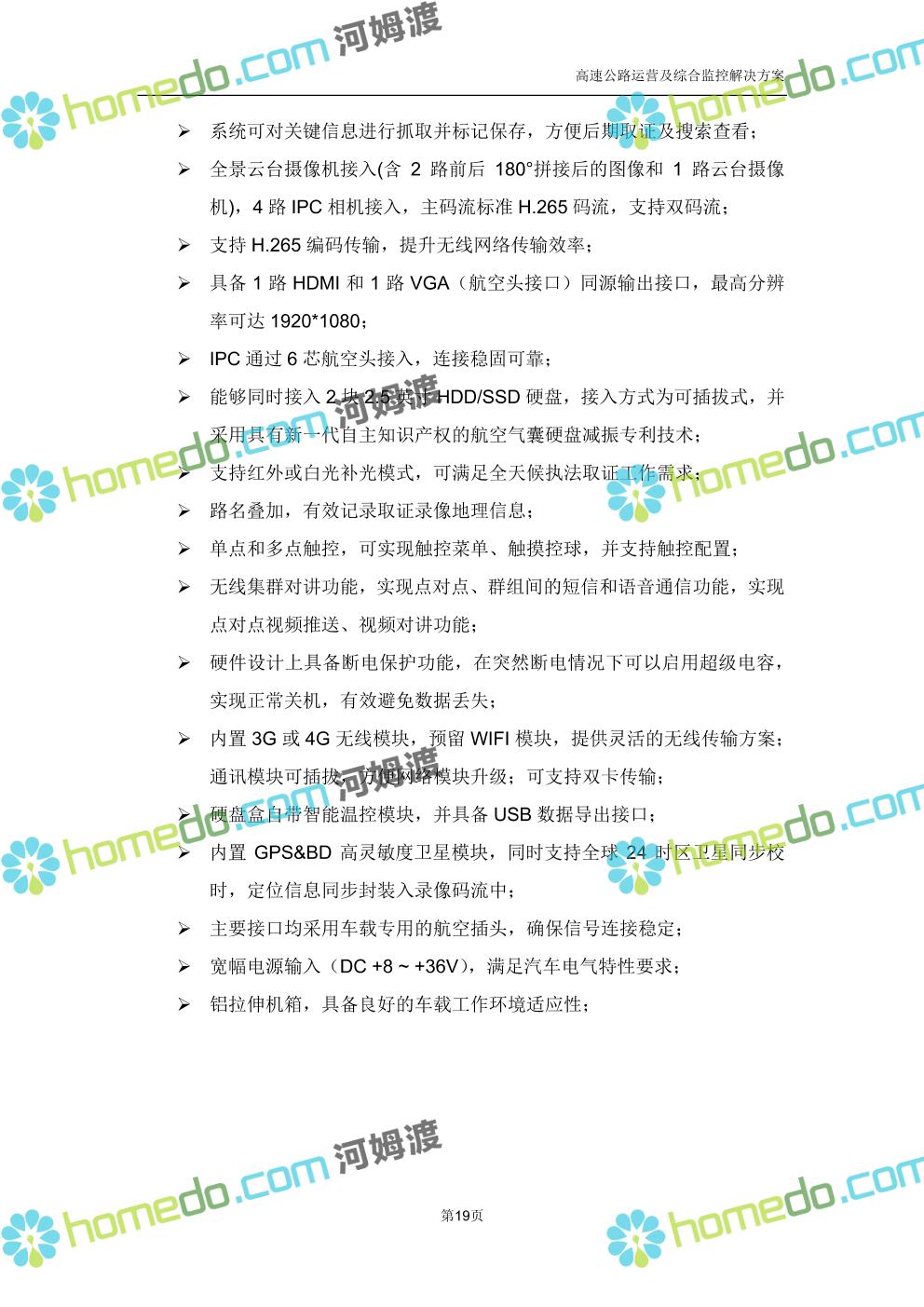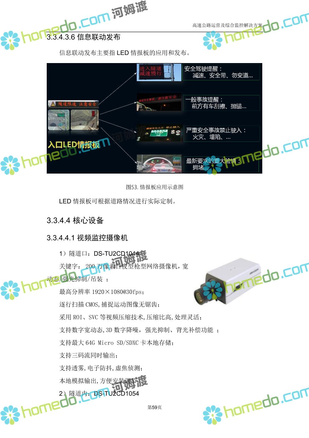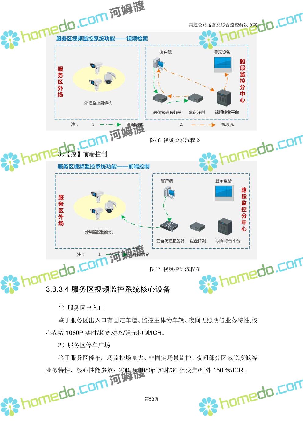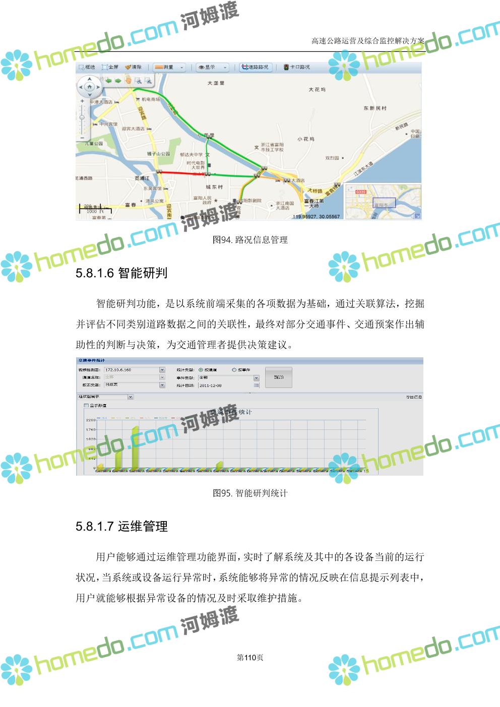 方案简介 高速公路运营可视化综合监控系统由高速公路省级监控中心、路段监控分中心、基础监控单元三级管理架构构成。一级监控中心担负系统数据存储、统计、计算、报表以及各种管控指令的下达;二级监控中心负责对采集到的数据进行分类包装和预处理,并传送至一级监控中心,当一级监控中心宕机或者故障时,二级监控中心行使一级监控中心功能,临时处理一些重要的业务和数据;三级监控中心负责检测匝道口、路面、服务区和收费口的各种数据。