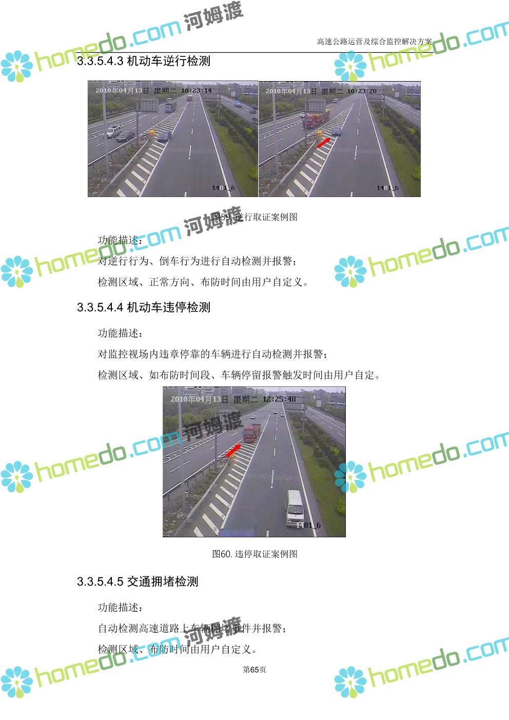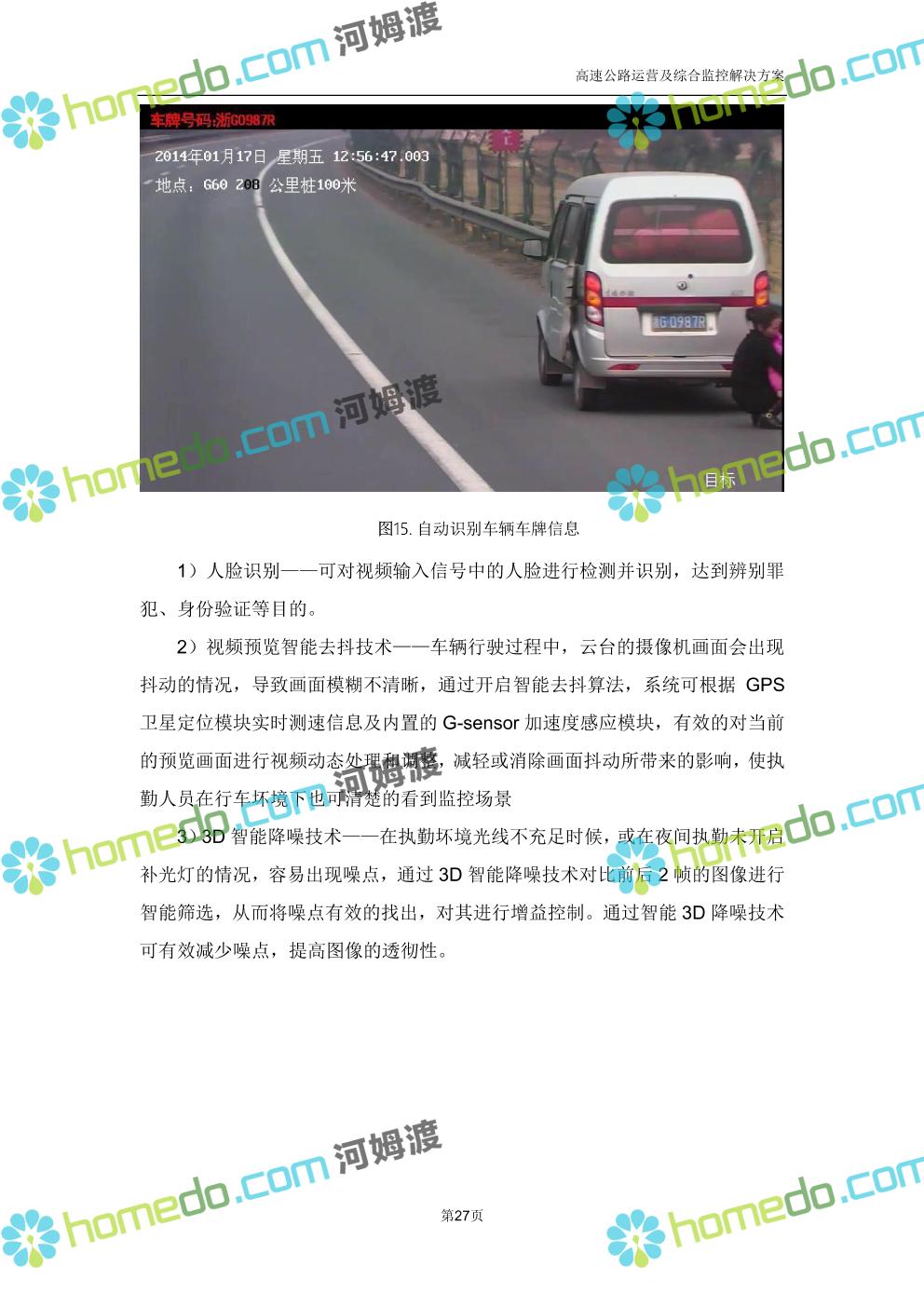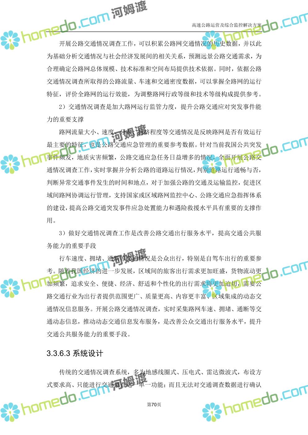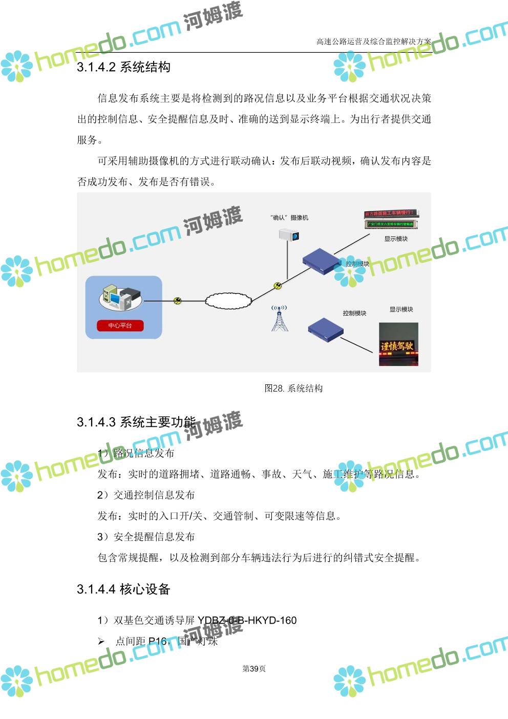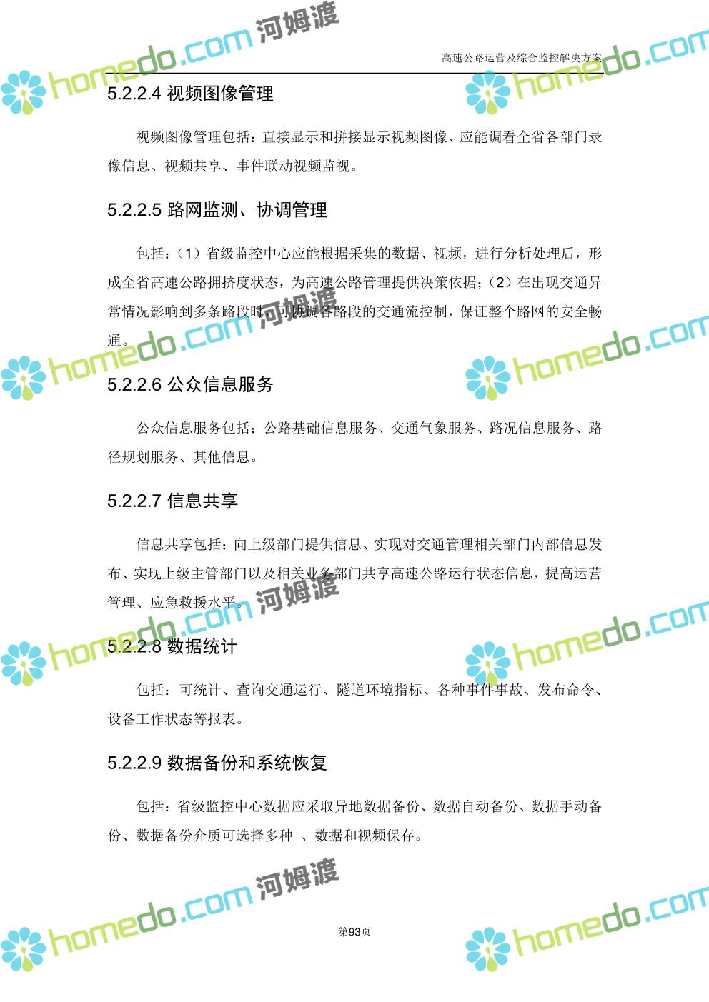 方案简介 高速公路运营可视化综合监控系统由高速公路省级监控中心、路段监控分中心、基础监控单元三级管理架构构成。一级监控中心担负系统数据存储、统计、计算、报表以及各种管控指令的下达;二级监控中心负责对采集到的数据进行分类包装和预处理,并传送至一级监控中心,当一级监控中心宕机或者故障时,二级监控中心行使一级监控中心功能,临时处理一些重要的业务和数据;三级监控中心负责检测匝道口、路面、服务区和收费口的各种数据。