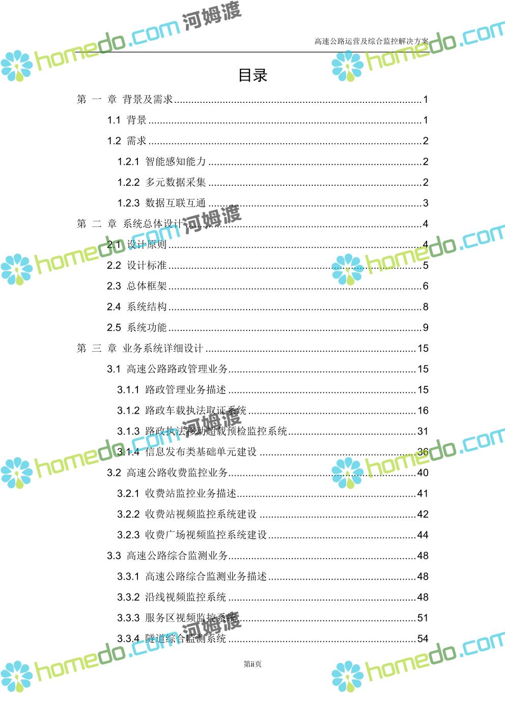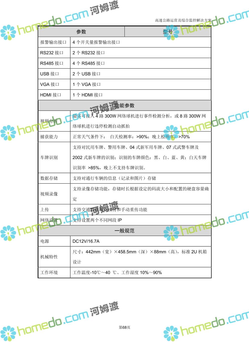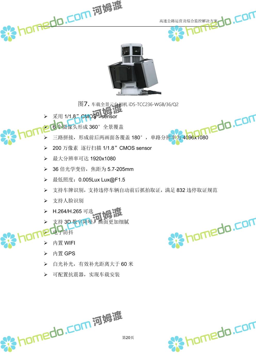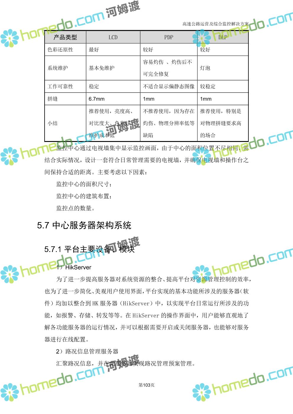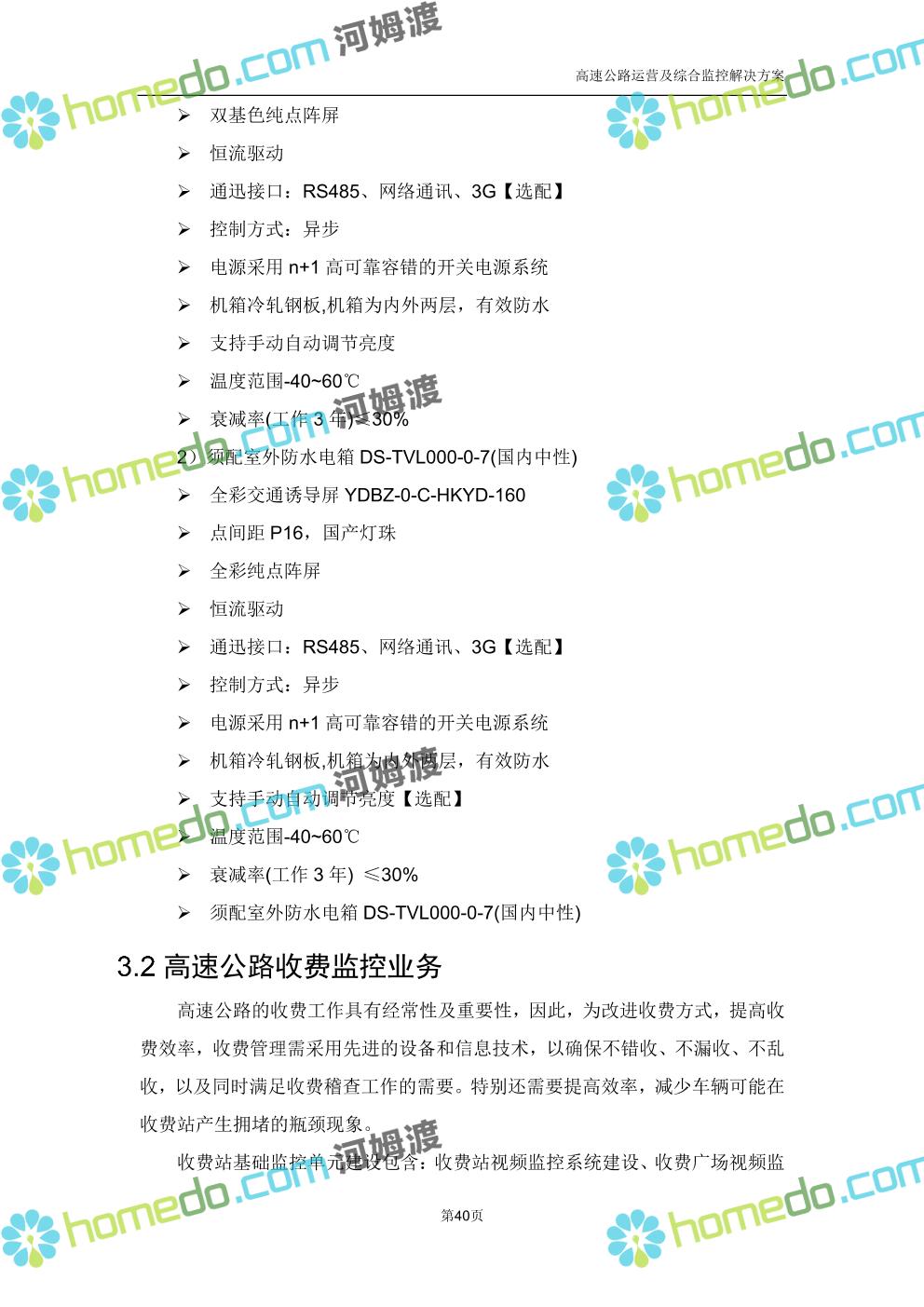 方案简介 高速公路运营可视化综合监控系统由高速公路省级监控中心、路段监控分中心、基础监控单元三级管理架构构成。一级监控中心担负系统数据存储、统计、计算、报表以及各种管控指令的下达;二级监控中心负责对采集到的数据进行分类包装和预处理,并传送至一级监控中心,当一级监控中心宕机或者故障时,二级监控中心行使一级监控中心功能,临时处理一些重要的业务和数据;三级监控中心负责检测匝道口、路面、服务区和收费口的各种数据。