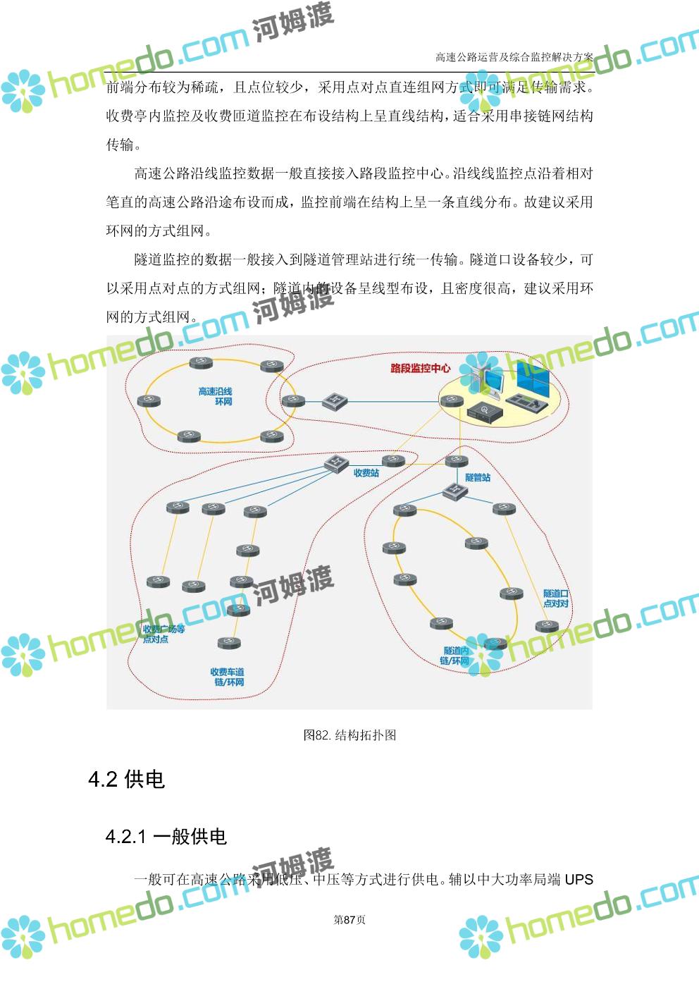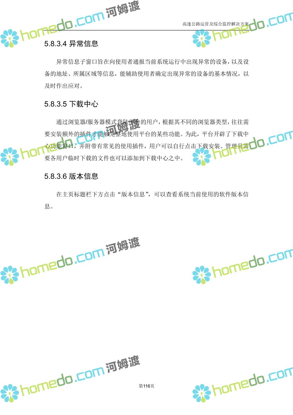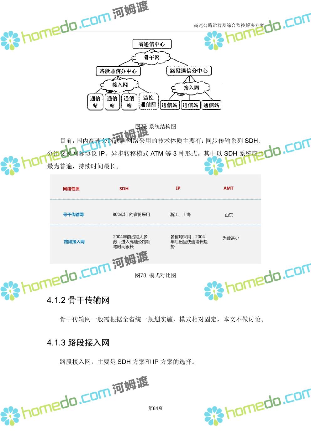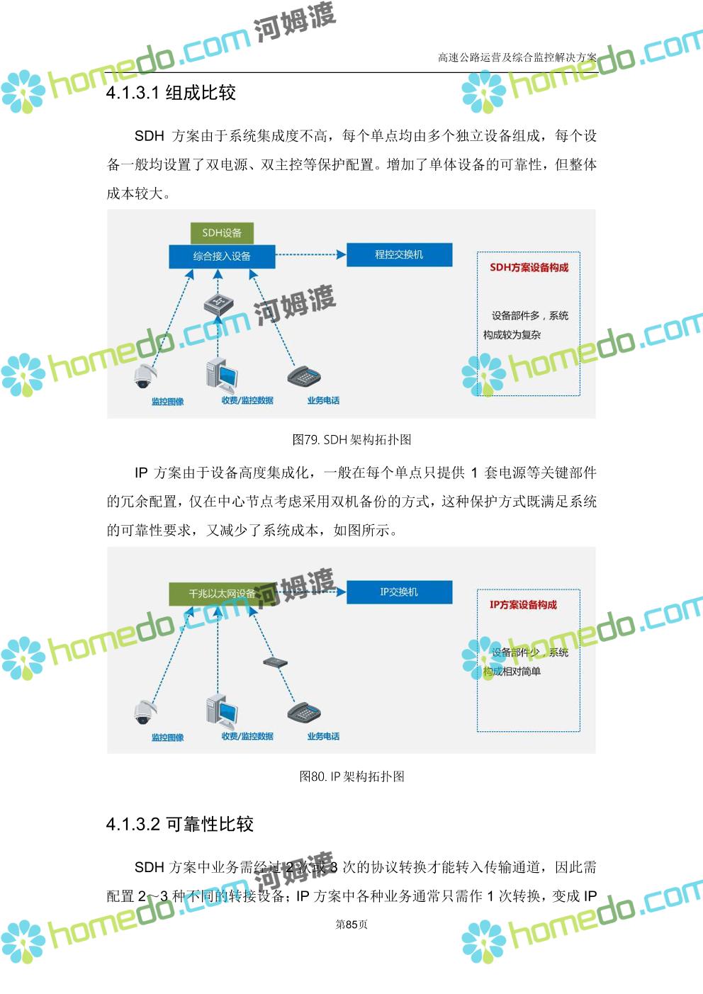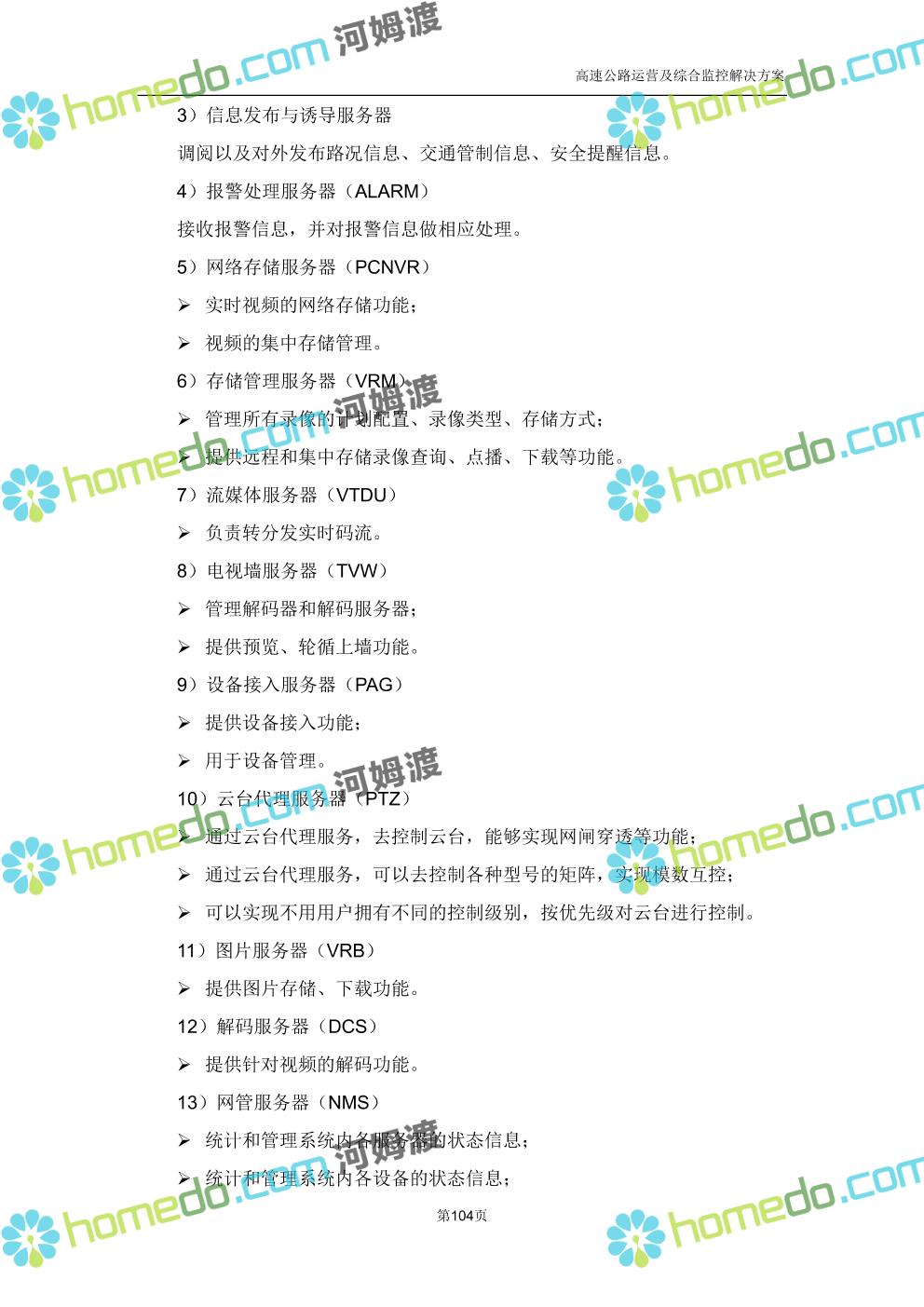 方案简介 高速公路运营可视化综合监控系统由高速公路省级监控中心、路段监控分中心、基础监控单元三级管理架构构成。一级监控中心担负系统数据存储、统计、计算、报表以及各种管控指令的下达;二级监控中心负责对采集到的数据进行分类包装和预处理,并传送至一级监控中心,当一级监控中心宕机或者故障时,二级监控中心行使一级监控中心功能,临时处理一些重要的业务和数据;三级监控中心负责检测匝道口、路面、服务区和收费口的各种数据。