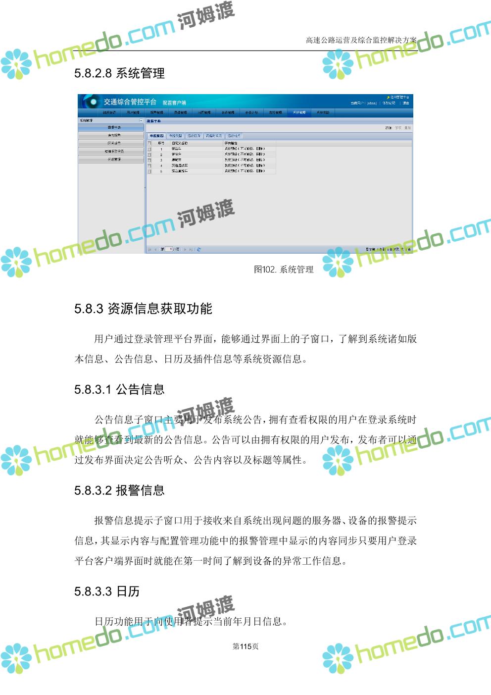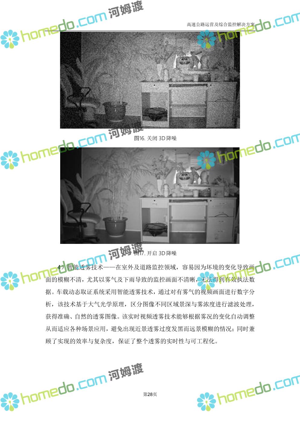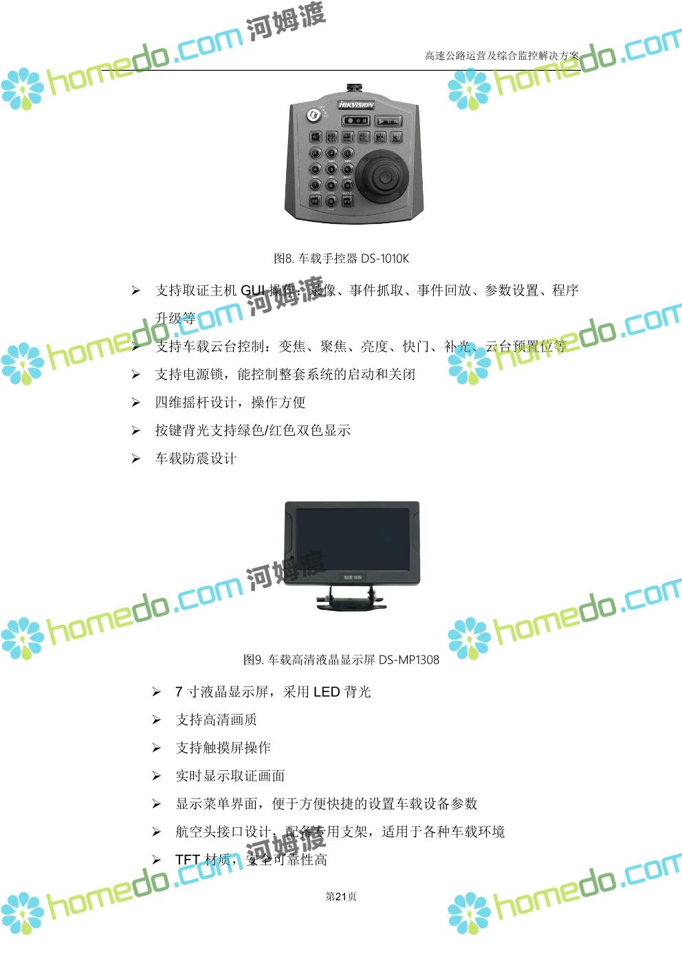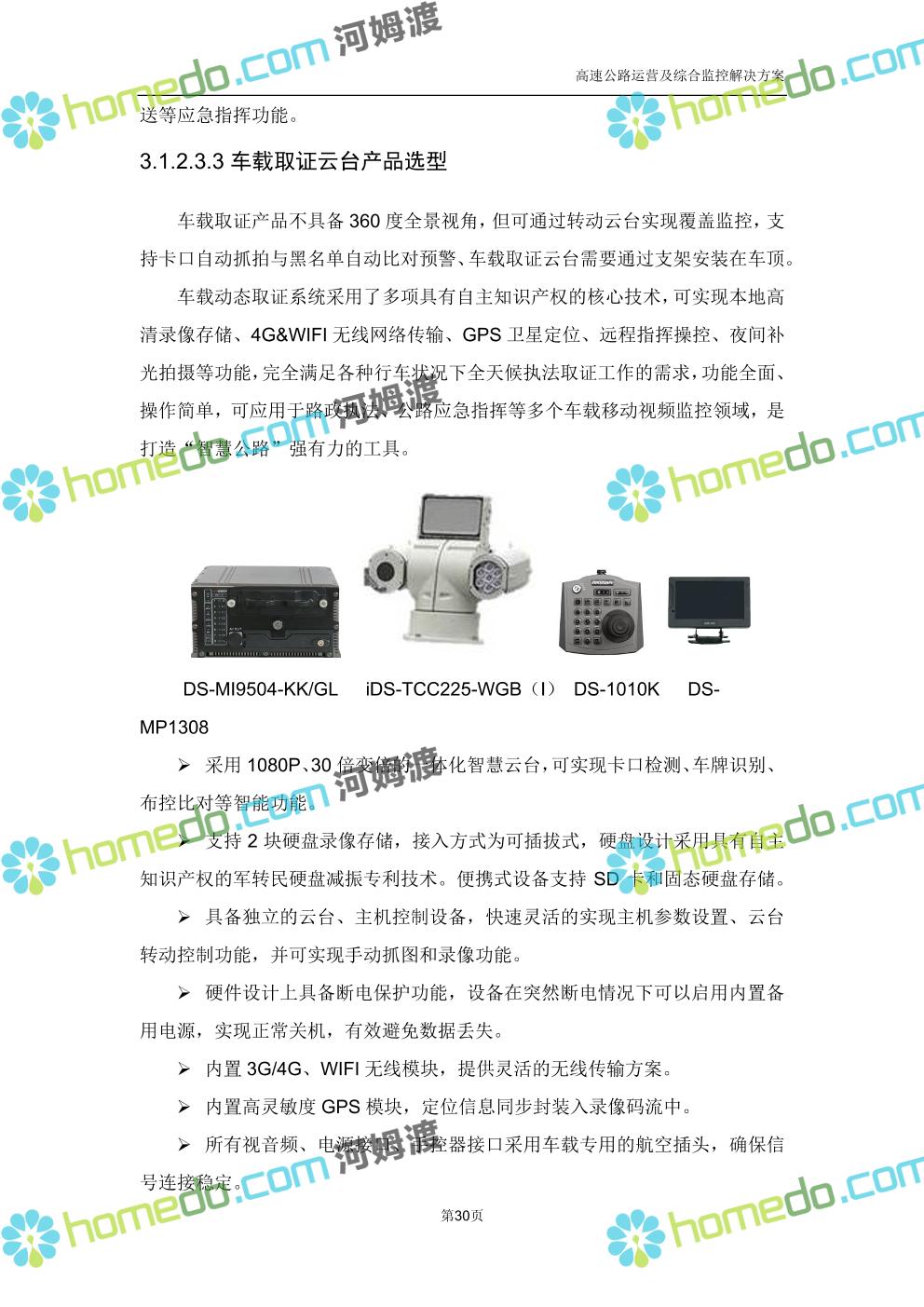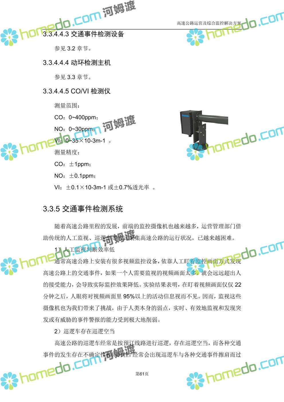 方案简介 高速公路运营可视化综合监控系统由高速公路省级监控中心、路段监控分中心、基础监控单元三级管理架构构成。一级监控中心担负系统数据存储、统计、计算、报表以及各种管控指令的下达;二级监控中心负责对采集到的数据进行分类包装和预处理,并传送至一级监控中心,当一级监控中心宕机或者故障时,二级监控中心行使一级监控中心功能,临时处理一些重要的业务和数据;三级监控中心负责检测匝道口、路面、服务区和收费口的各种数据。