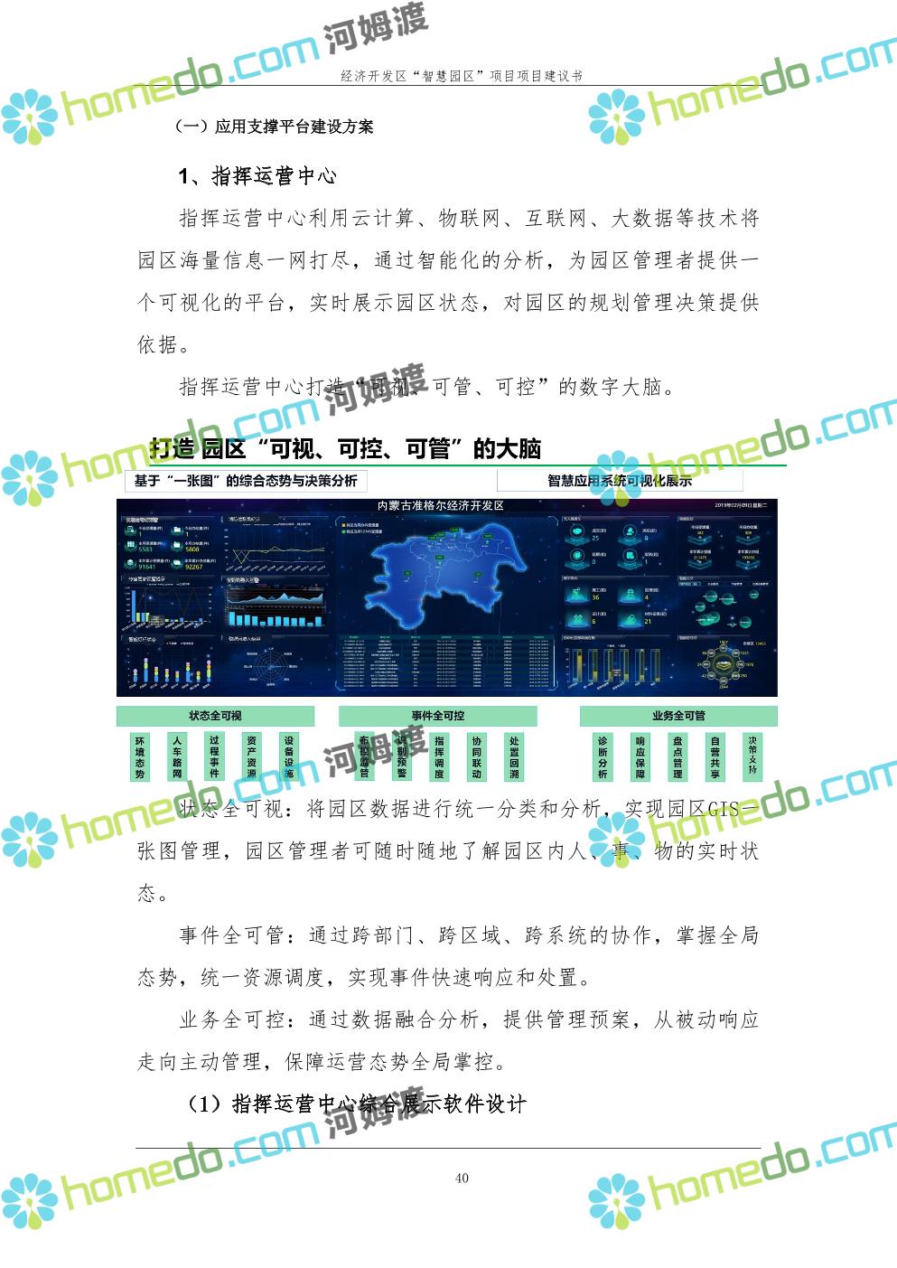 方案简介 本次准格尔经济开发区智慧园区的建设,以智慧决策大脑为核心,打造数据使能、基础设施两大基础平台,建设经济运行监测系统、智慧能耗监测系统、智慧安全监测系统、智慧安全应急系统、智慧环境监测系统、智慧党建系统、智慧招商系统、智慧管网系统、智慧城管系统、园区公共服务系统九大智慧应用系统。