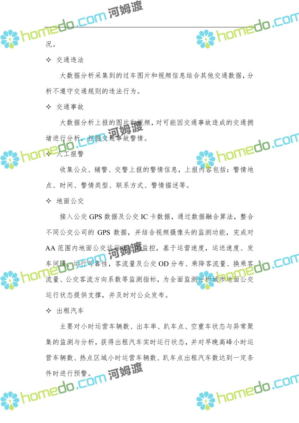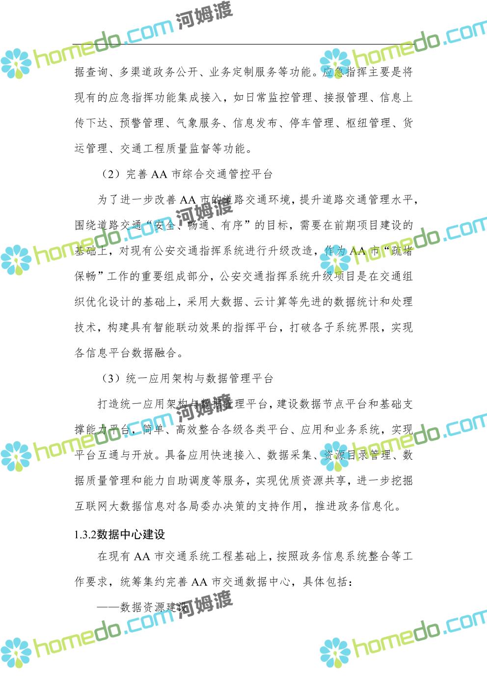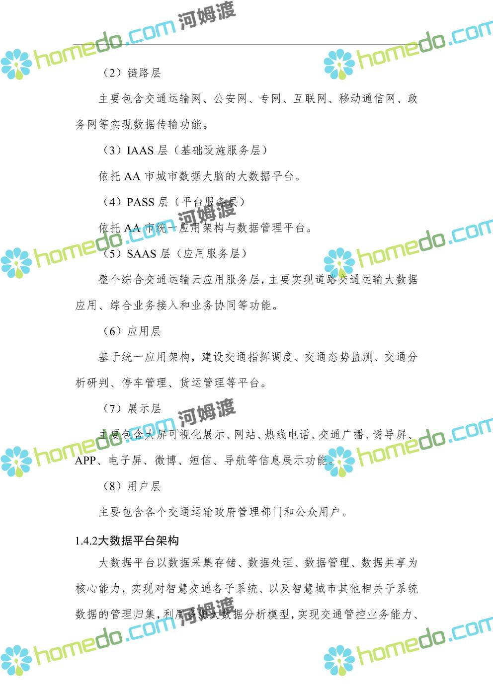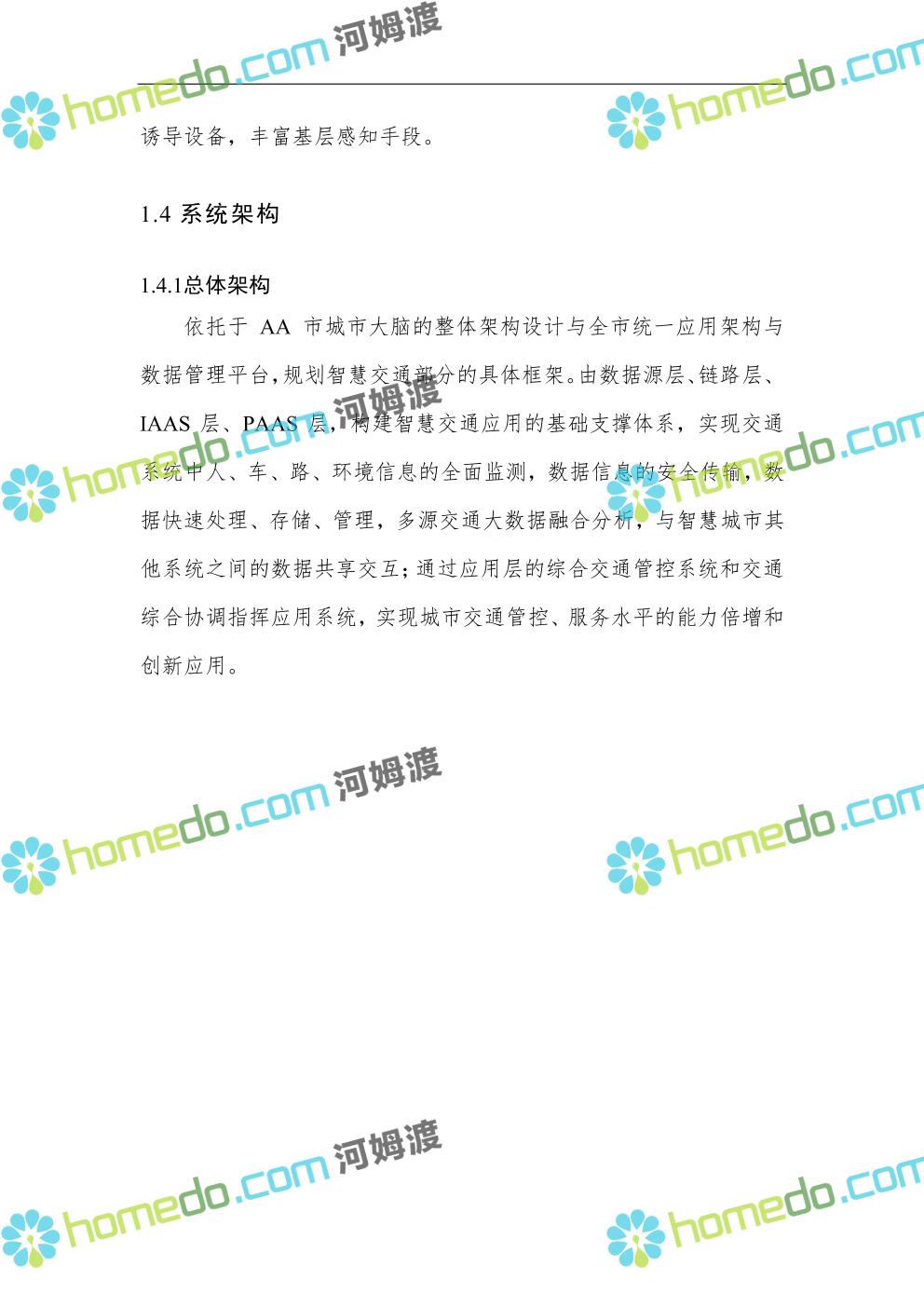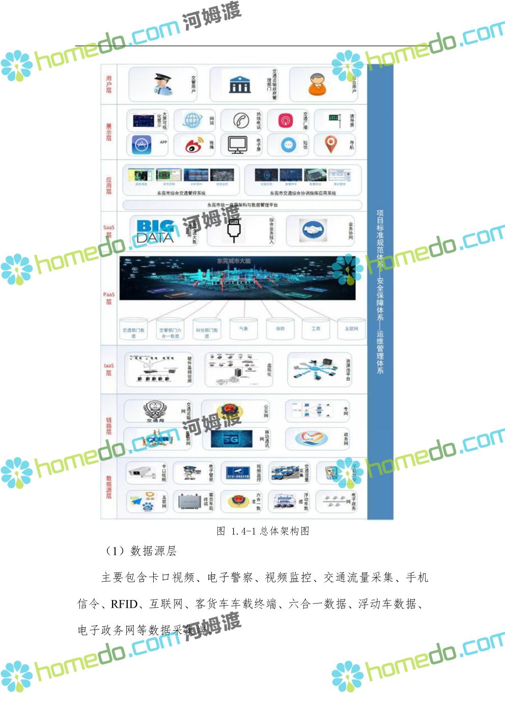 方案简介 依托于AA市城市大脑的整体架构设计与全市统一应用架构与数据管理平台,规划智慧交通部分的具体框架。由数据源层、链路层、IAAS层、PAAS层,构建智慧交通应用的基础支撑体系,实现交通系统中人、车、路、环境信息的全面监测,数据信息的安全传输,数据快速处理、存储、管理,多源交通大数据融合分析,与智慧城市其他系统之间的数据共享交互;通过应用层的综合交通管控系统和交通综合协调指挥应用系统,实现城市交通管控、服务水平的能力倍增和创新应用。