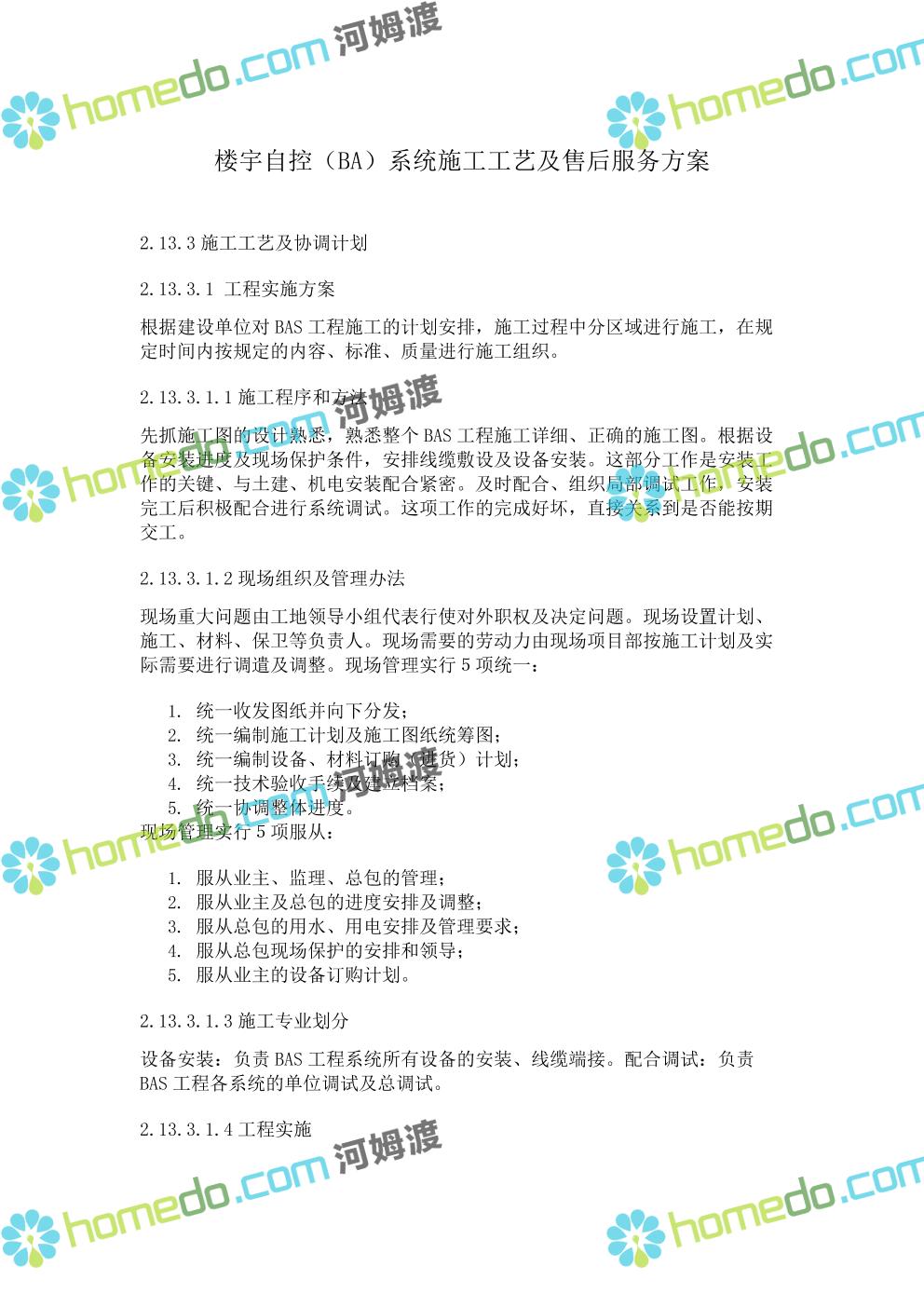 方案简介 楼宇自控BA系统施工工艺及售后服务方案