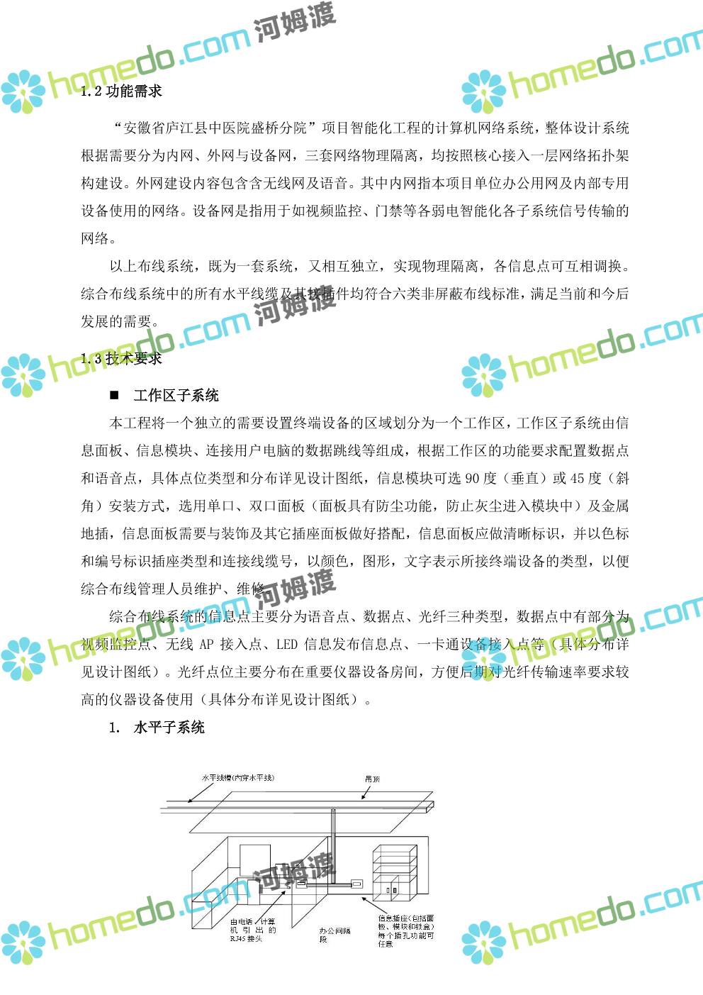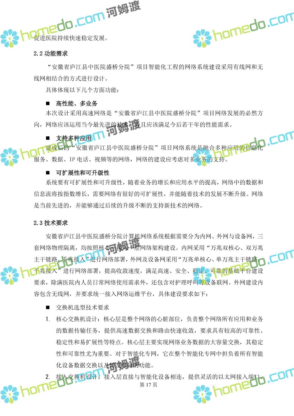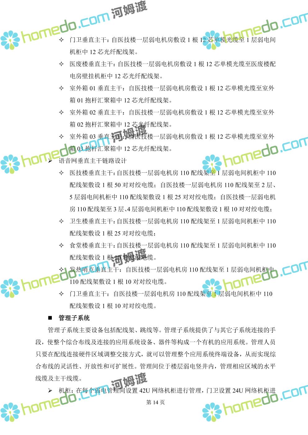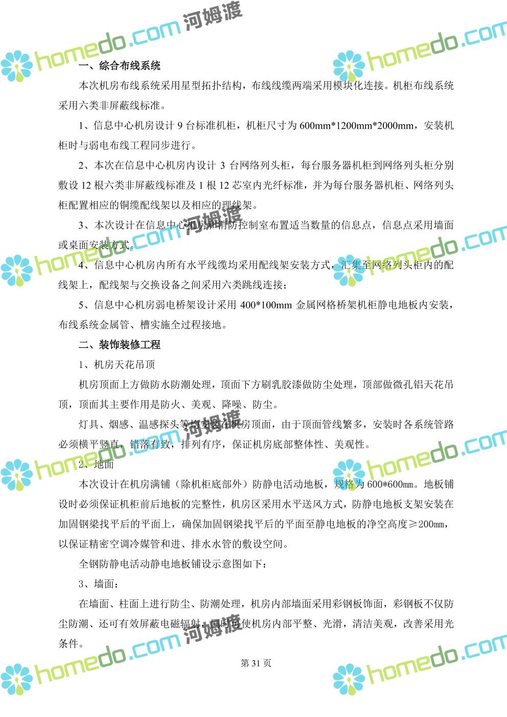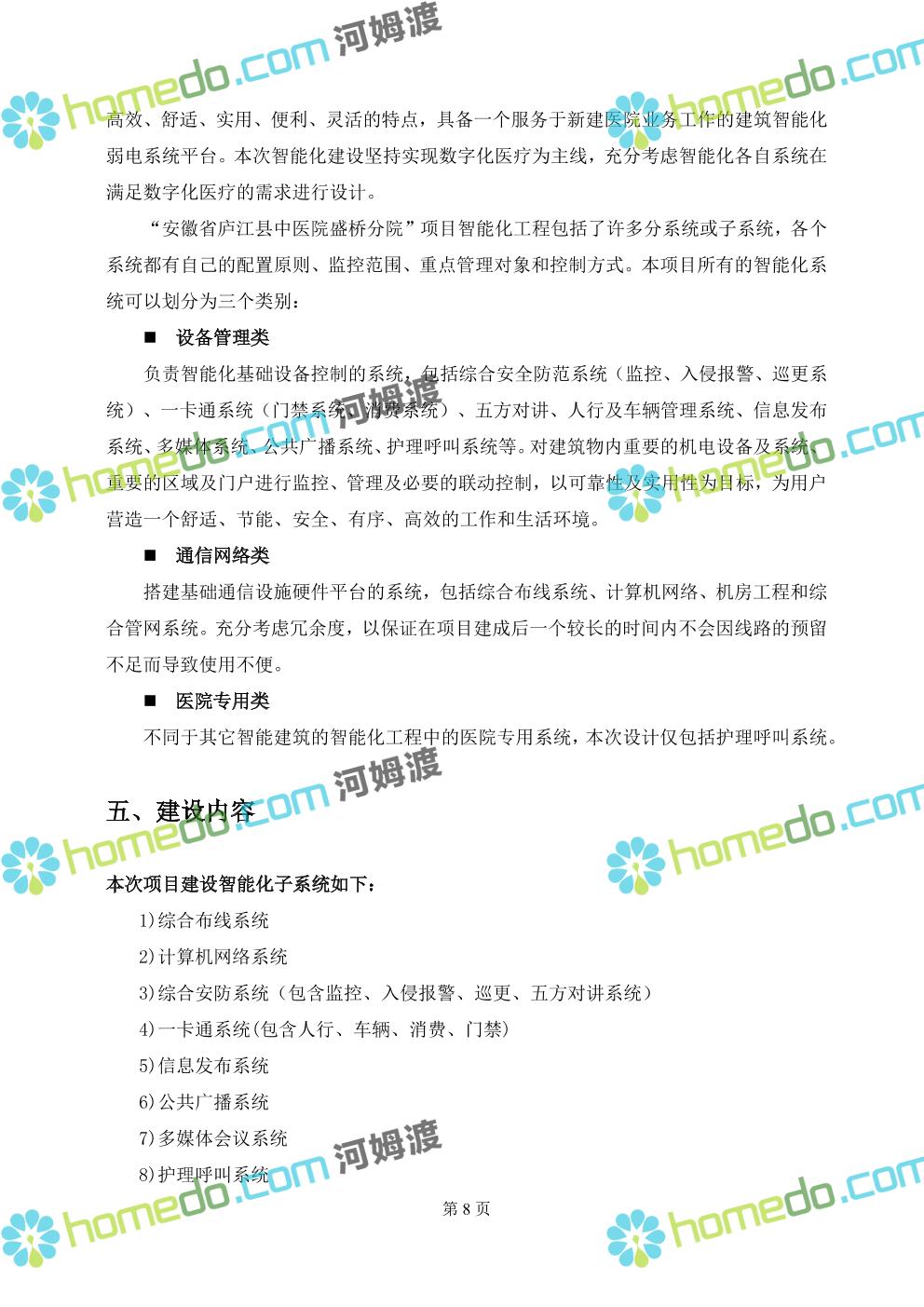 方案简介 本方案是新建医院的智慧医院的全套设计方案及图纸,内涵大小二十几个子系统,全面且详细对医院新建项目的智慧化,里面设计方案全面,施工设计图全面,设计人员可参考设计的思路和点位,同步对于相同医院设计方案的规划。