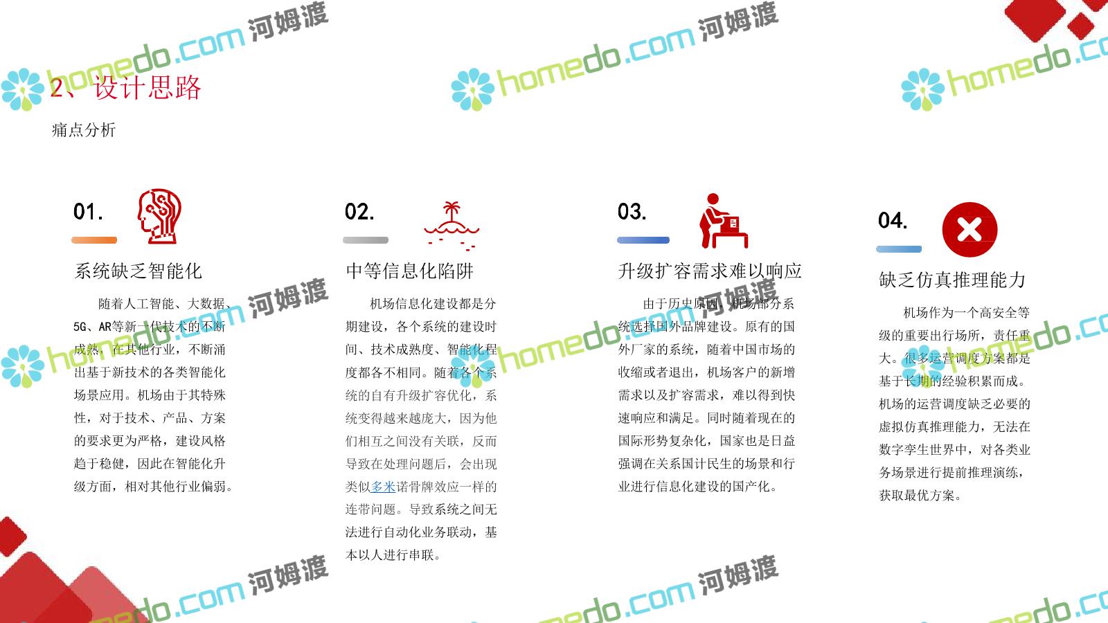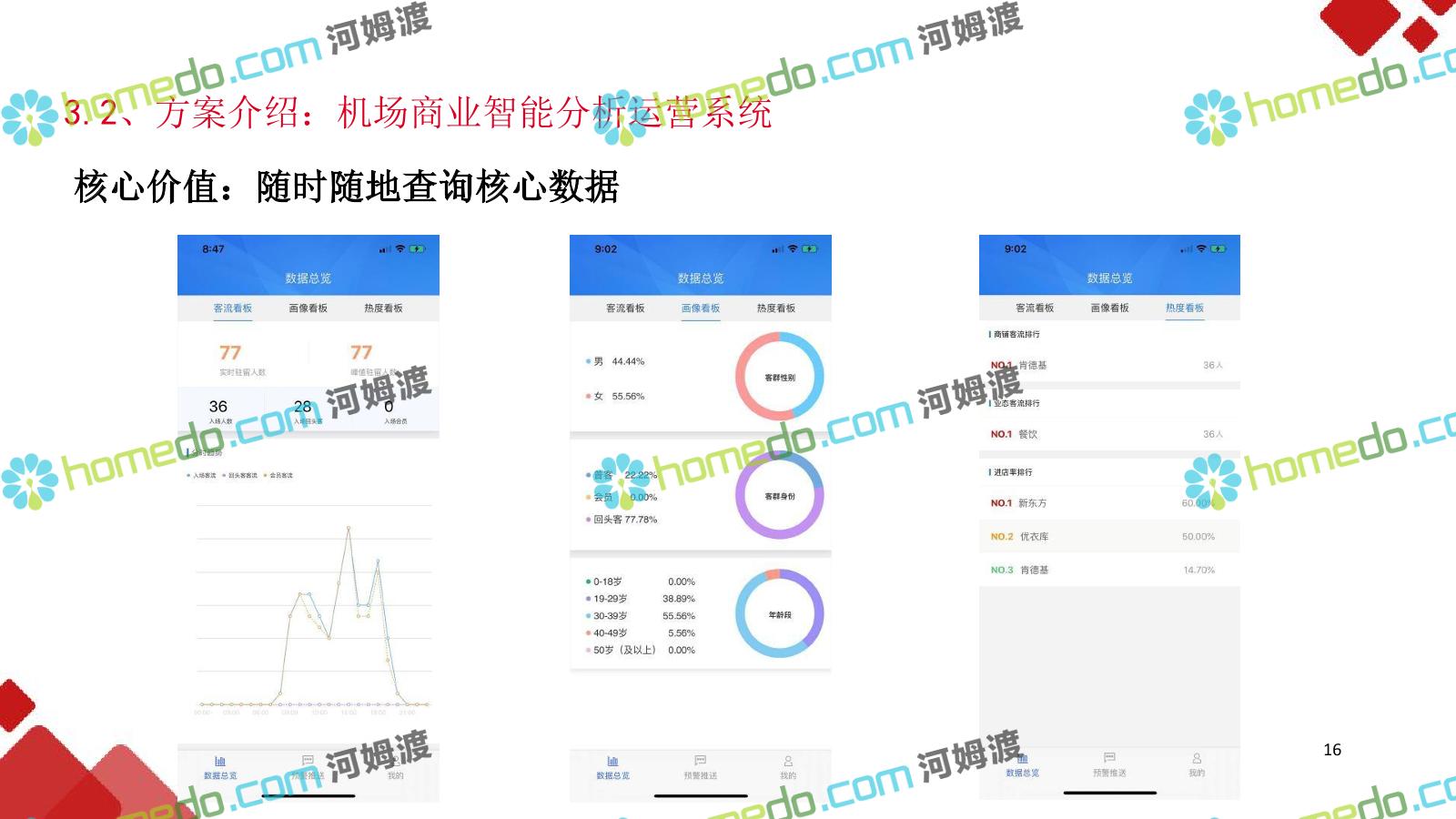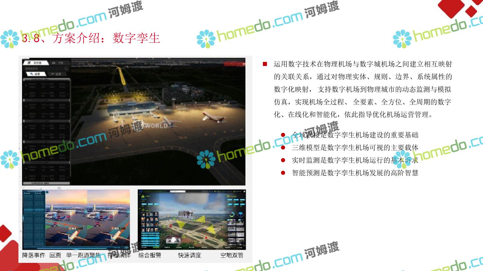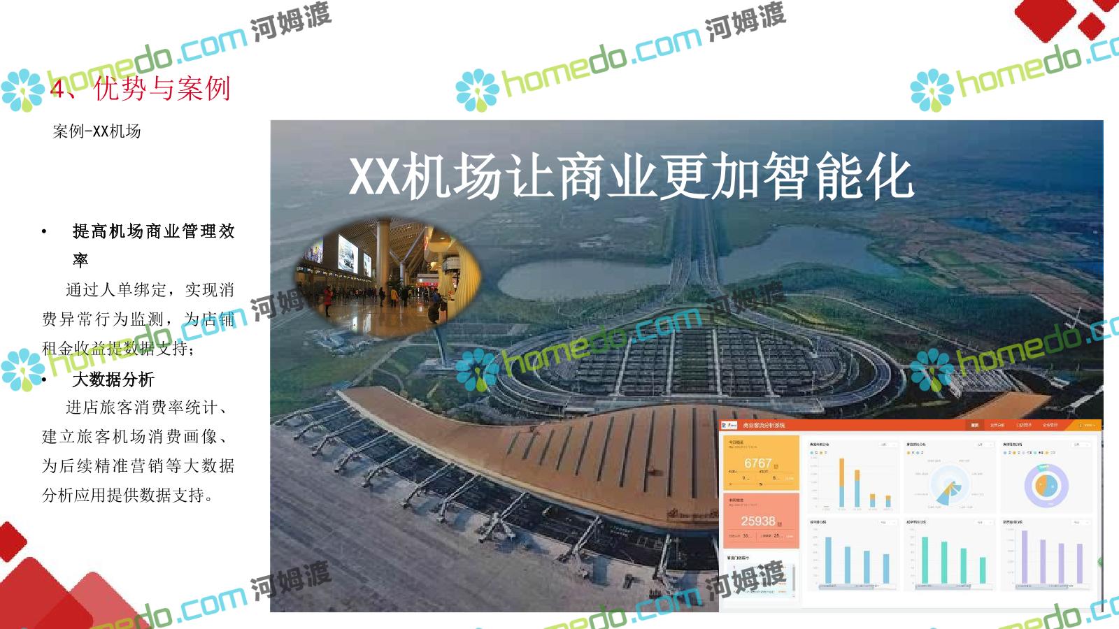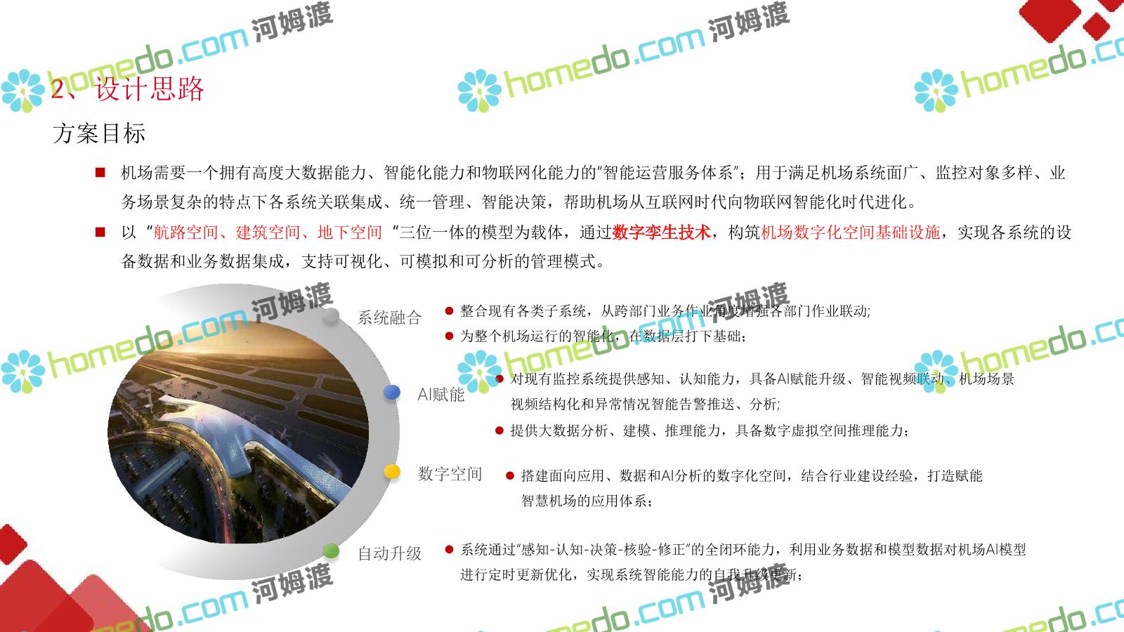 方案简介 机场需要一个拥有高度大数据能力、智能化能力和物联网化能力的”智能运营服务体系”;用于满足机场系统面广、监控对象多样、业 务场景复杂的特点下各系统关联集成、统一管理、智能决策,帮助机场从互联网时代向物联网智能化时代进化。