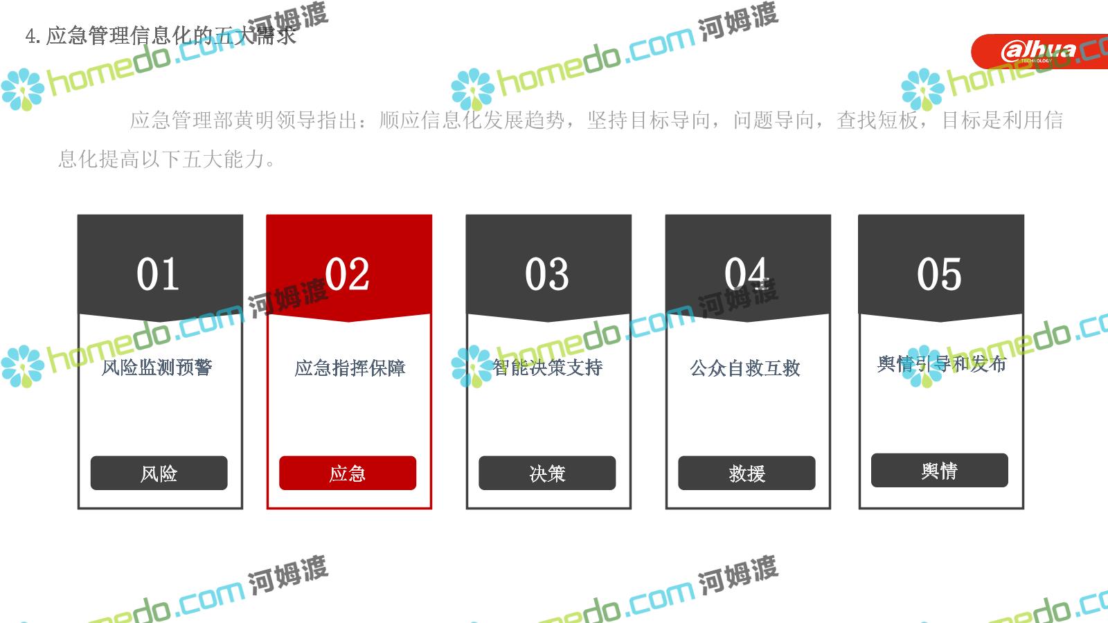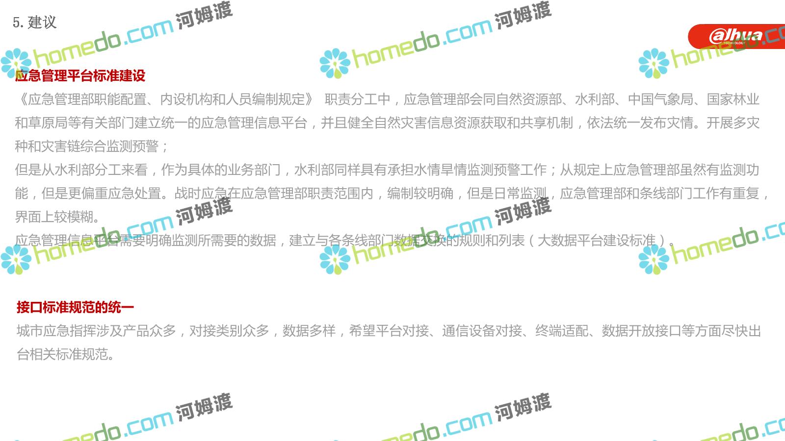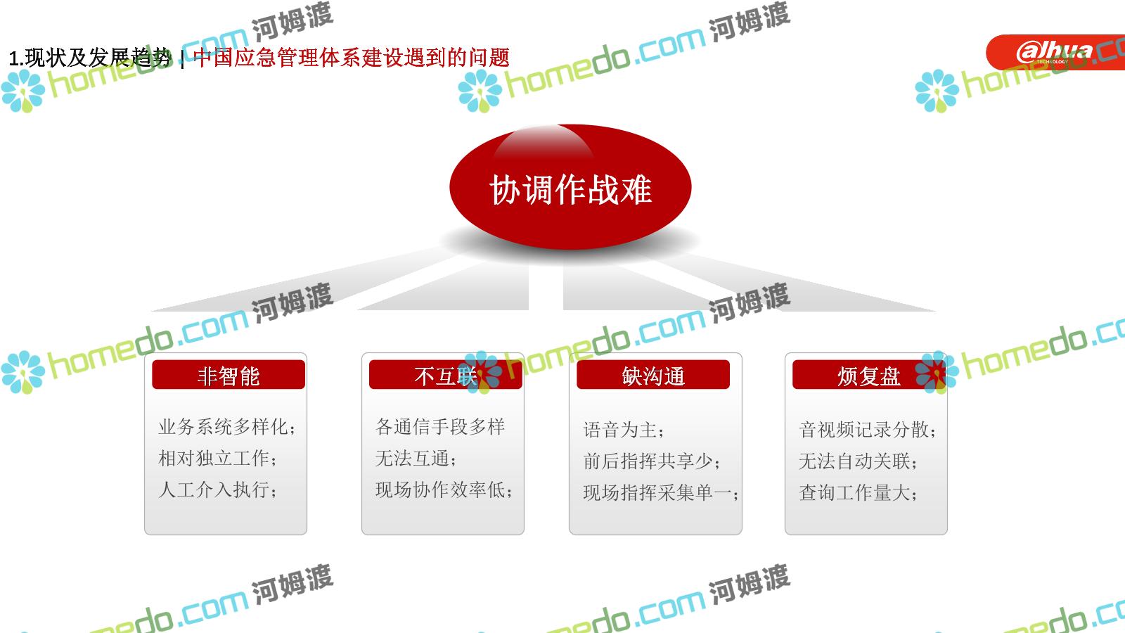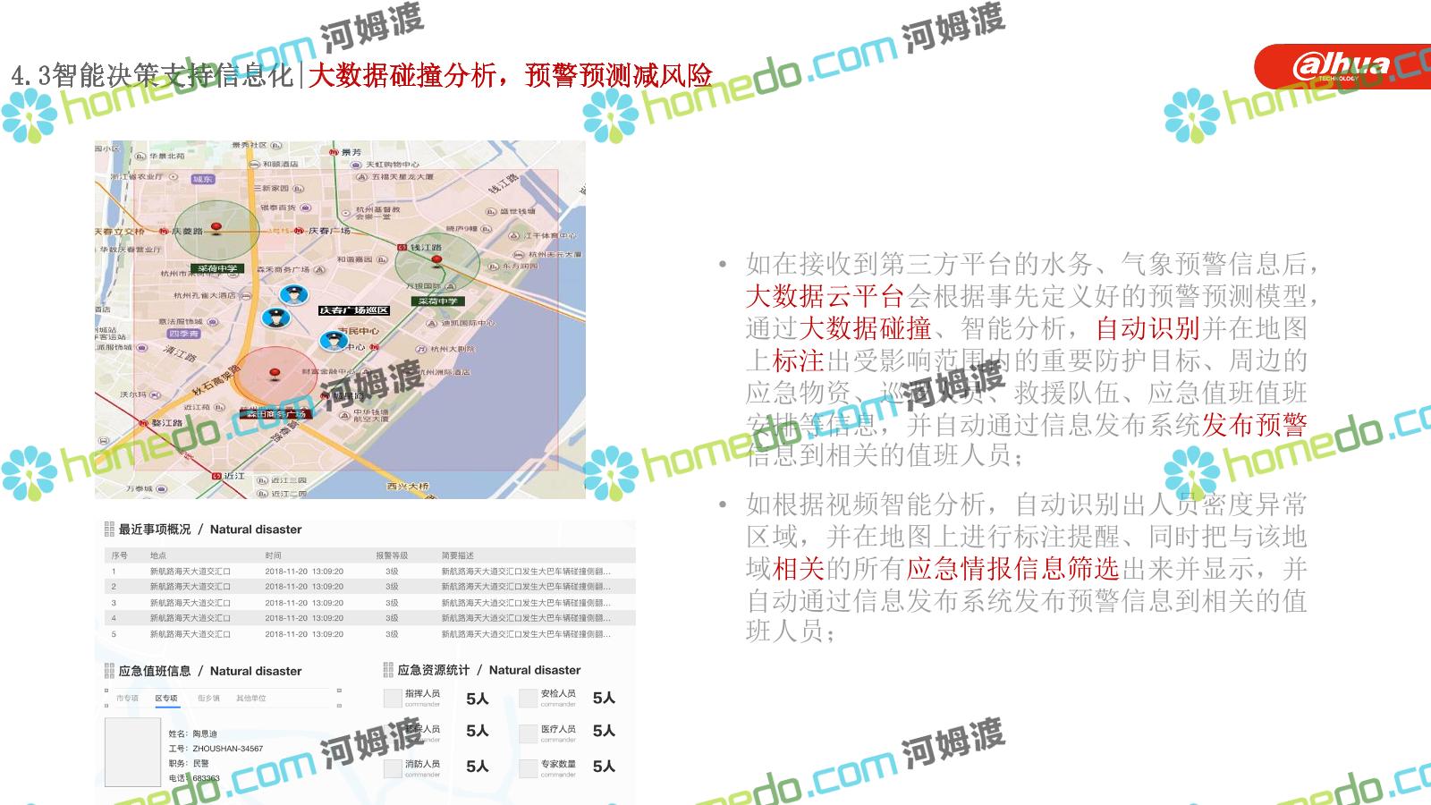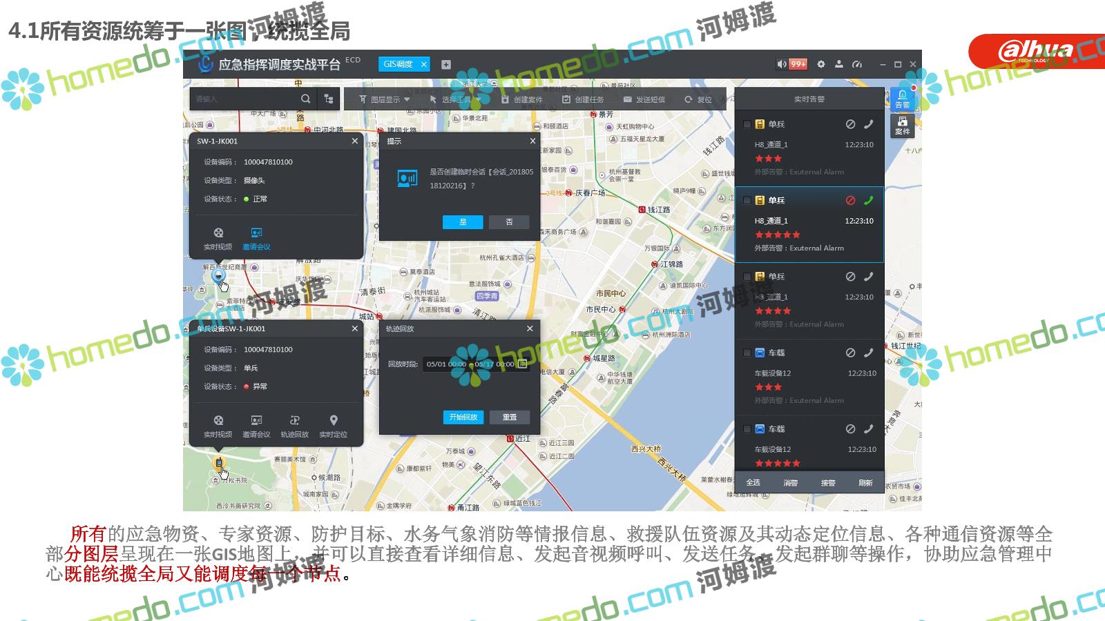 方案简介 构建一个平台:应急指挥调度平台 建设三个中心:应急指挥中心、分中心、移动指挥中心 整合应急资源:将现有各委办局数据充分利用, 全面对接,平战结合,统一调配