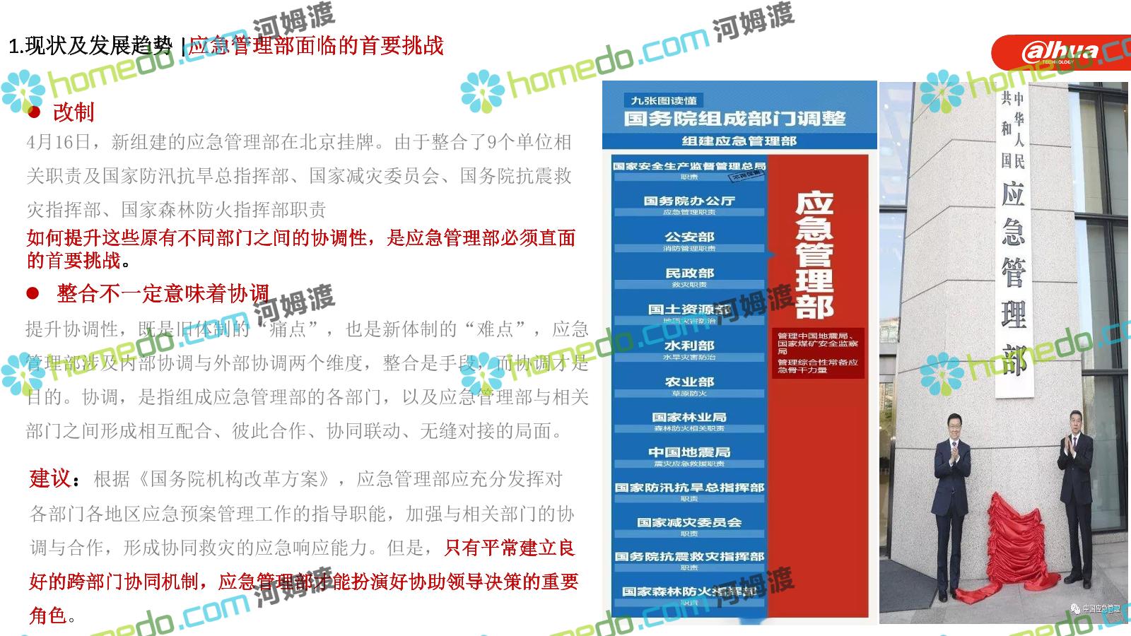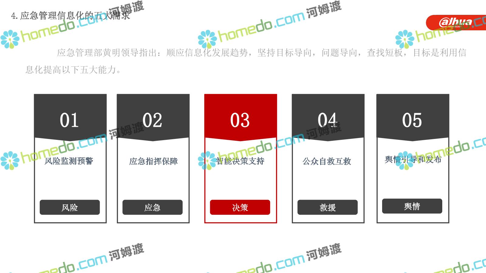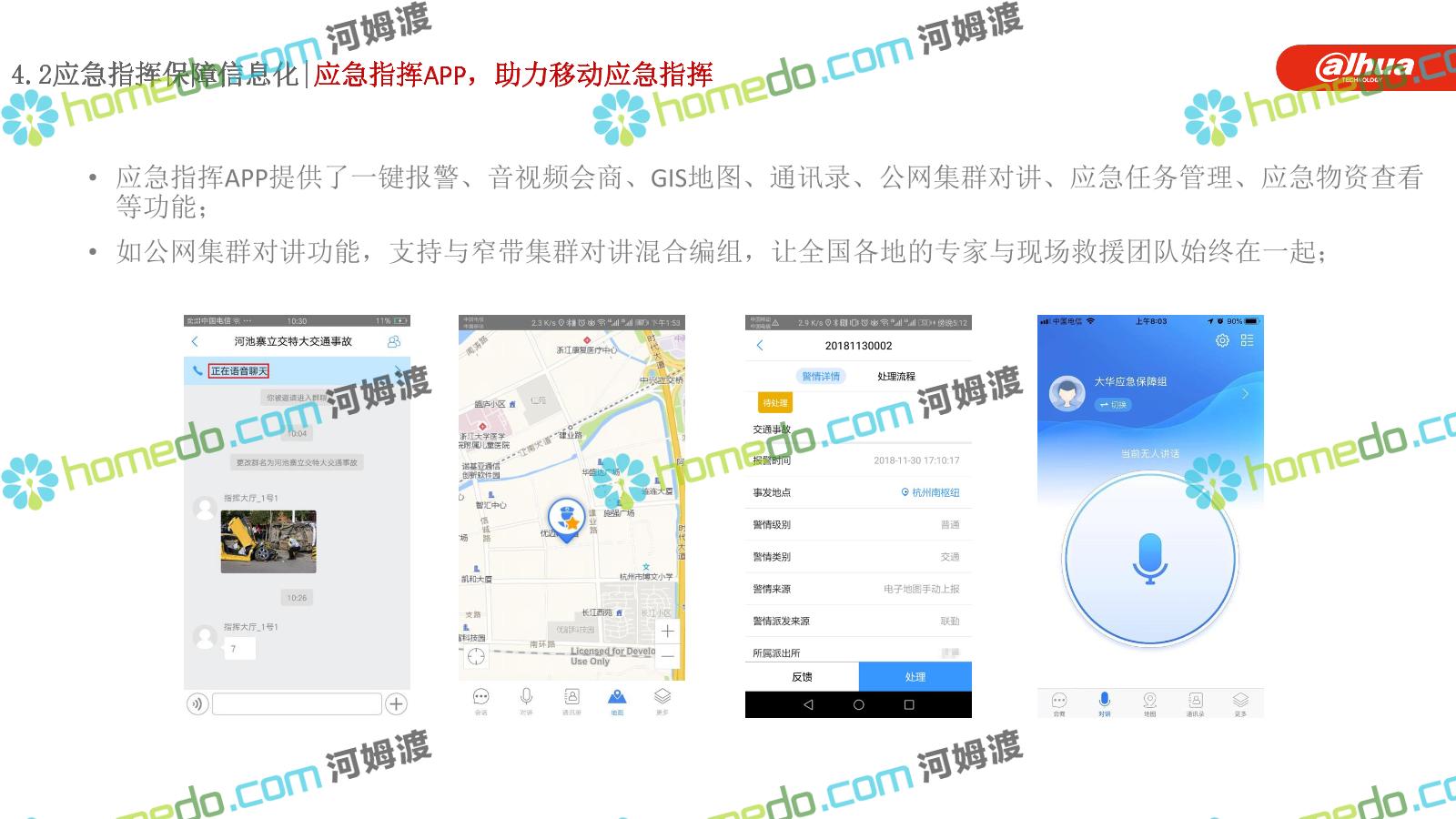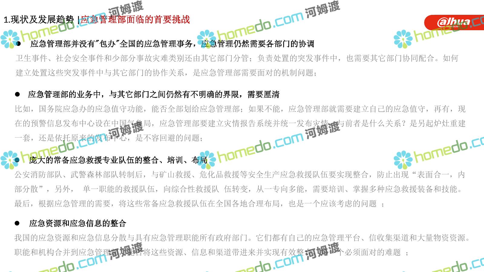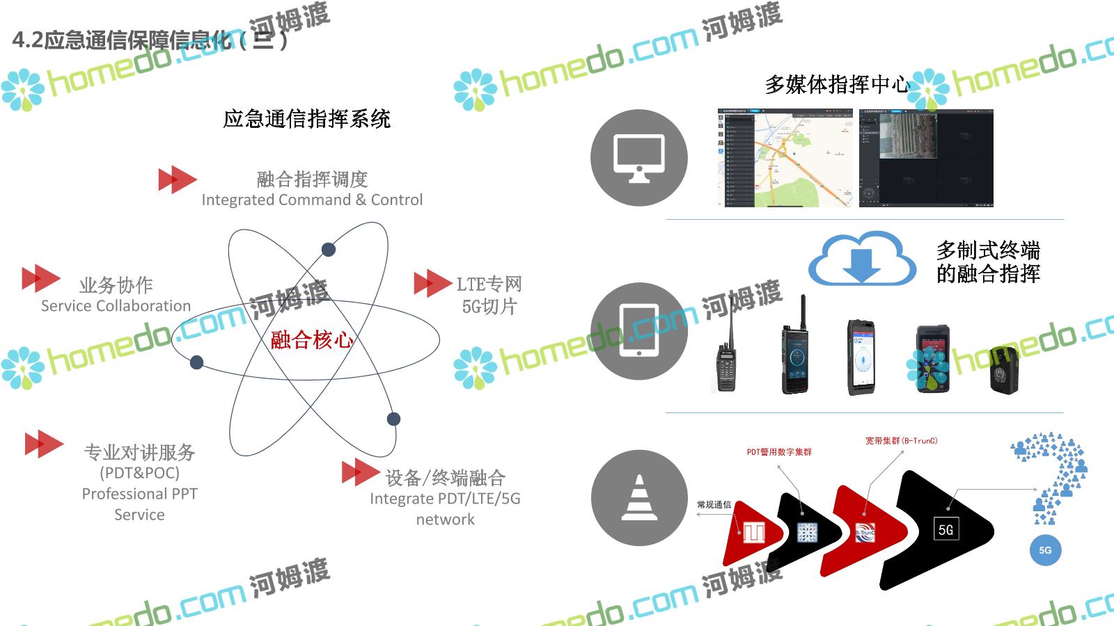 方案简介 构建一个平台:应急指挥调度平台 建设三个中心:应急指挥中心、分中心、移动指挥中心 整合应急资源:将现有各委办局数据充分利用, 全面对接,平战结合,统一调配