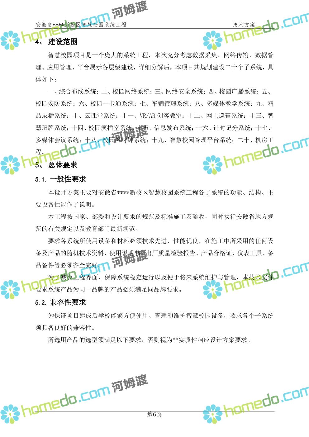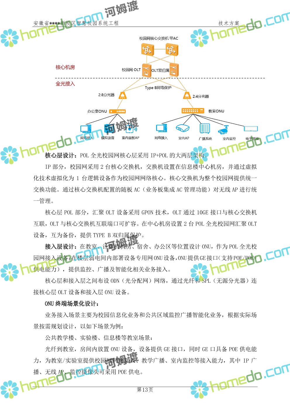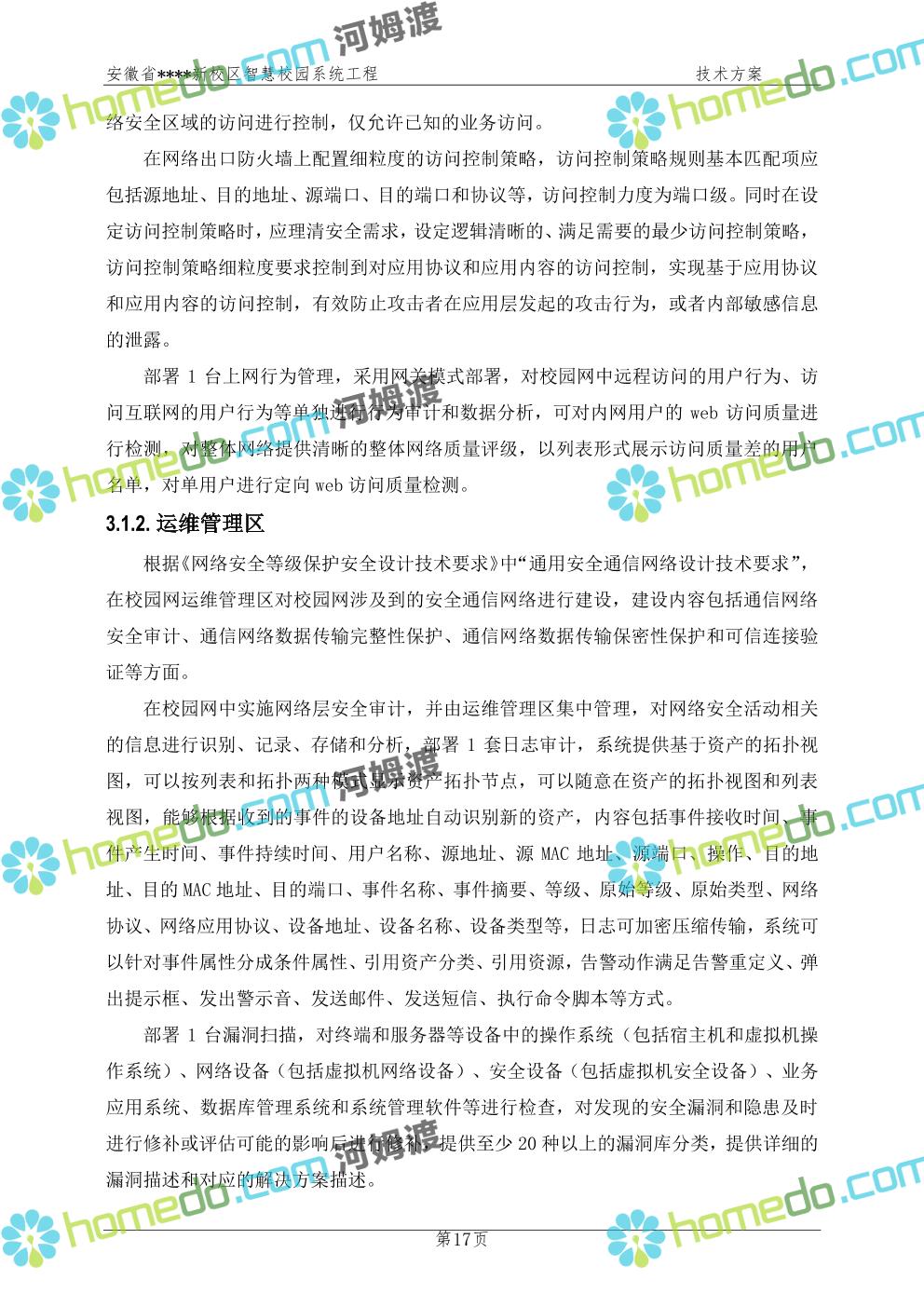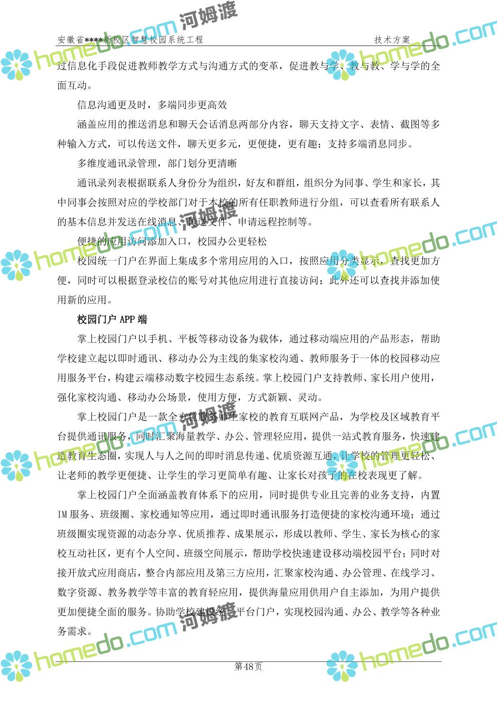 方案简介 通过智慧校园系统工程建设,为安徽省****新校区构造满足智慧校园应用长期持续发展的框架,通过稳定、可扩展的应用框架为校园应用系统建设提供良好的支撑和服务,充分支持新校区现有应用需求和未来发展。同时考虑项目投入性价比,采用先进的建设理念和思路,选用成熟主流、符合未来发展趋势的技术,运用现代系统工程和项目管理规范标准,科学合理的进行建设。