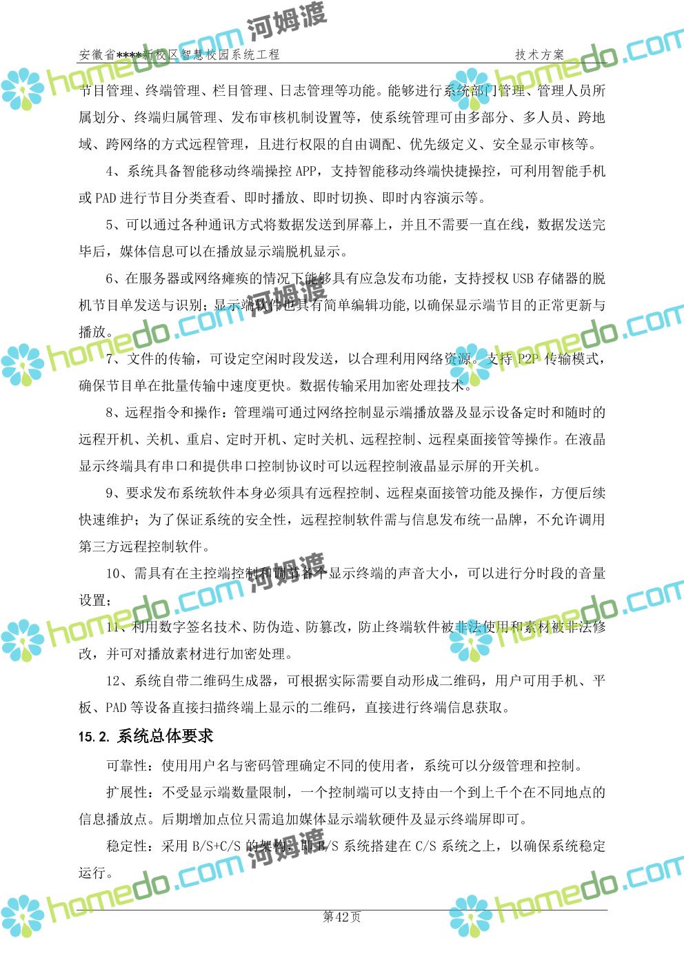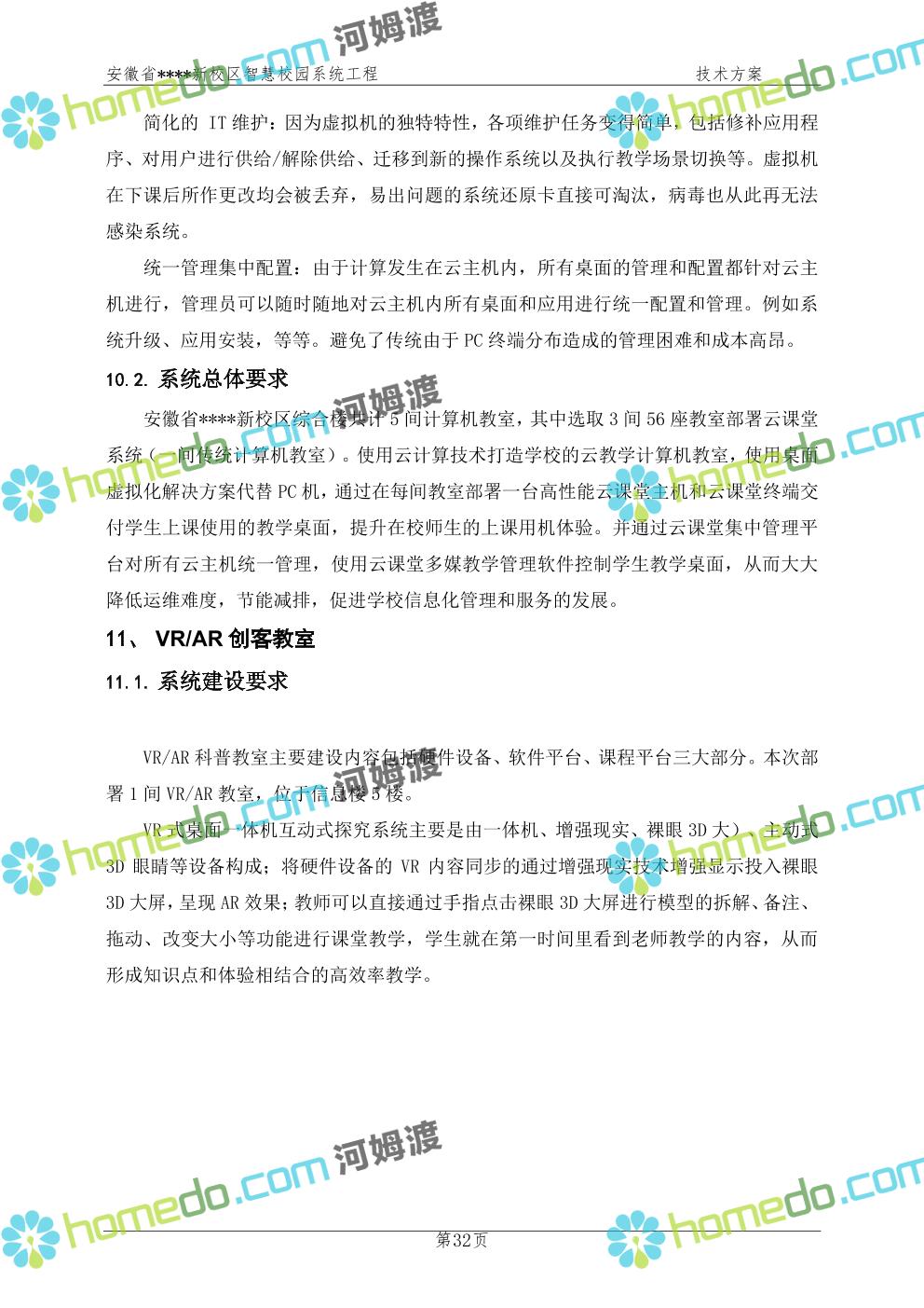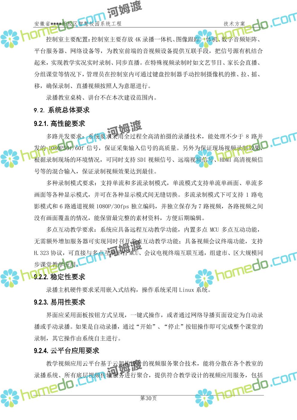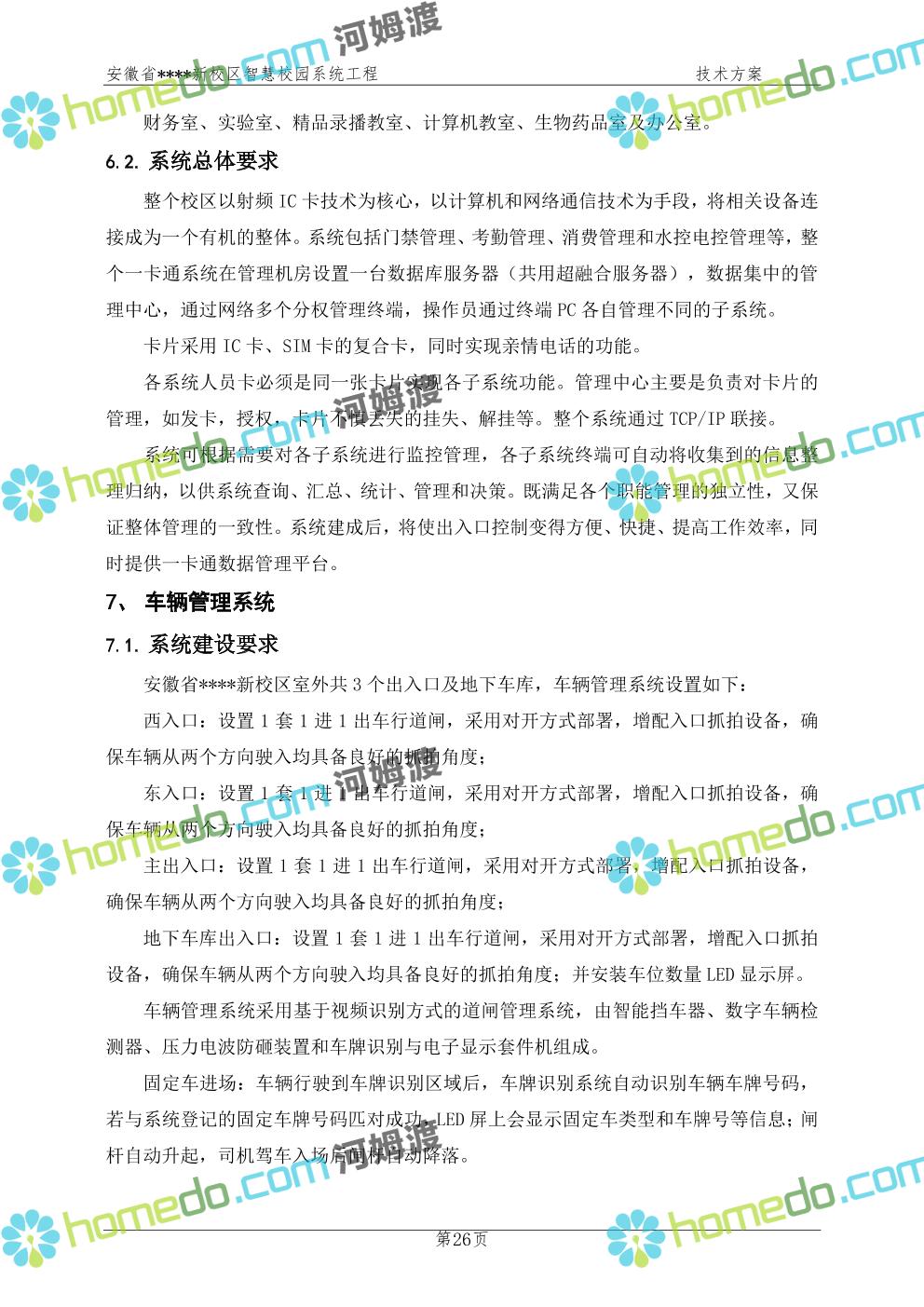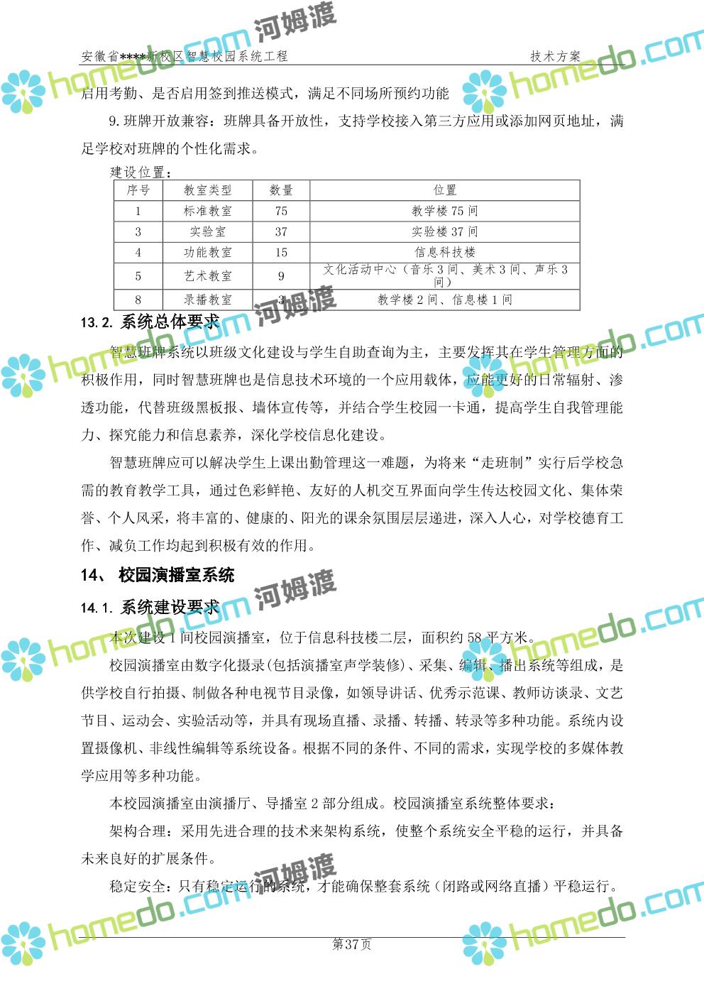 方案简介 通过智慧校园系统工程建设,为安徽省****新校区构造满足智慧校园应用长期持续发展的框架,通过稳定、可扩展的应用框架为校园应用系统建设提供良好的支撑和服务,充分支持新校区现有应用需求和未来发展。同时考虑项目投入性价比,采用先进的建设理念和思路,选用成熟主流、符合未来发展趋势的技术,运用现代系统工程和项目管理规范标准,科学合理的进行建设。