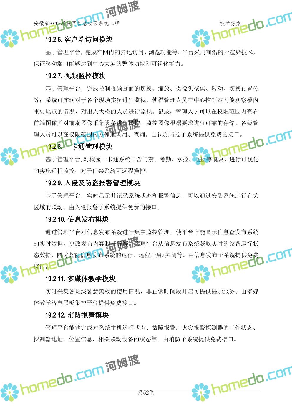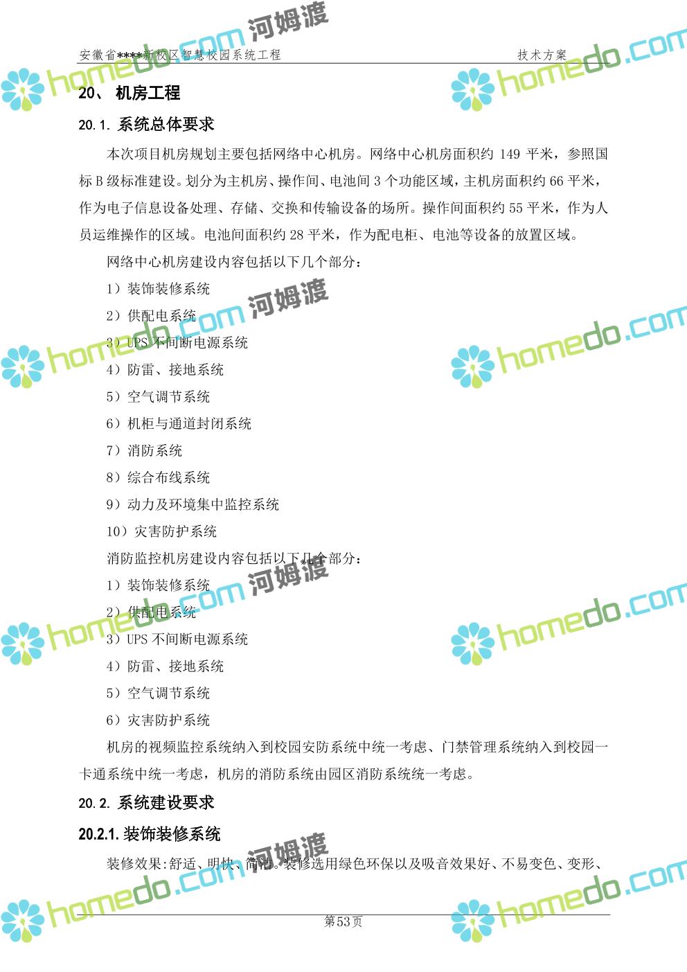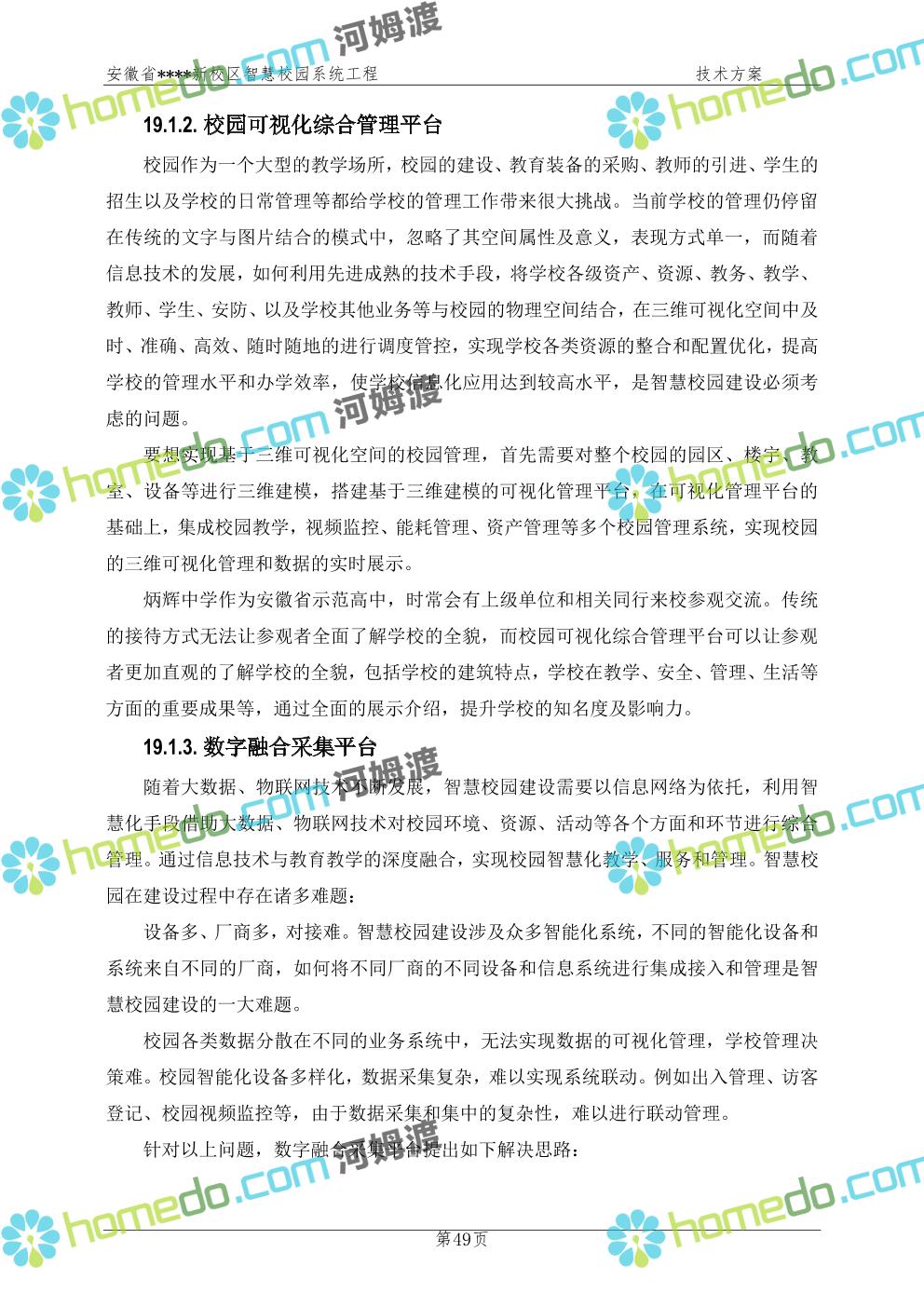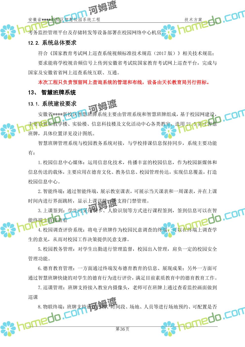 方案简介 通过智慧校园系统工程建设,为安徽省****新校区构造满足智慧校园应用长期持续发展的框架,通过稳定、可扩展的应用框架为校园应用系统建设提供良好的支撑和服务,充分支持新校区现有应用需求和未来发展。同时考虑项目投入性价比,采用先进的建设理念和思路,选用成熟主流、符合未来发展趋势的技术,运用现代系统工程和项目管理规范标准,科学合理的进行建设。