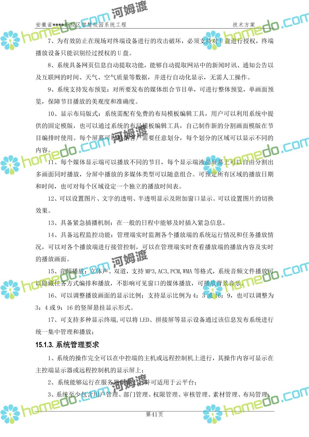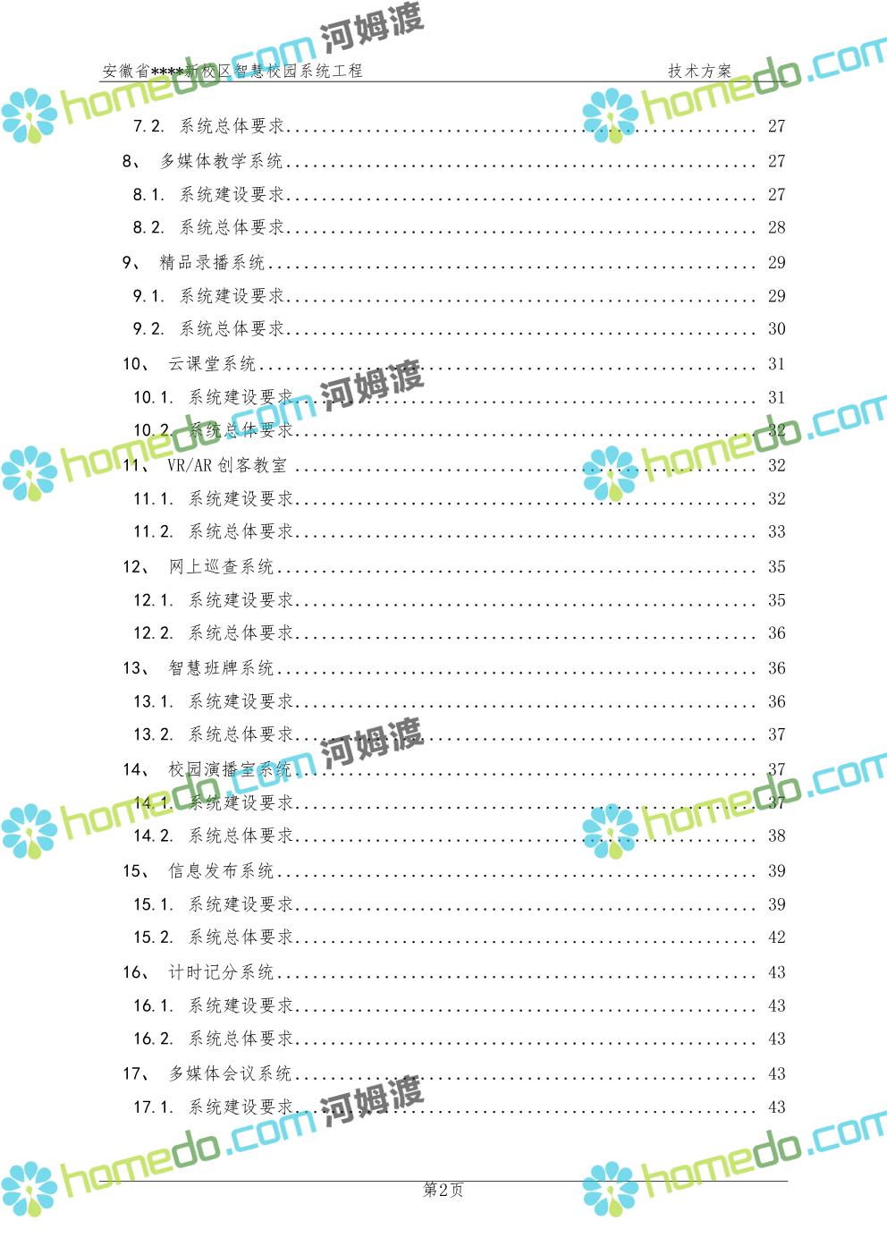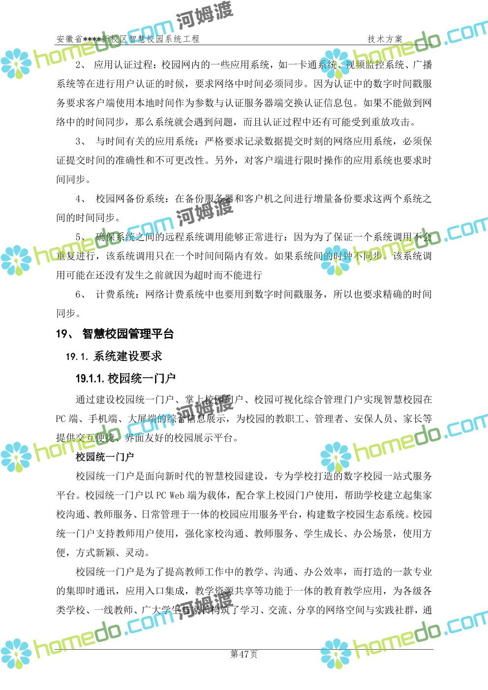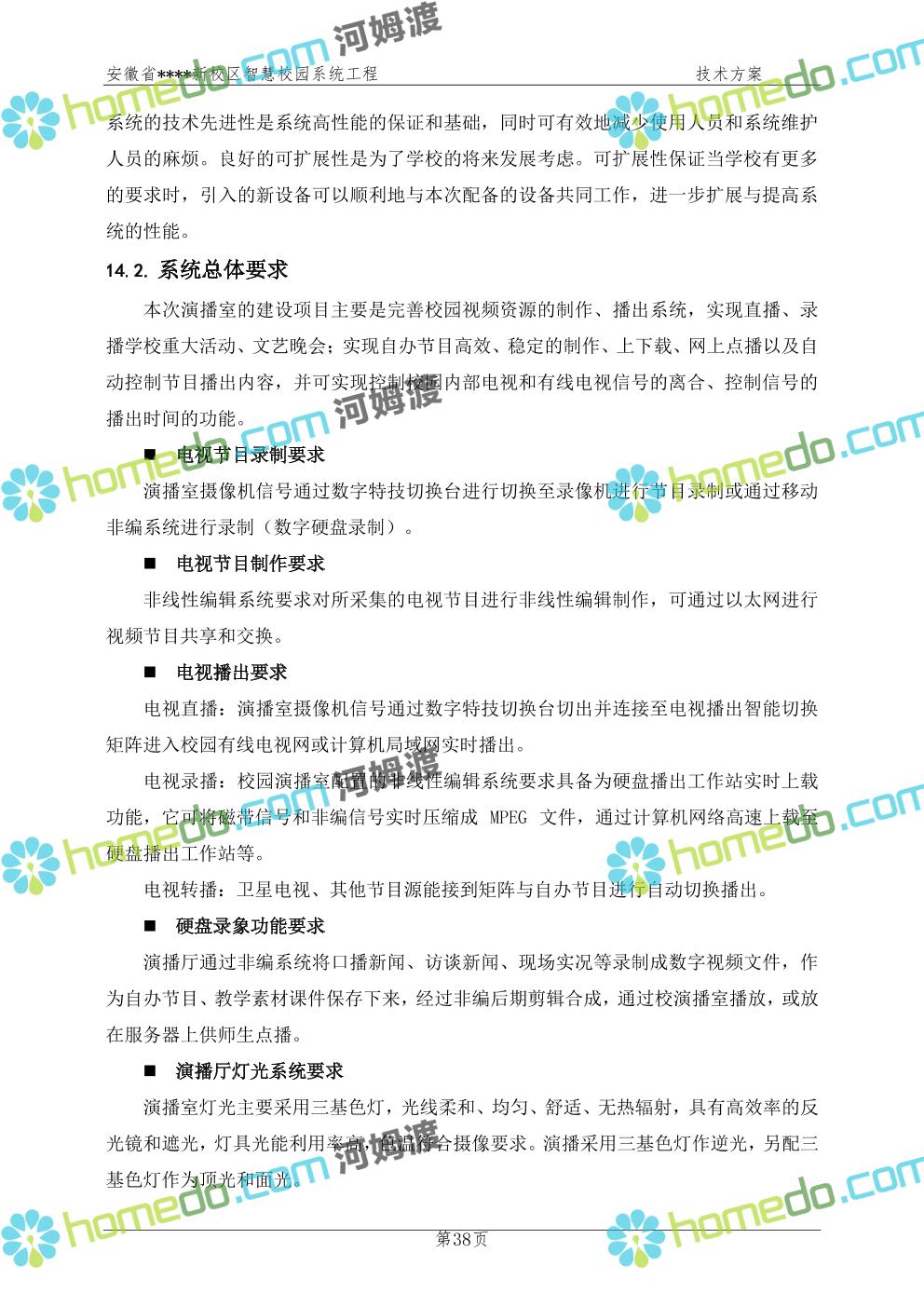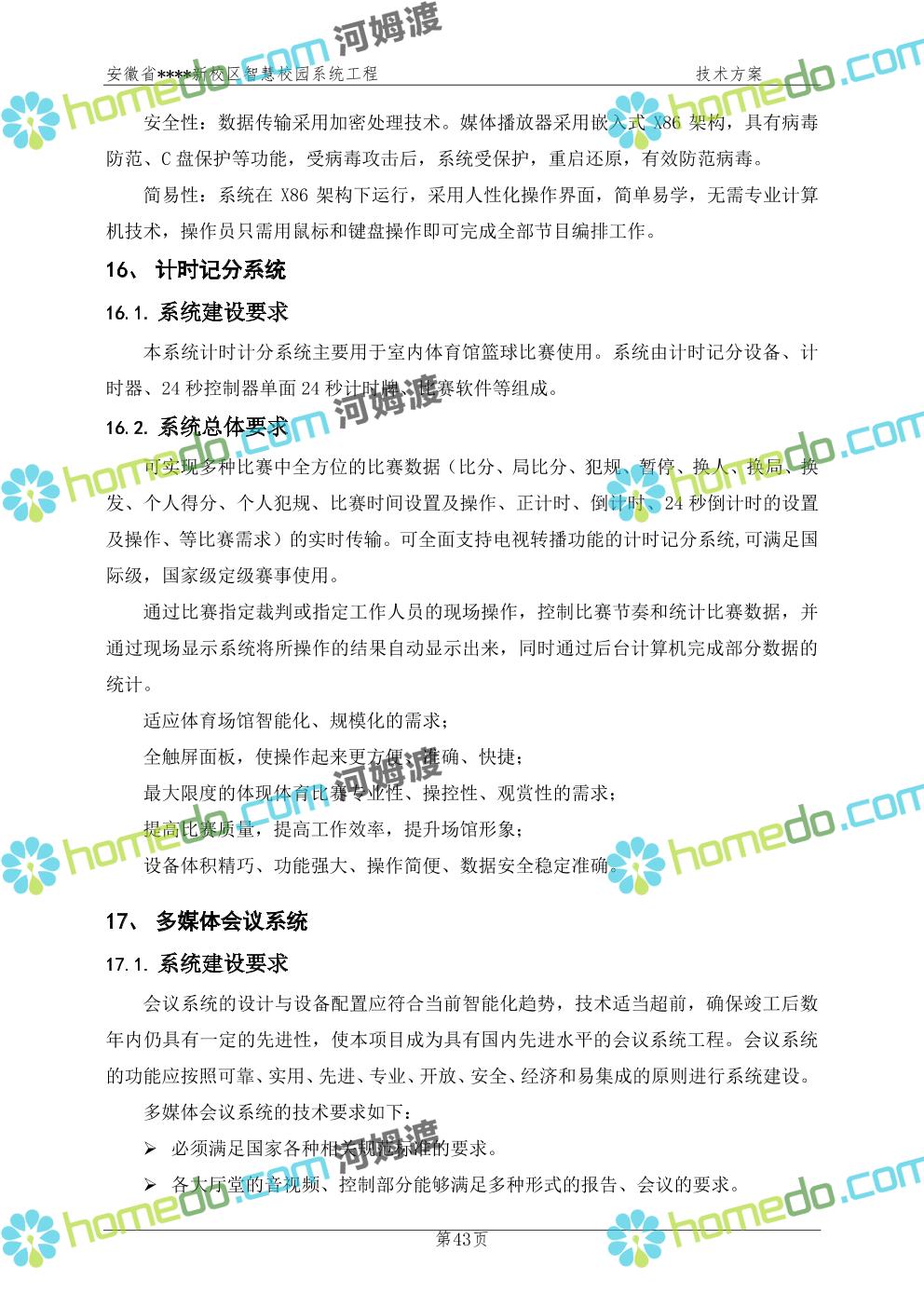 方案简介 通过智慧校园系统工程建设,为安徽省****新校区构造满足智慧校园应用长期持续发展的框架,通过稳定、可扩展的应用框架为校园应用系统建设提供良好的支撑和服务,充分支持新校区现有应用需求和未来发展。同时考虑项目投入性价比,采用先进的建设理念和思路,选用成熟主流、符合未来发展趋势的技术,运用现代系统工程和项目管理规范标准,科学合理的进行建设。