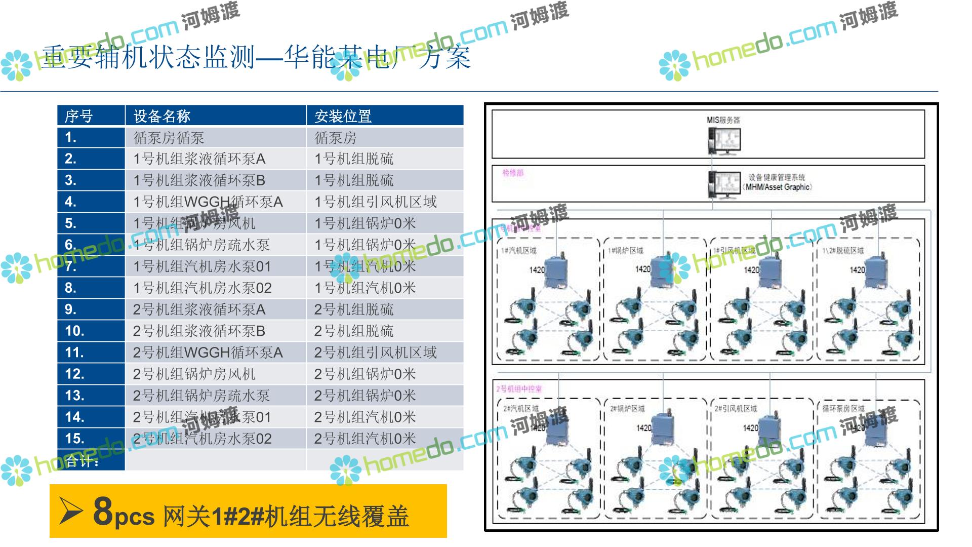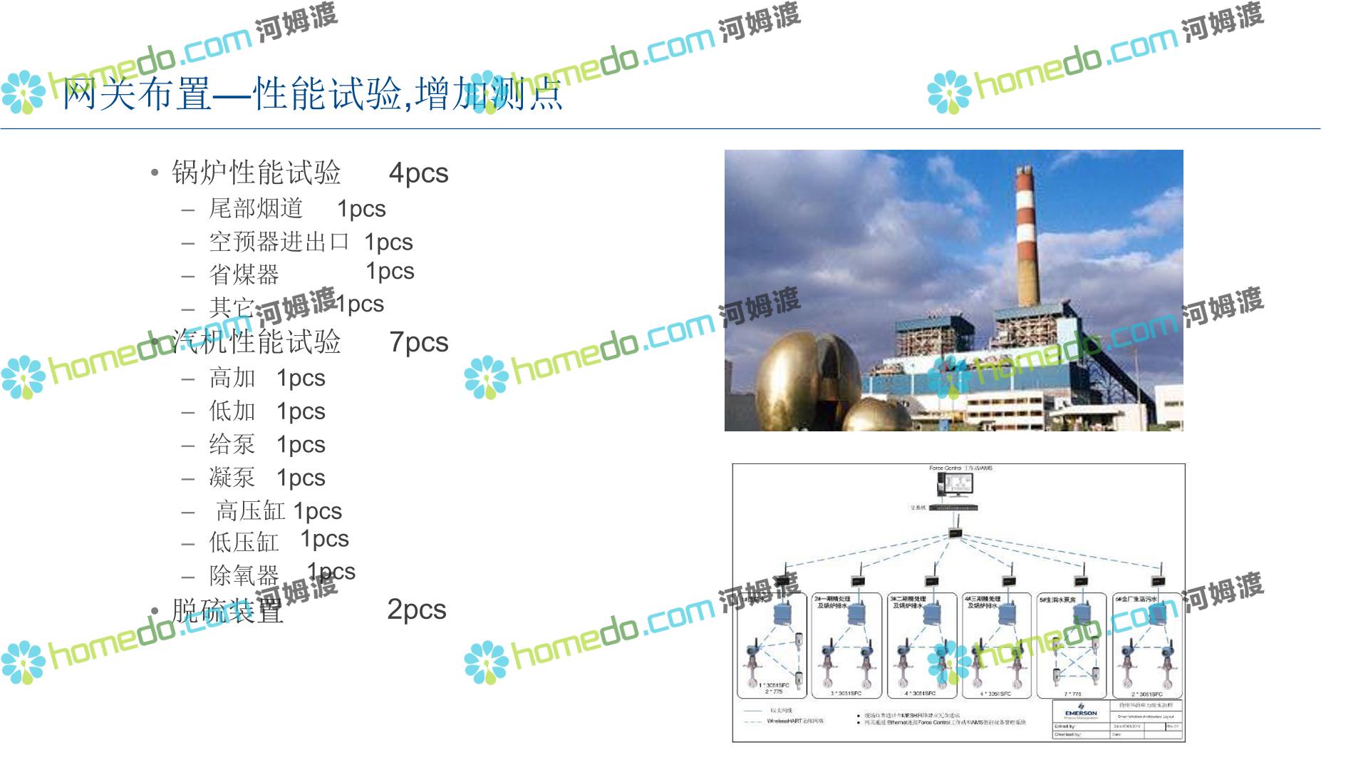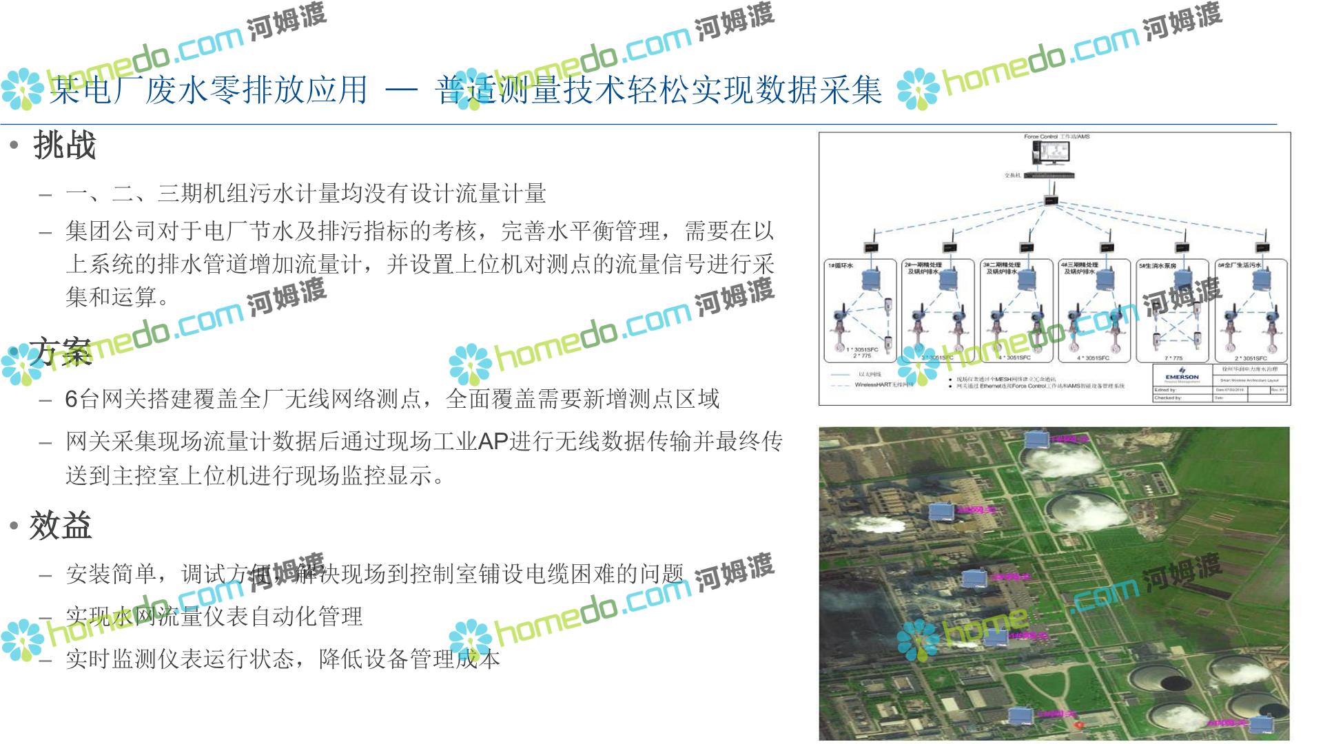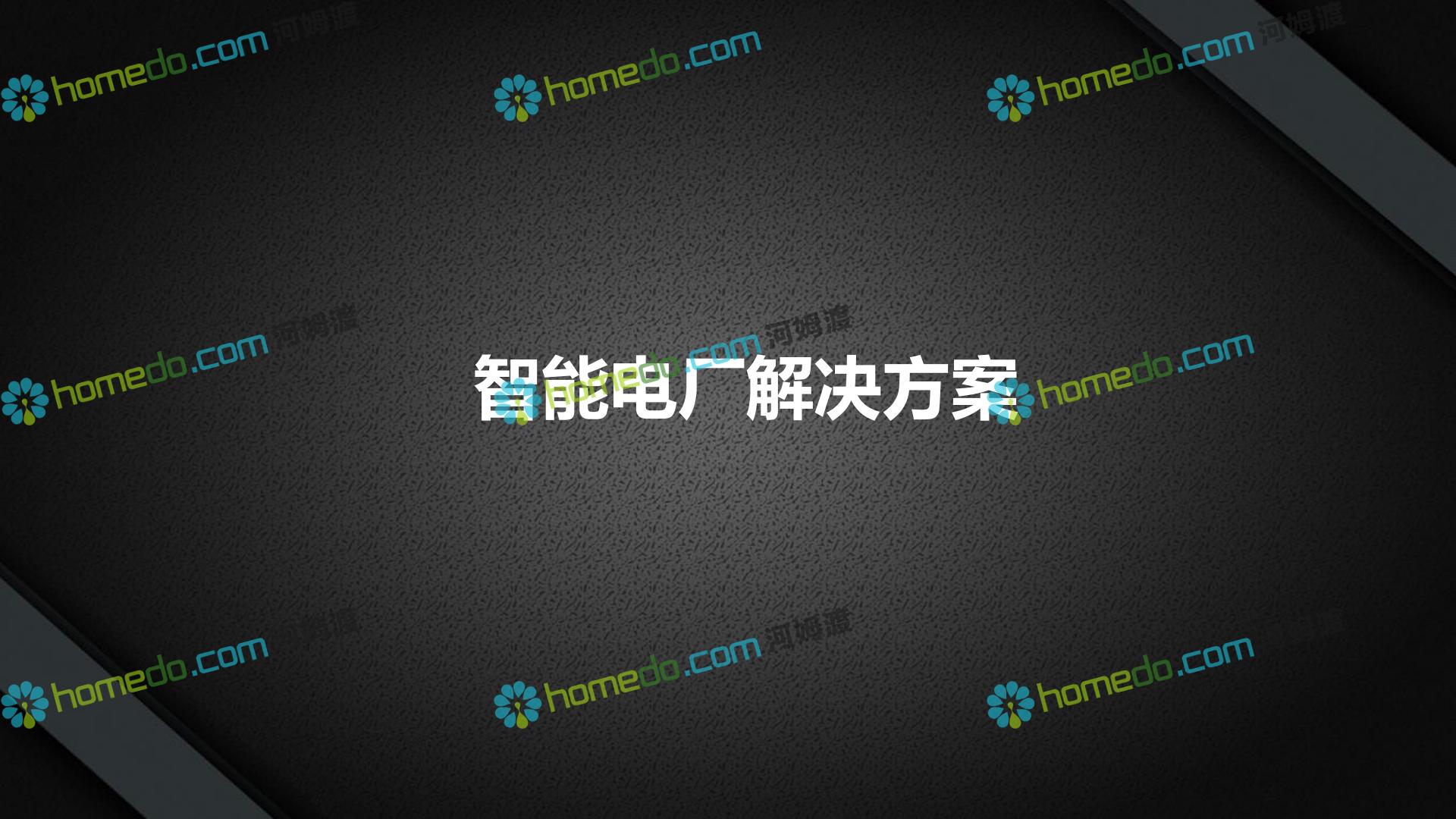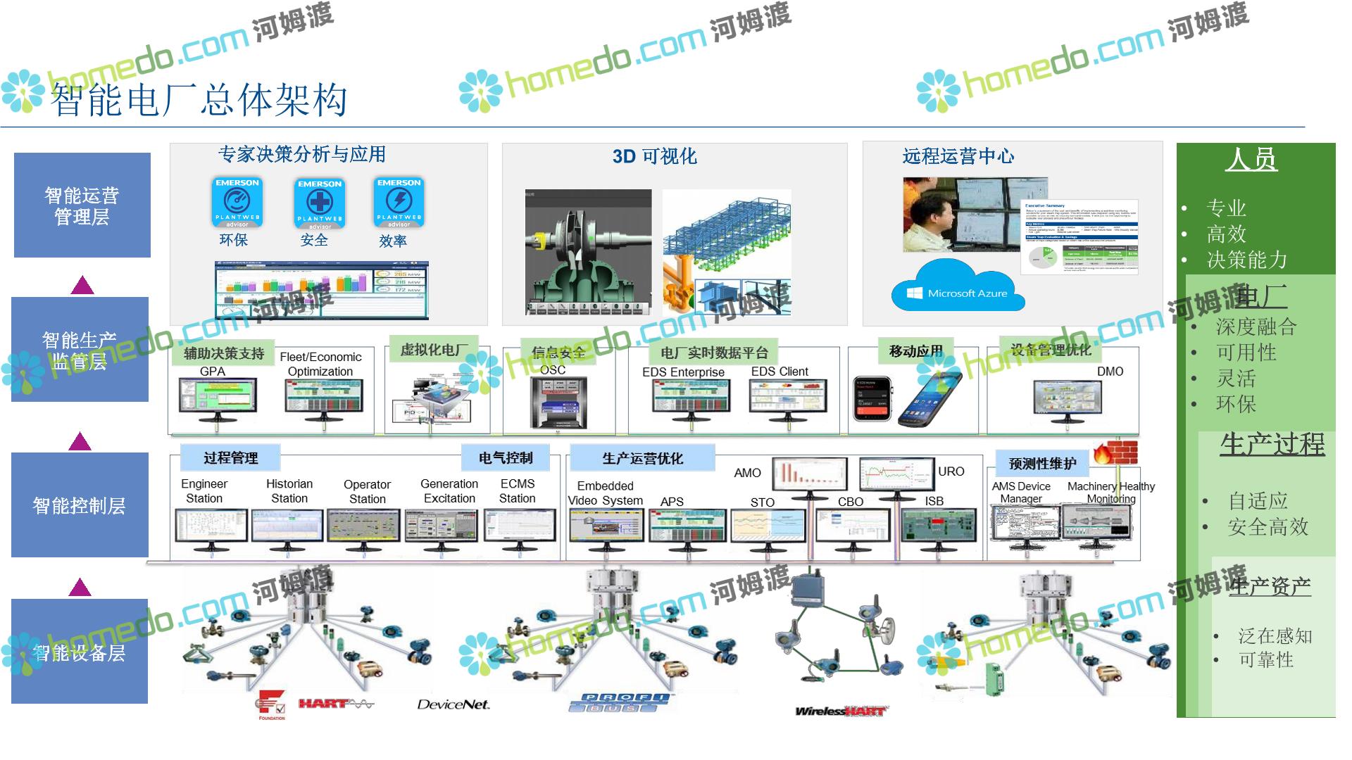 方案简介 整 体 设 计 规 划 1.智能现场:数据感知,普适测量 2.智能网络:网络基础设施部署 3.智能生产:卓越运营(工厂可靠性提升、节能环保) 4.智能控制:优化生产,高效发电 5.智能管理:移动应用及专家远程服务
