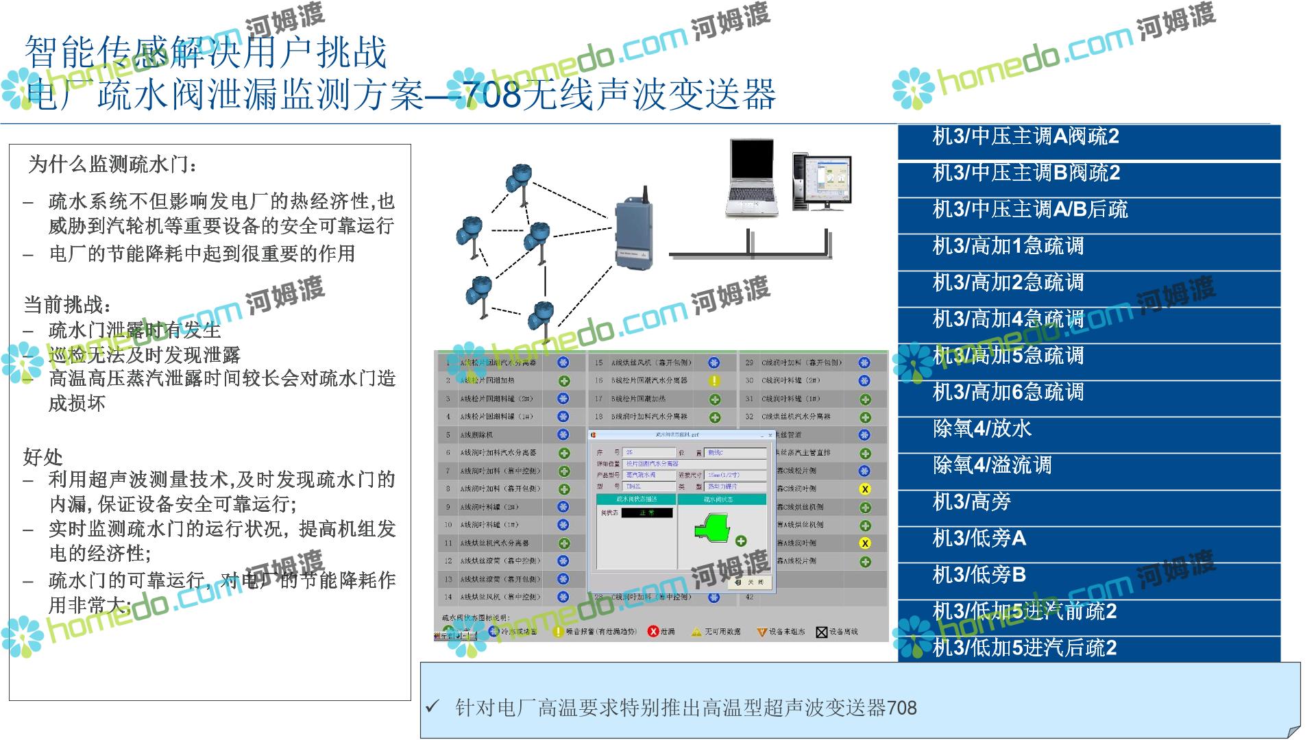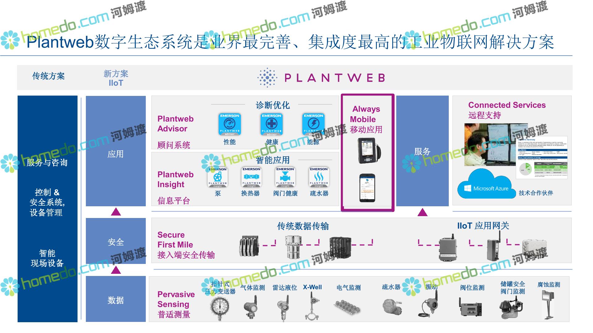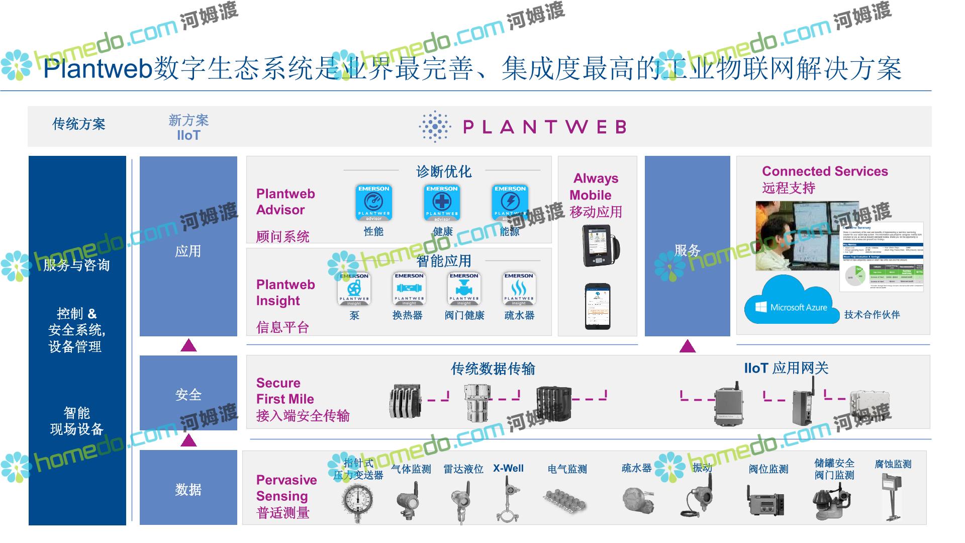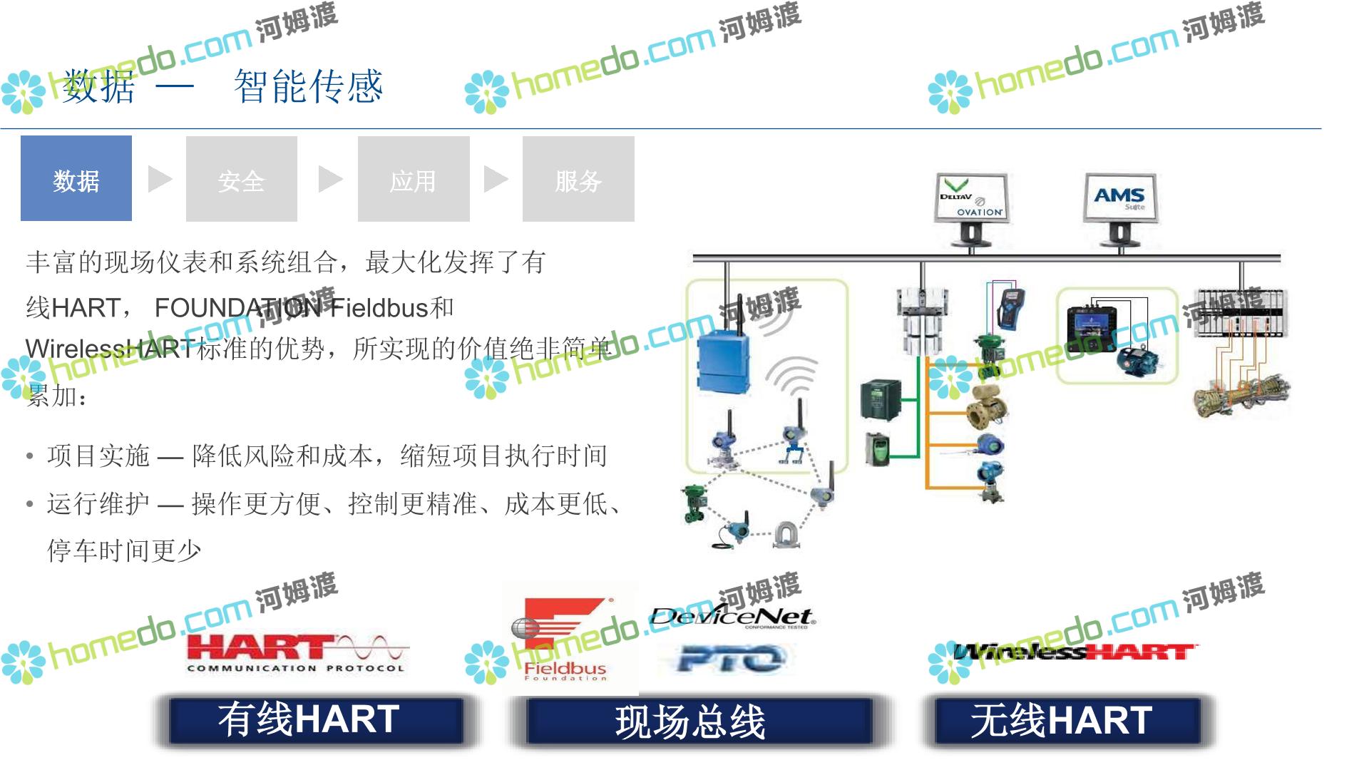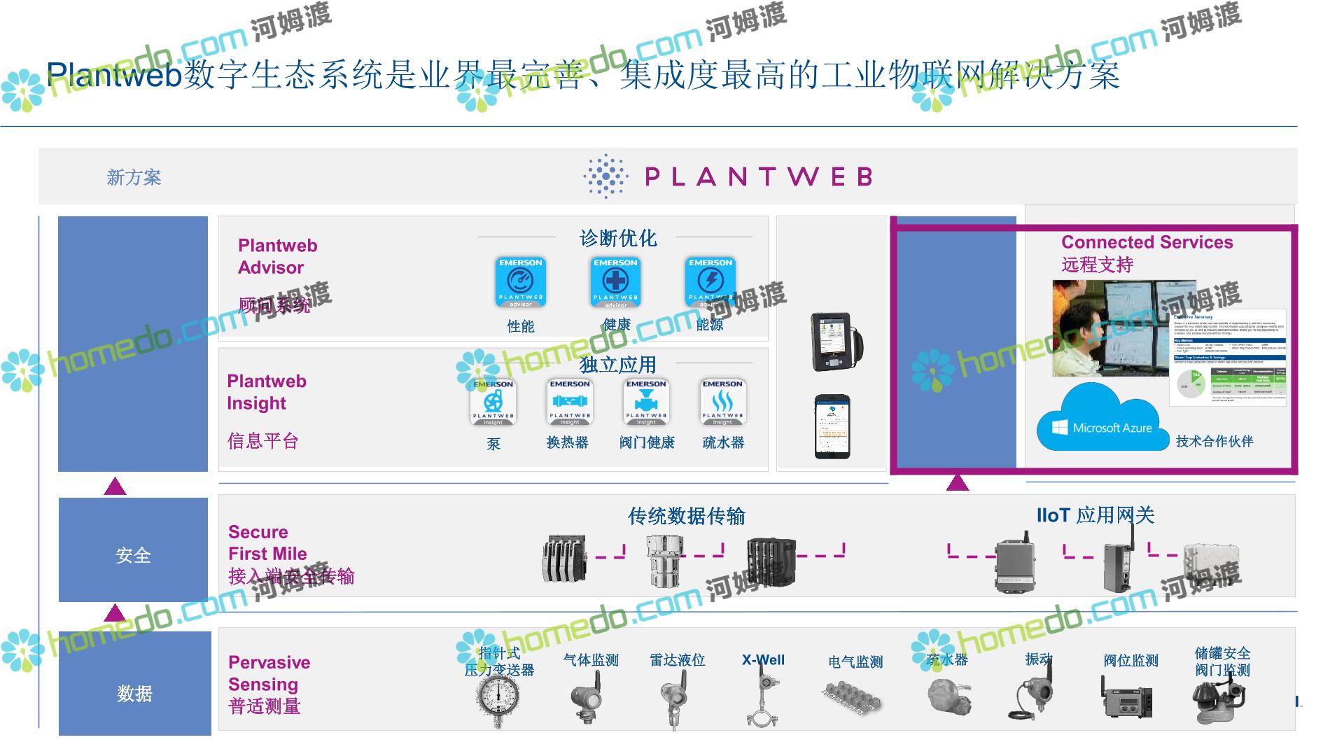 方案简介 整 体 设 计 规 划 1.智能现场:数据感知,普适测量 2.智能网络:网络基础设施部署 3.智能生产:卓越运营(工厂可靠性提升、节能环保) 4.智能控制:优化生产,高效发电 5.智能管理:移动应用及专家远程服务