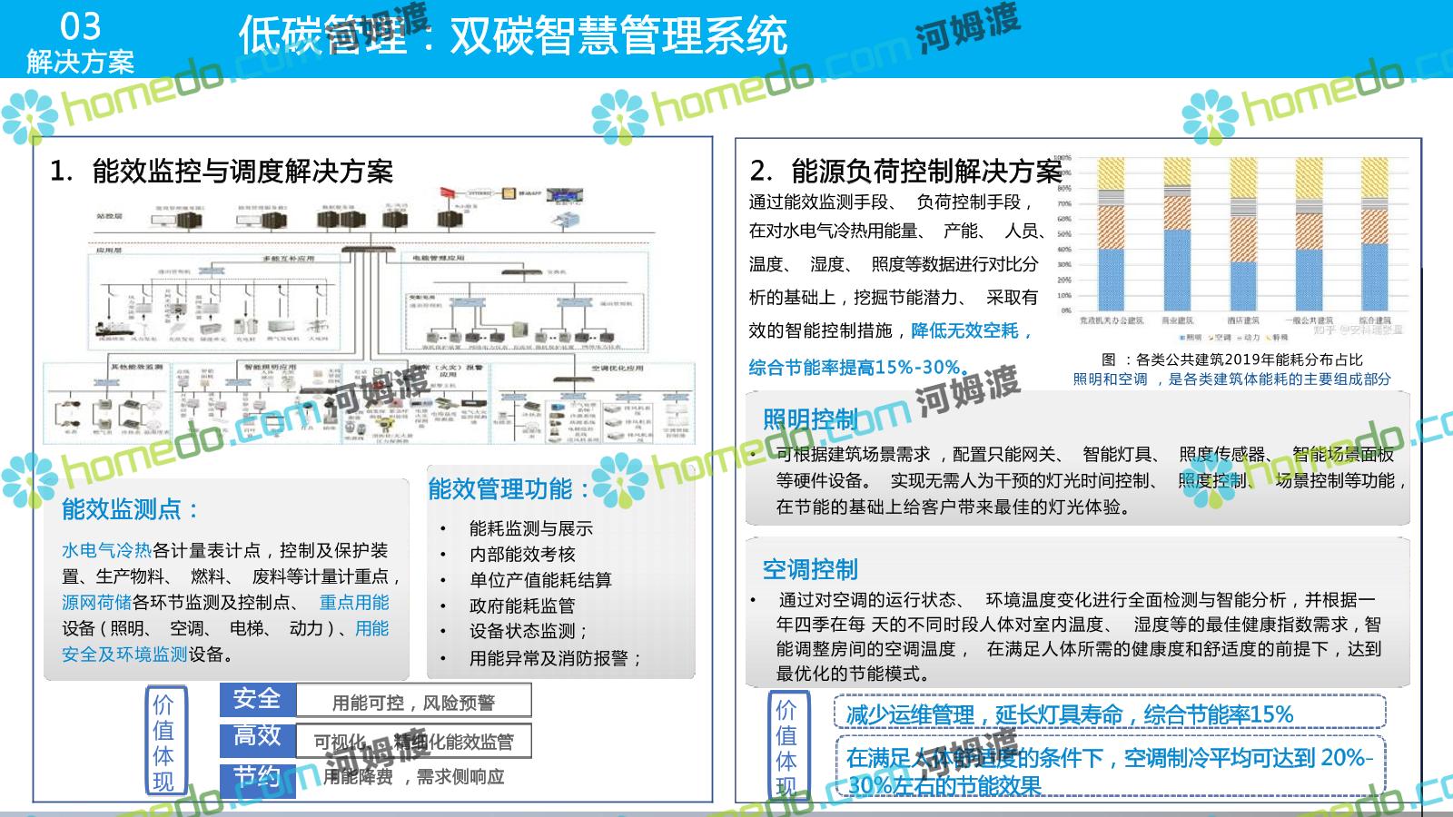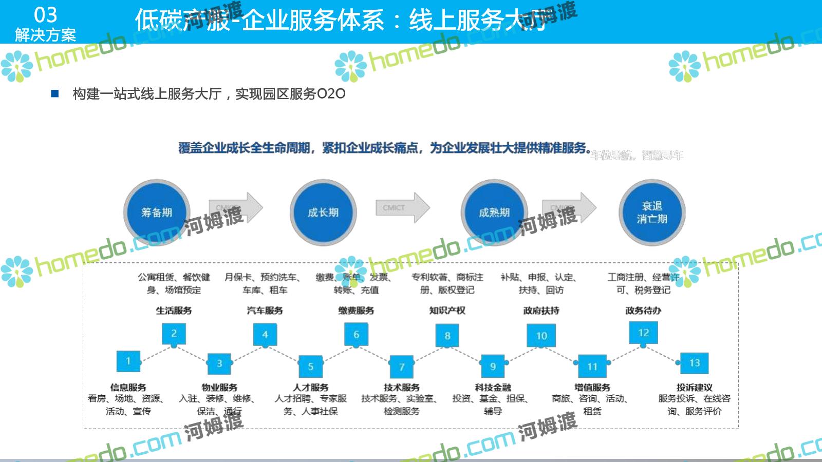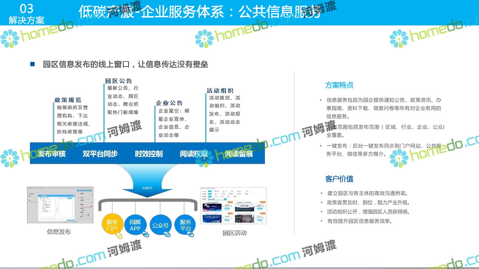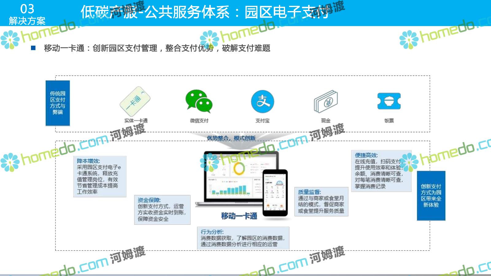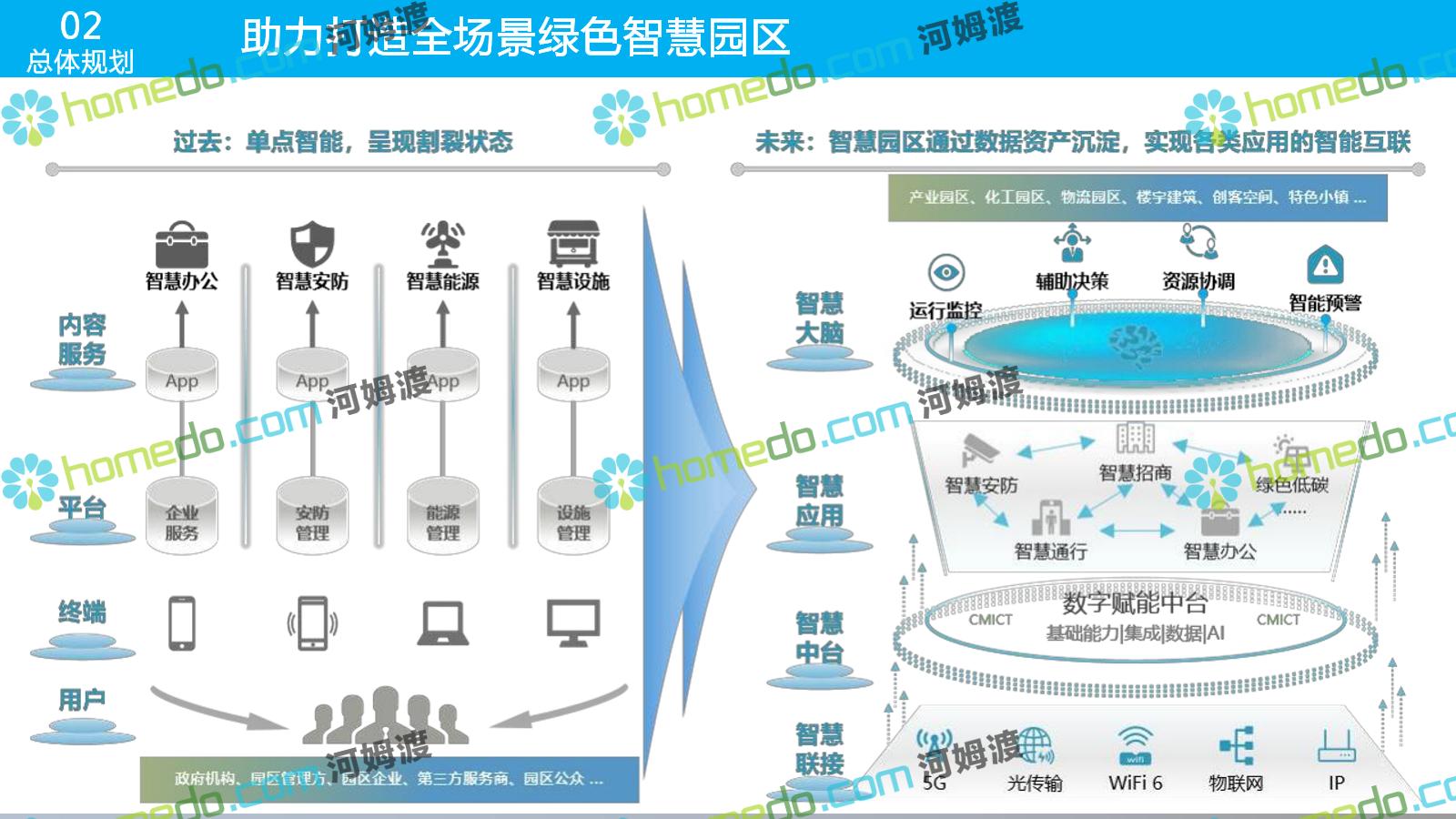 方案简介 围绕园区管理方、运营方、园区企业、园区公众四大主体,通过“智能底座+数字管控+绿色产服”的建设路径,中移 集成为园区提供“咨询规划、定制研发、实施交付、运营 推广”的一站式服务,做园区零碳转型的贴身管家。
